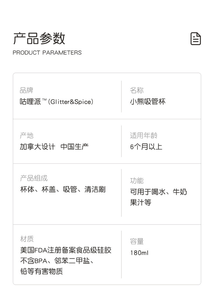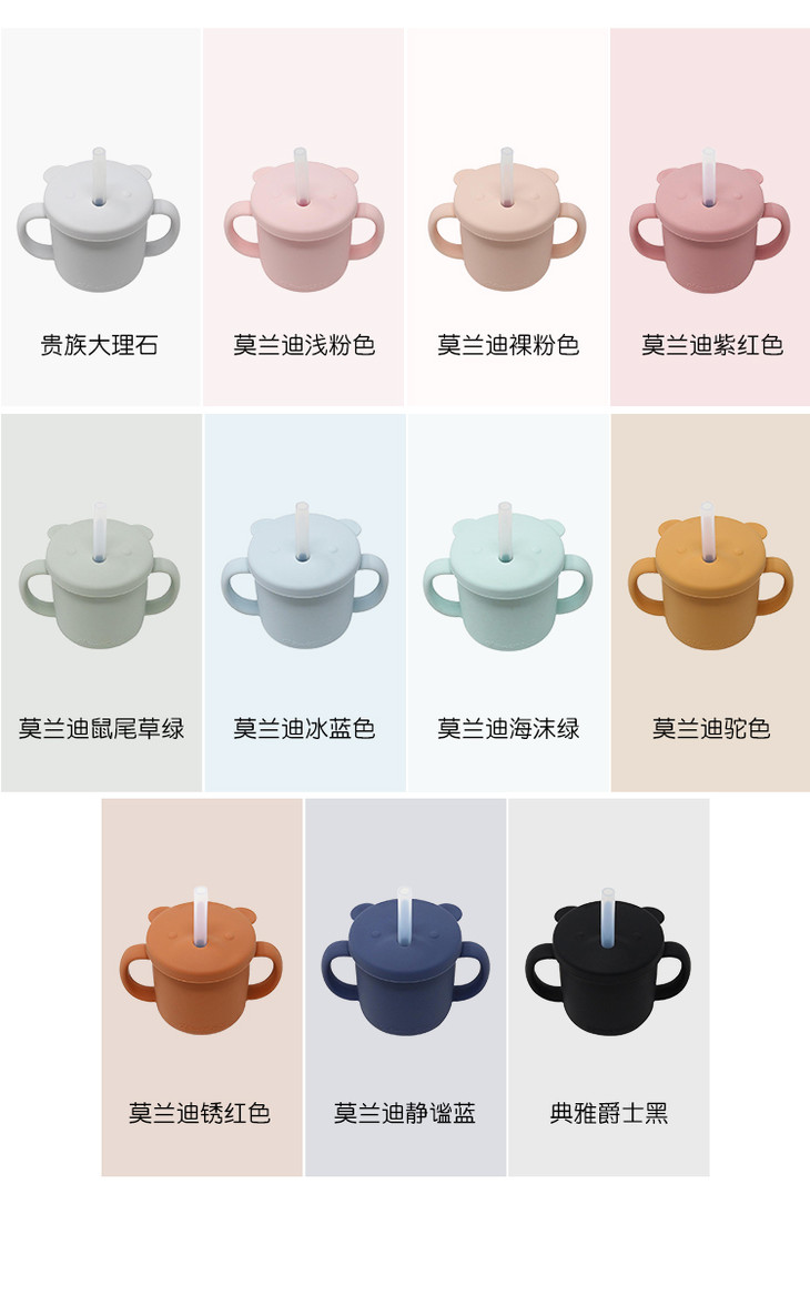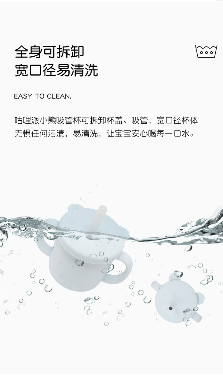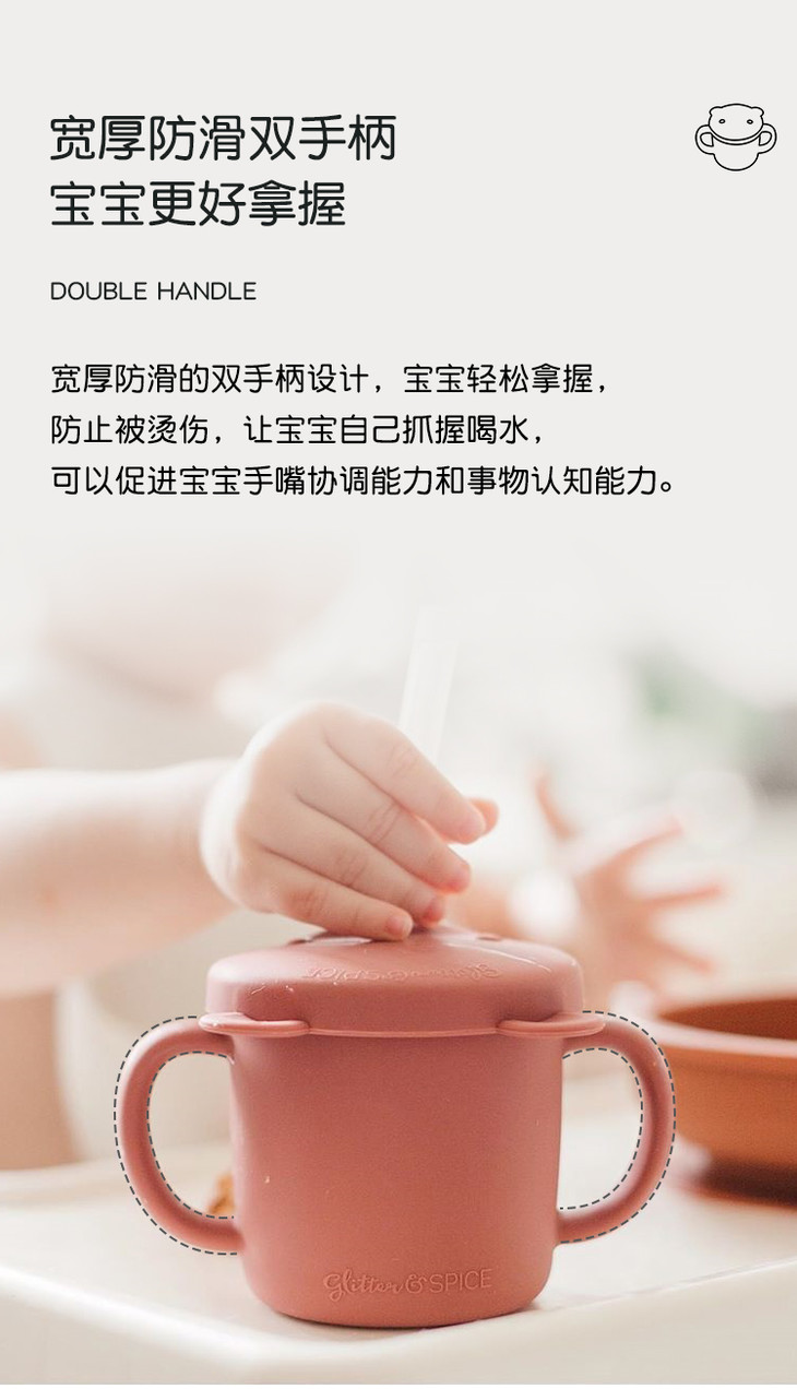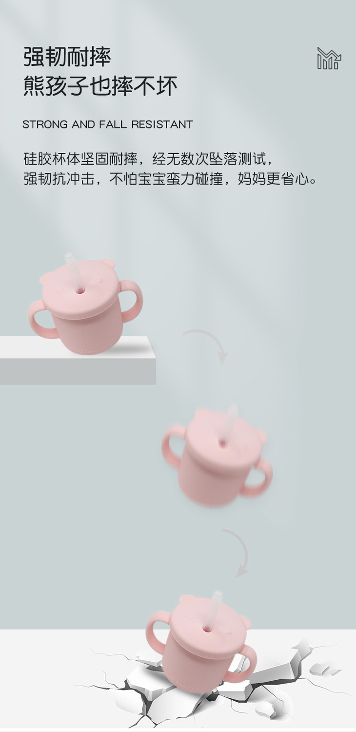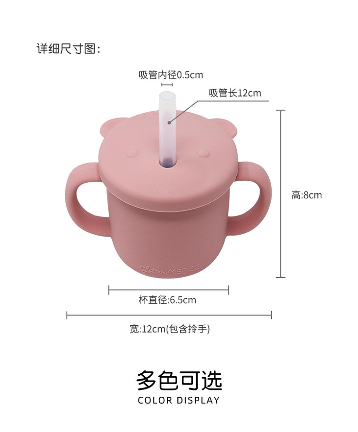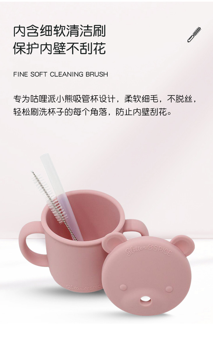 【Glitter spice 咕哩派】儿童吸管杯婴儿硅胶宝宝喝奶小熊学饮水杯 防摔