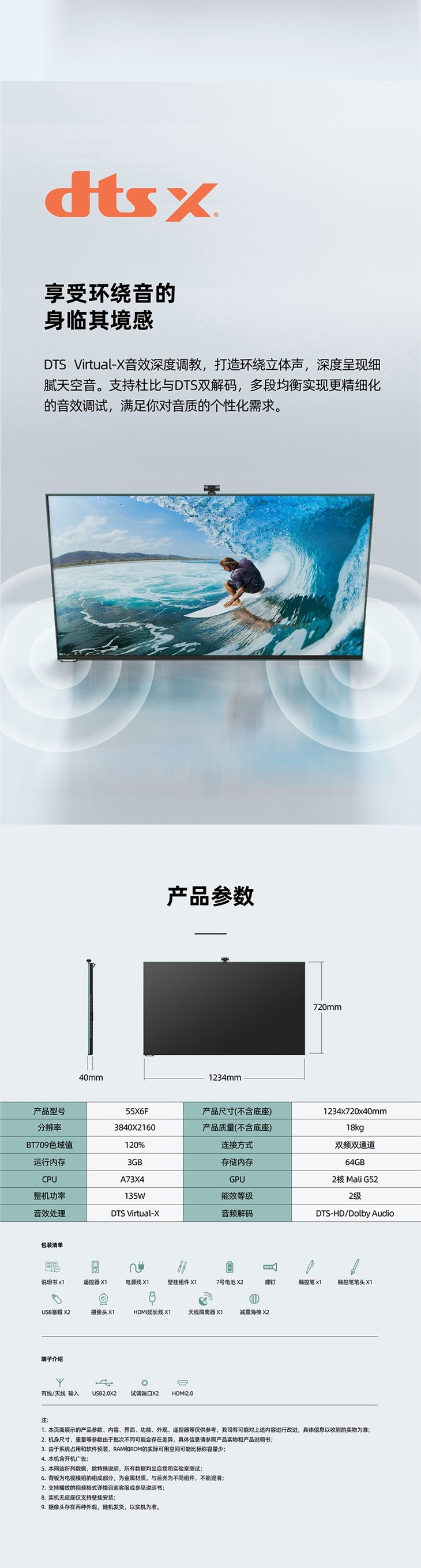 海信电视55X6F旋转抽控屏全面屏高端性能高端OLED 屏幕高发光