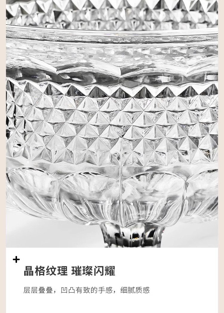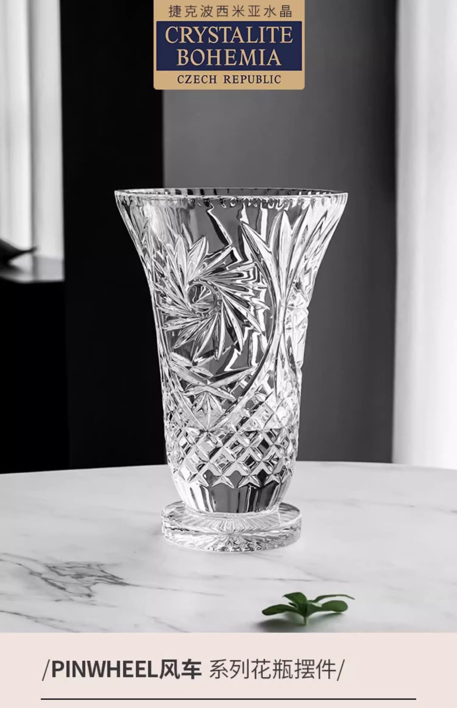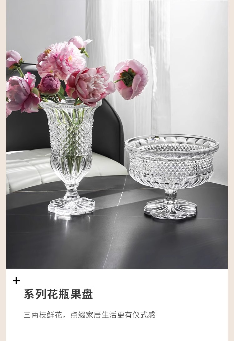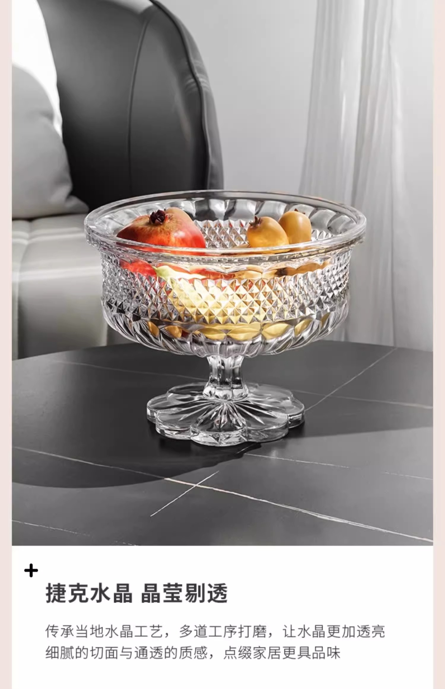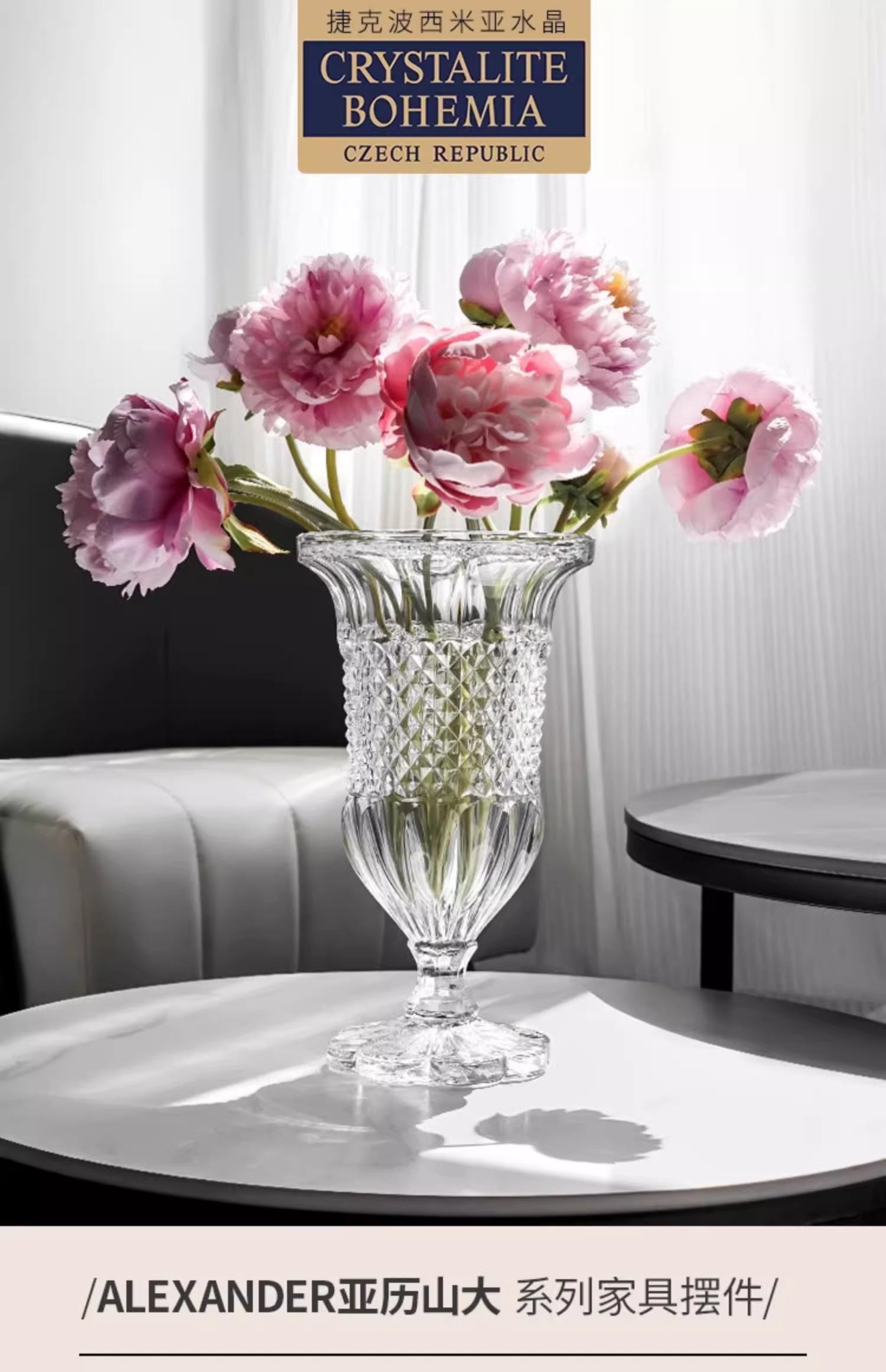 捷克原装进口水晶玻璃花瓶BOHEMIA 欧式复古高脚花瓶果盘客厅摆件波西米亚欧式钻石纹高脚花瓶30cm高脚果斗