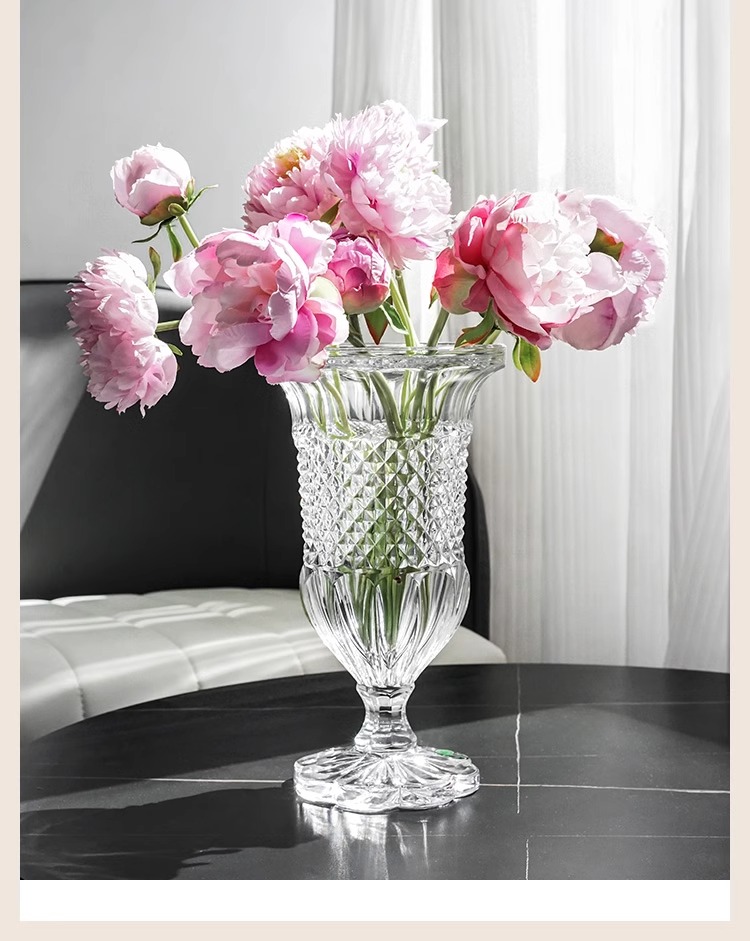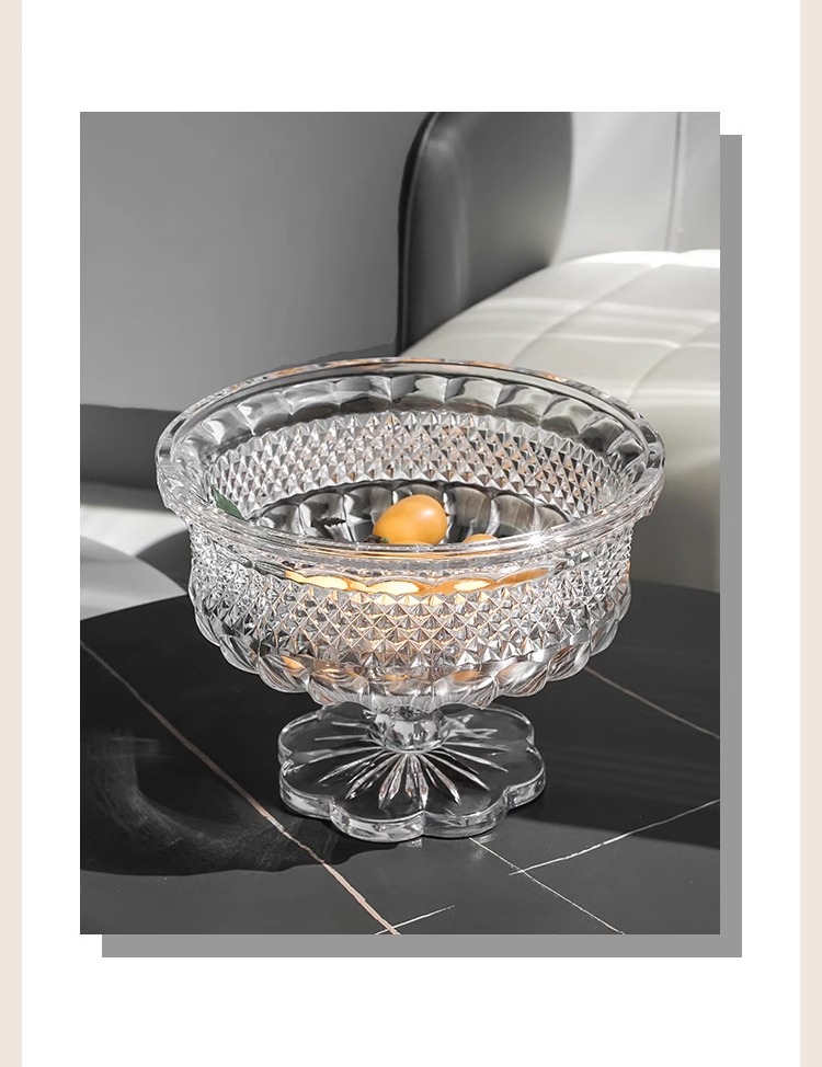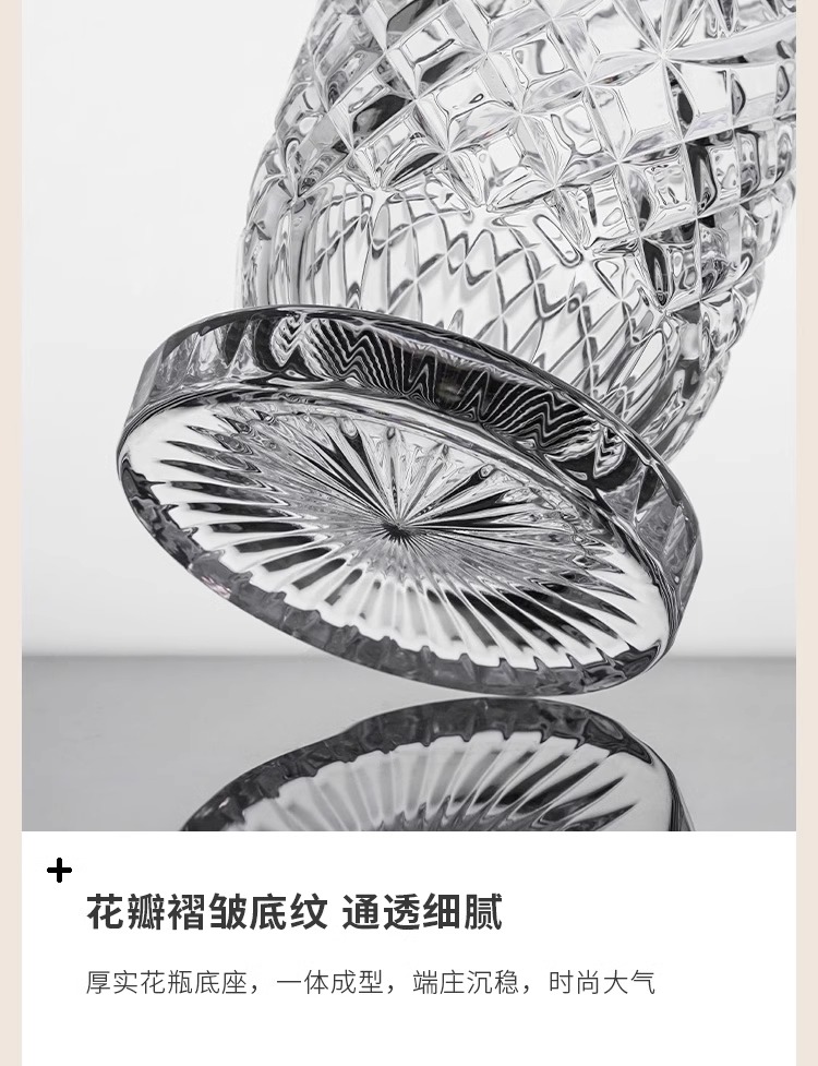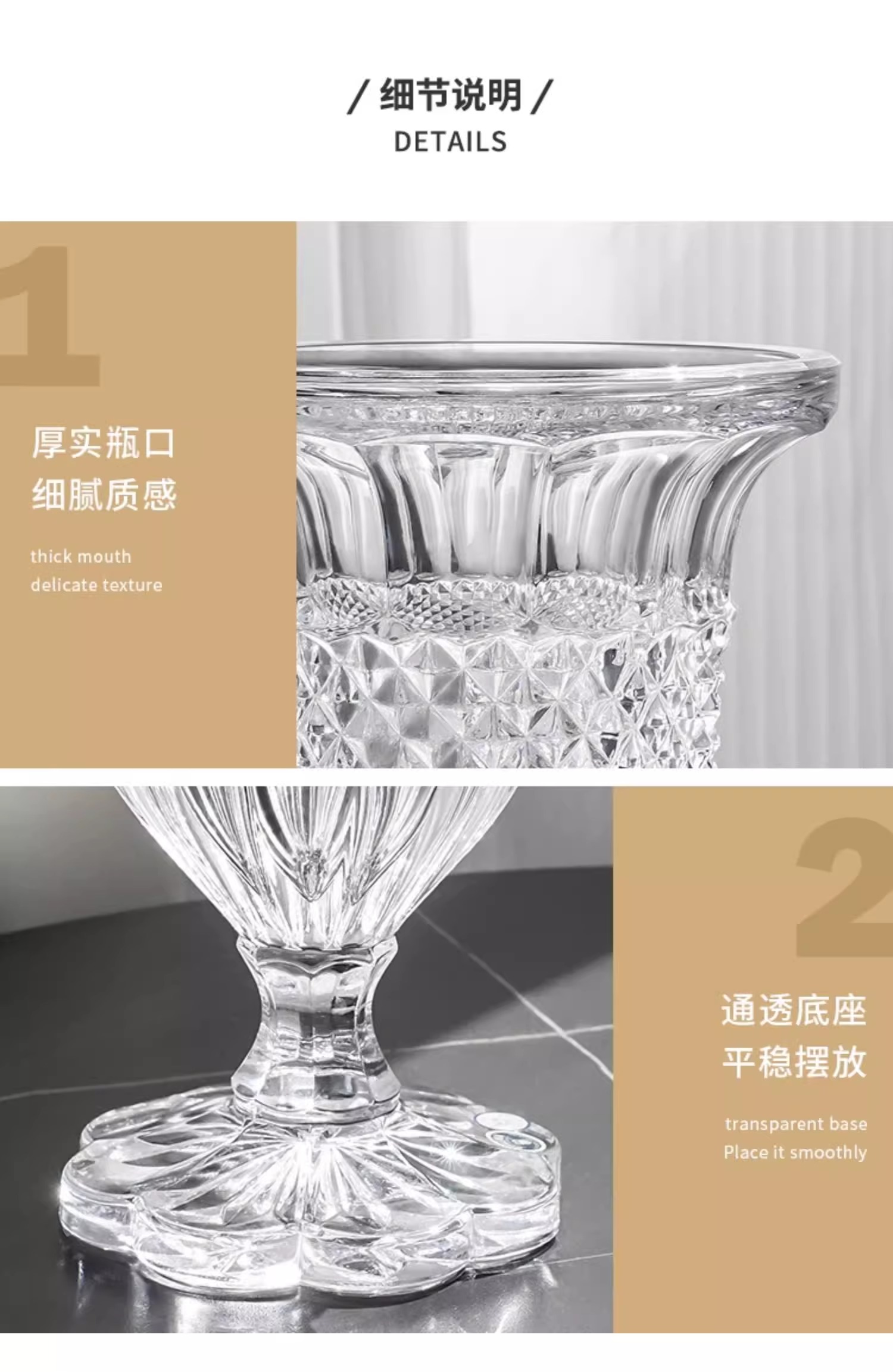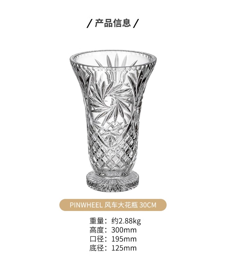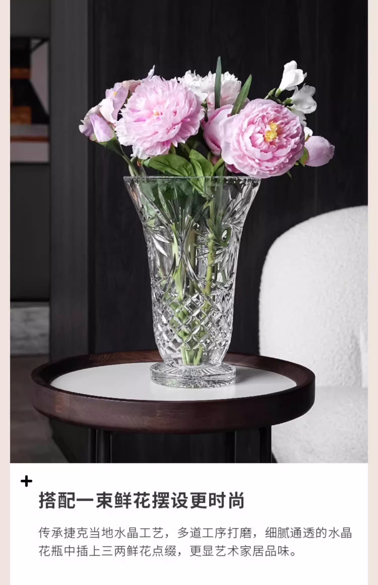 捷克原装进口水晶玻璃花瓶BOHEMIA 欧式复古高脚花瓶果盘客厅摆件波西米亚欧式钻石纹高脚花瓶30cm高脚果斗