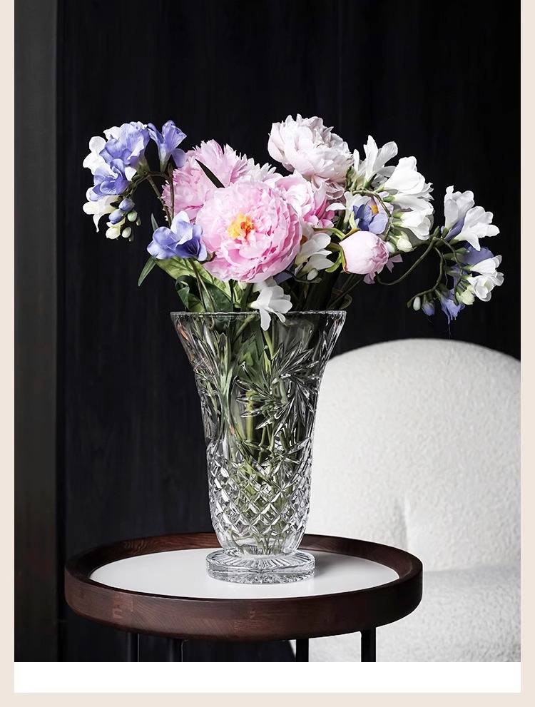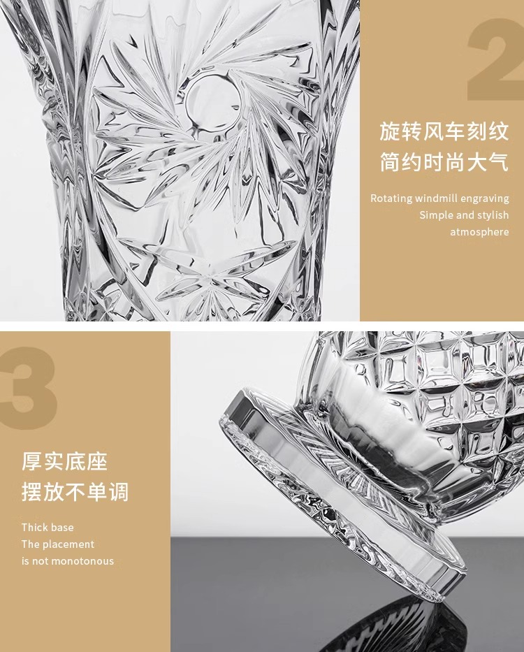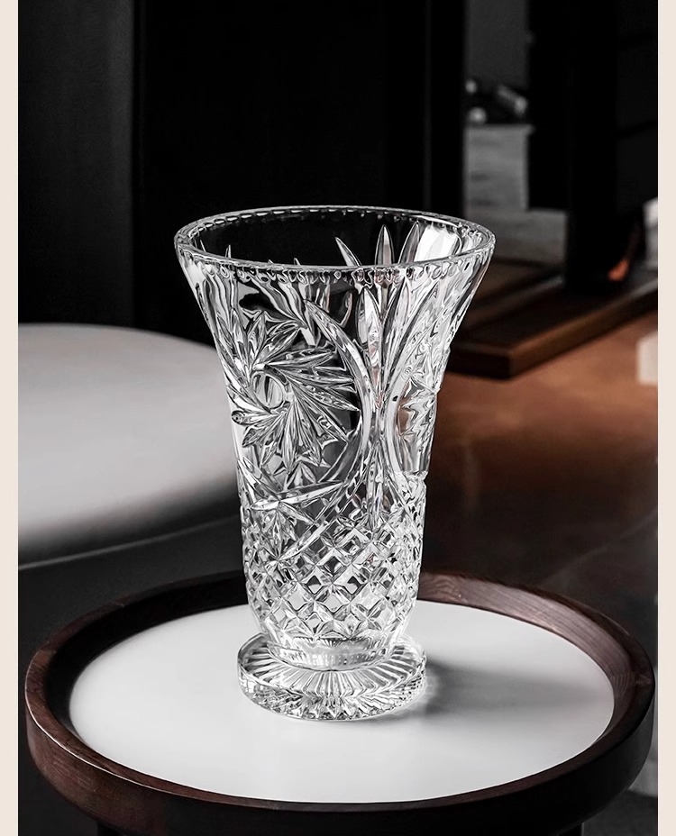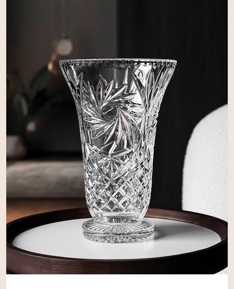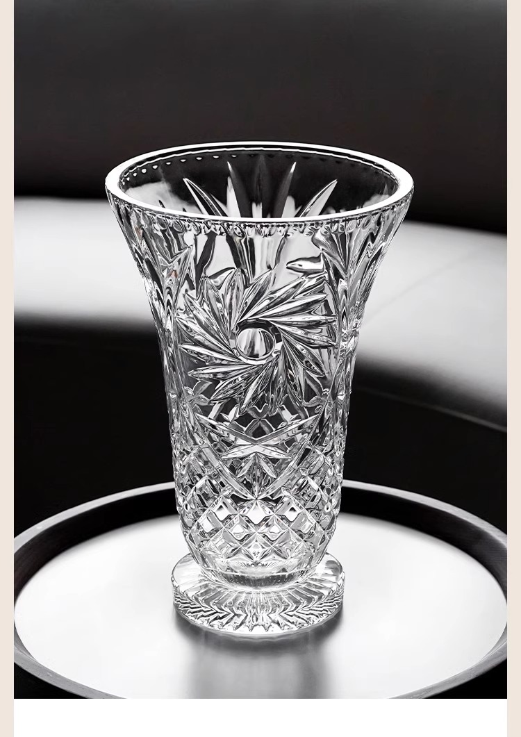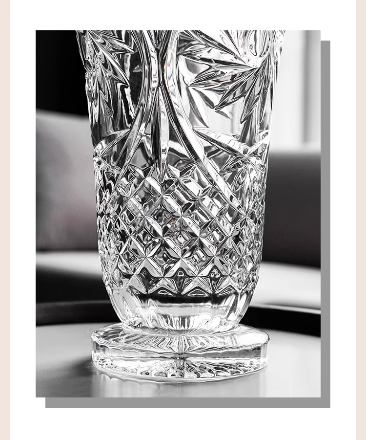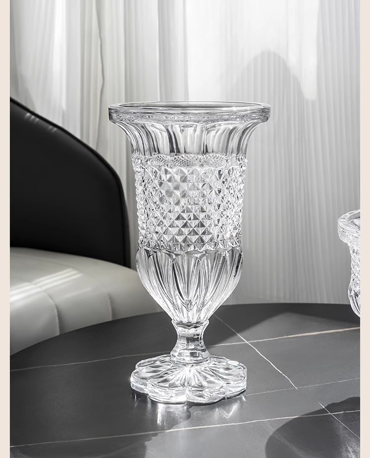 捷克原装进口水晶玻璃花瓶BOHEMIA 欧式复古高脚花瓶果盘客厅摆件波西米亚欧式钻石纹高脚花瓶30cm高脚果斗