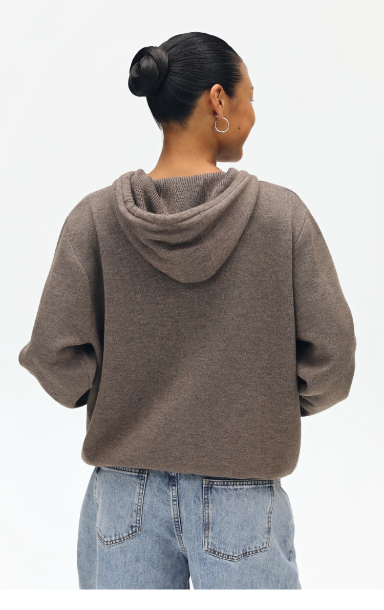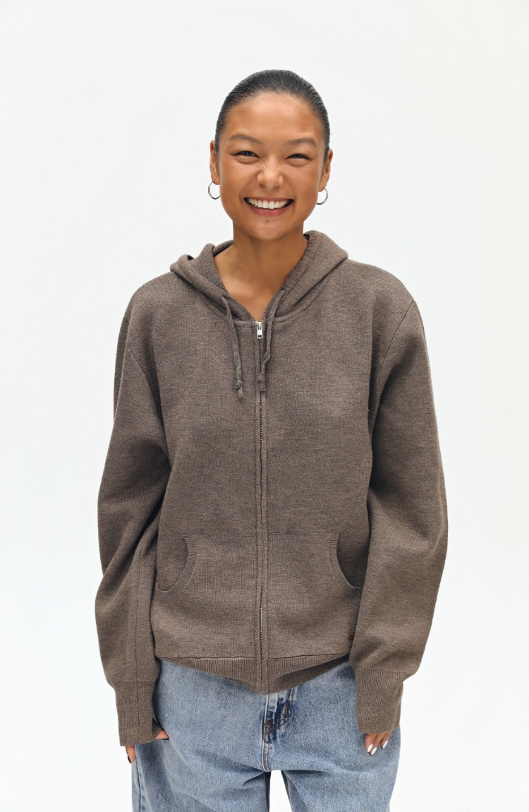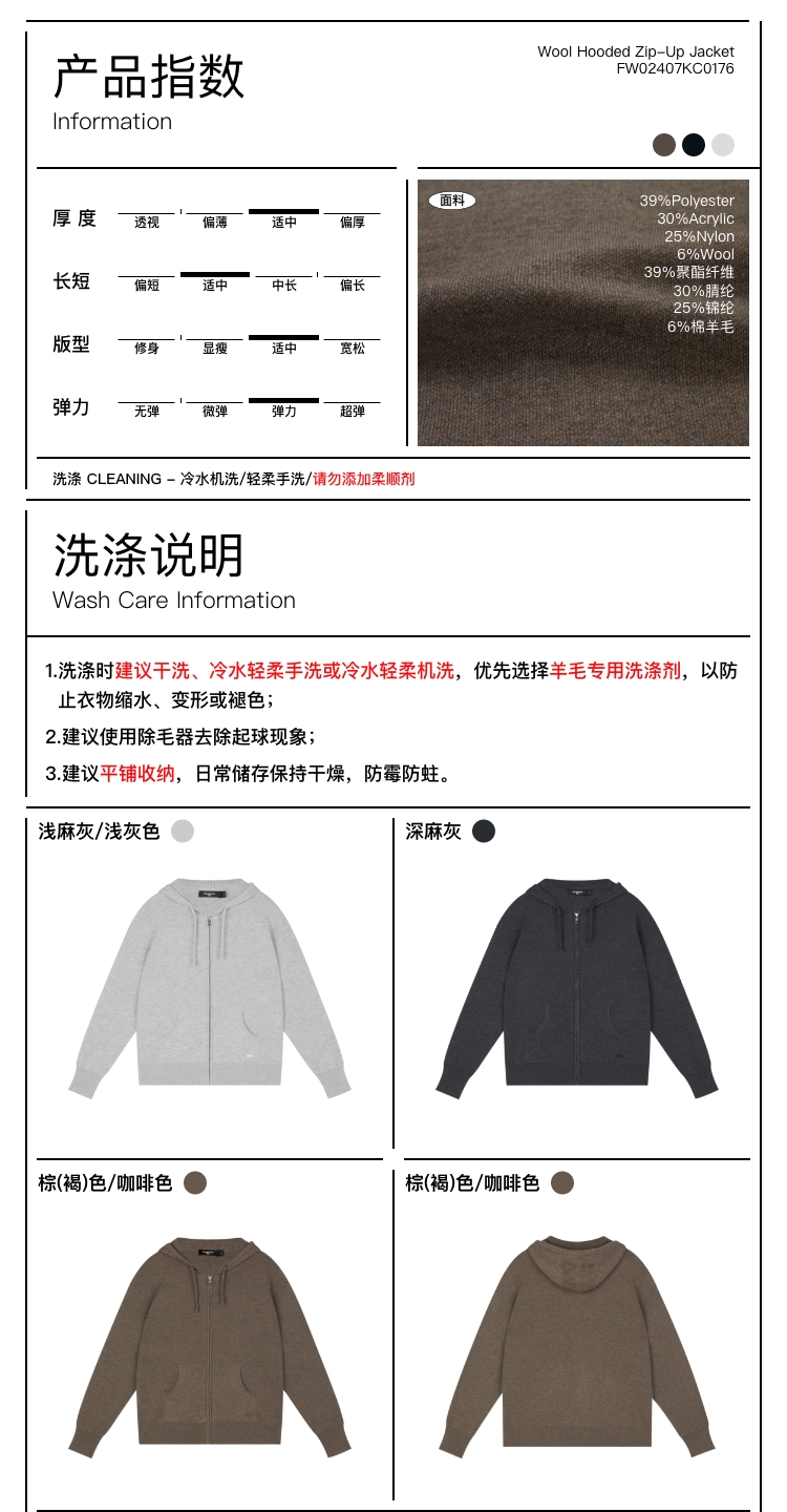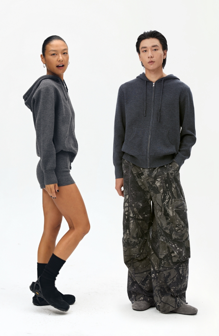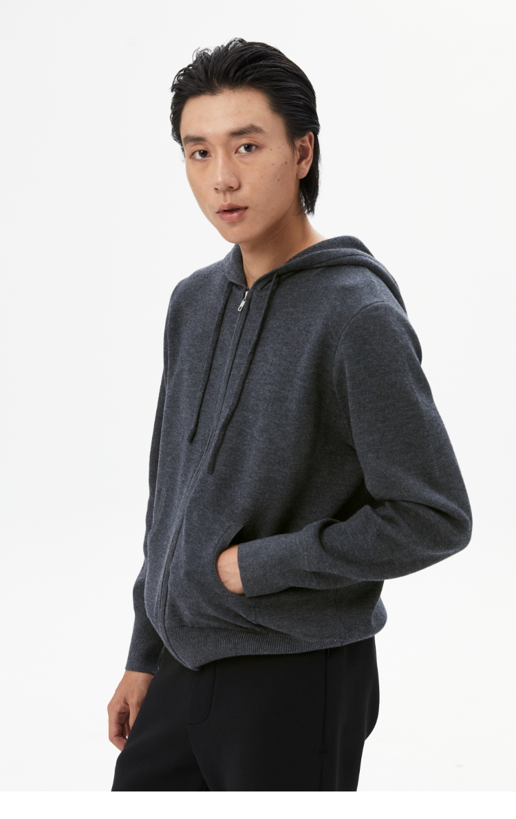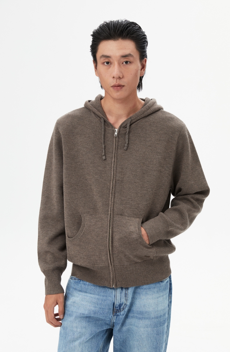 oneup羊毛连帽拉链外套