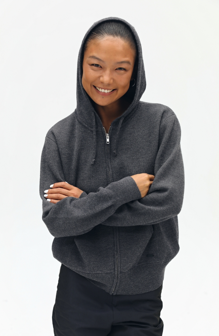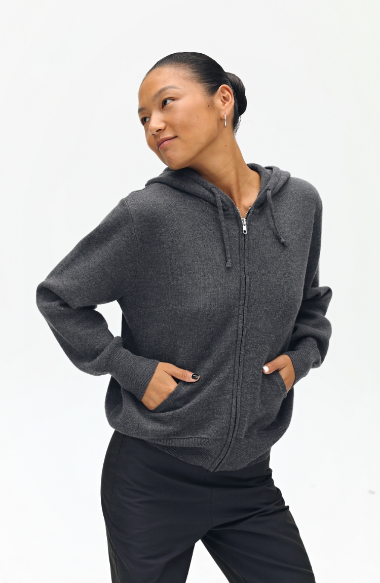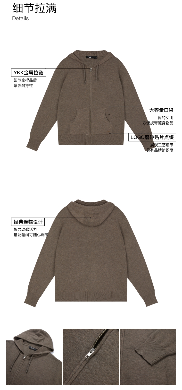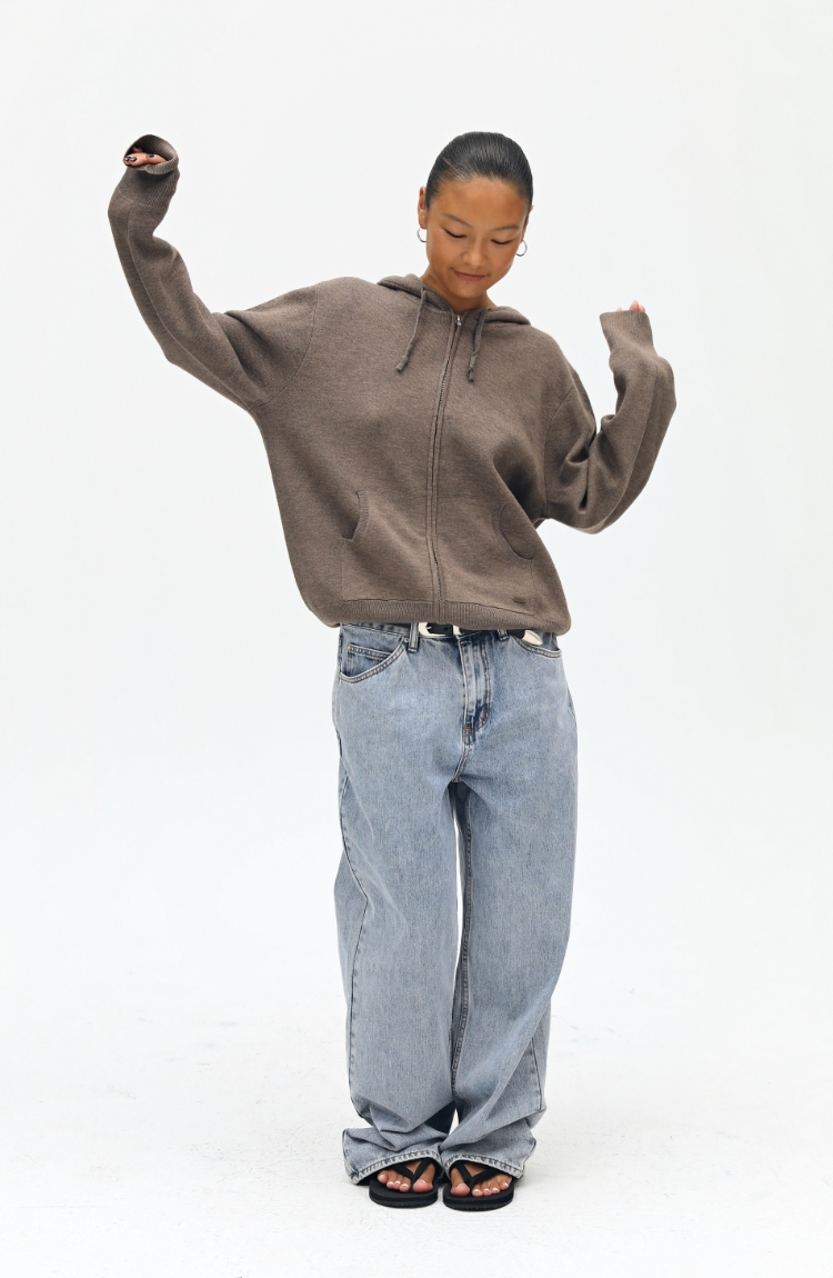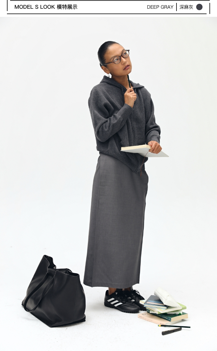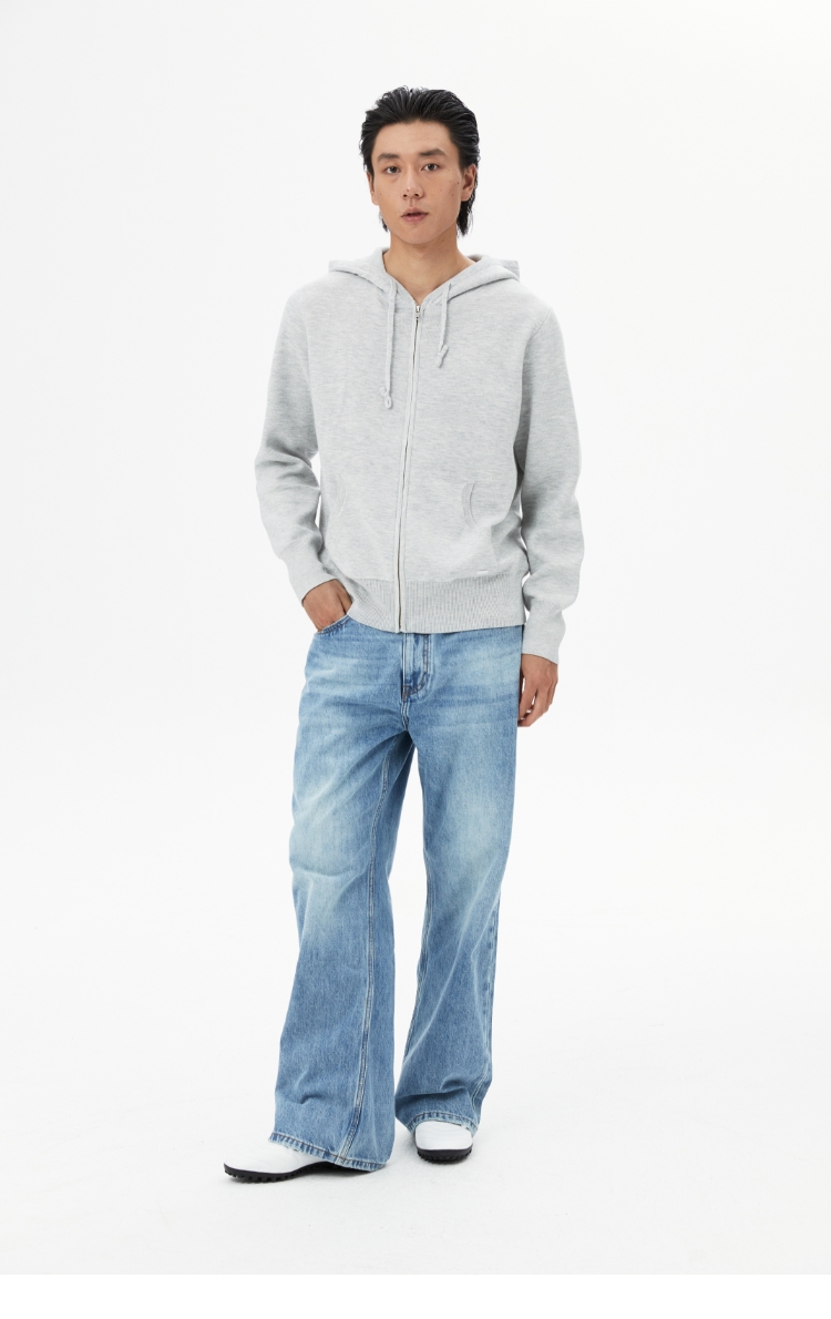oneup羊毛连帽拉链外套