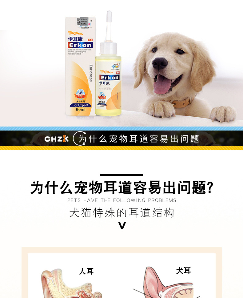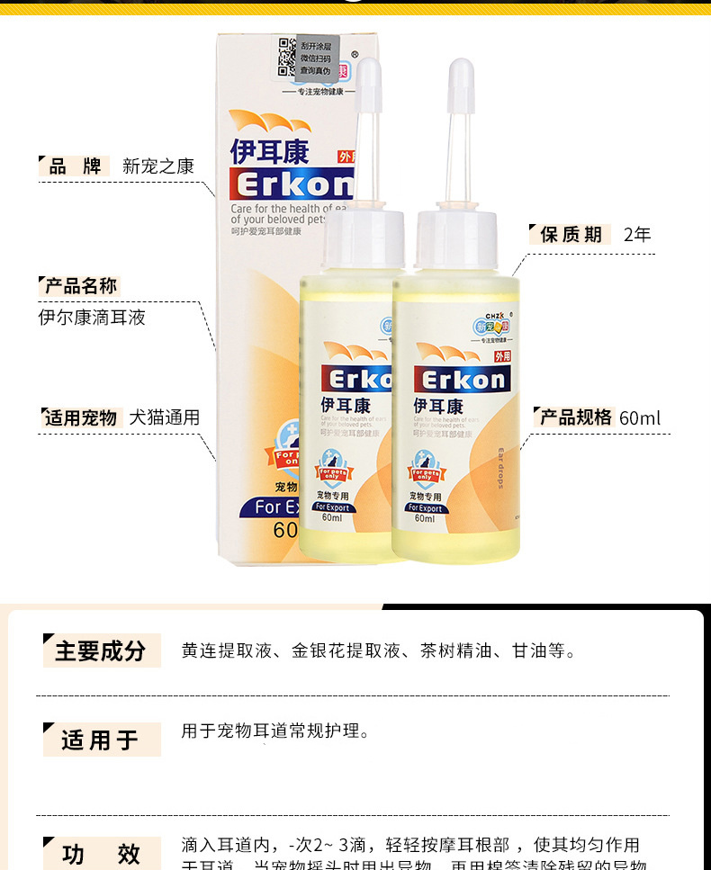 新宠之康伊耳康60ml狗狗猫咪抑菌滴耳液耳螨洗耳液
