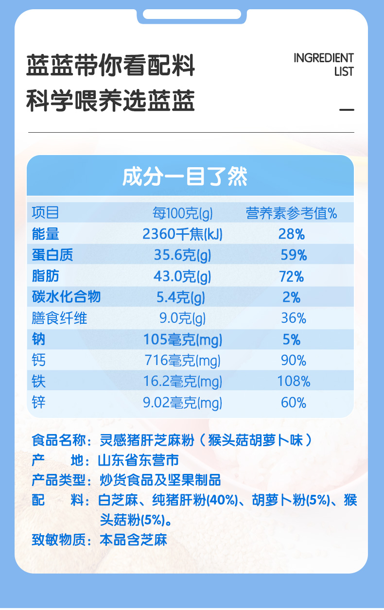 网店专用【小鹿蓝蓝_猪肝芝麻粉】宝宝含铁拌饭料调味料