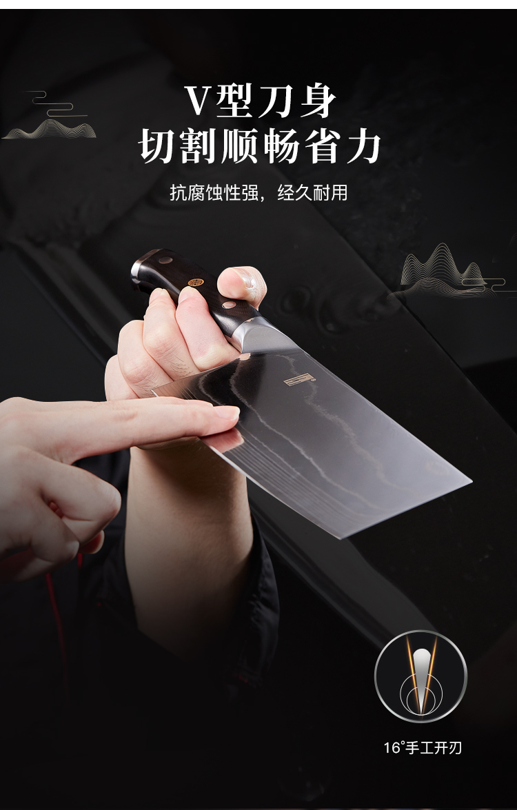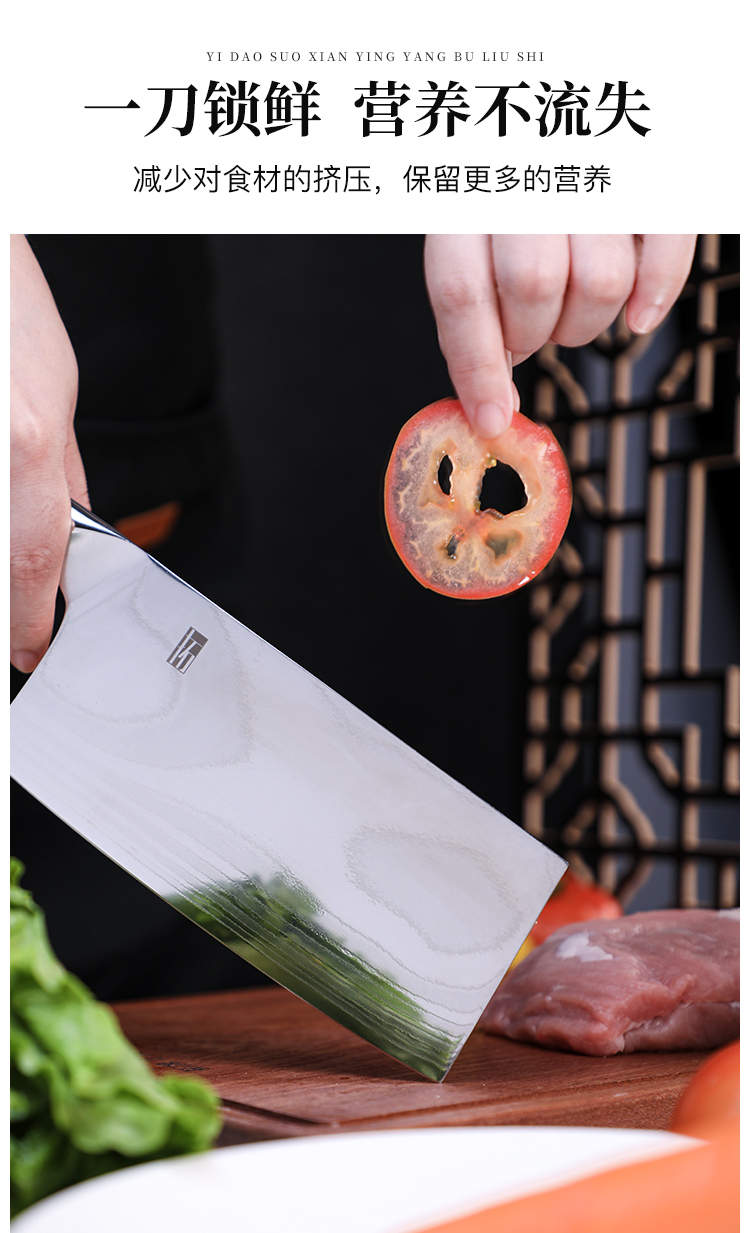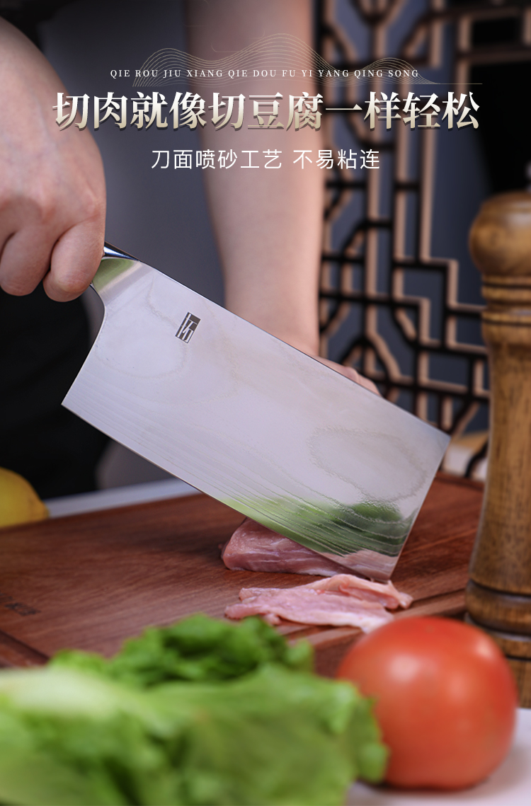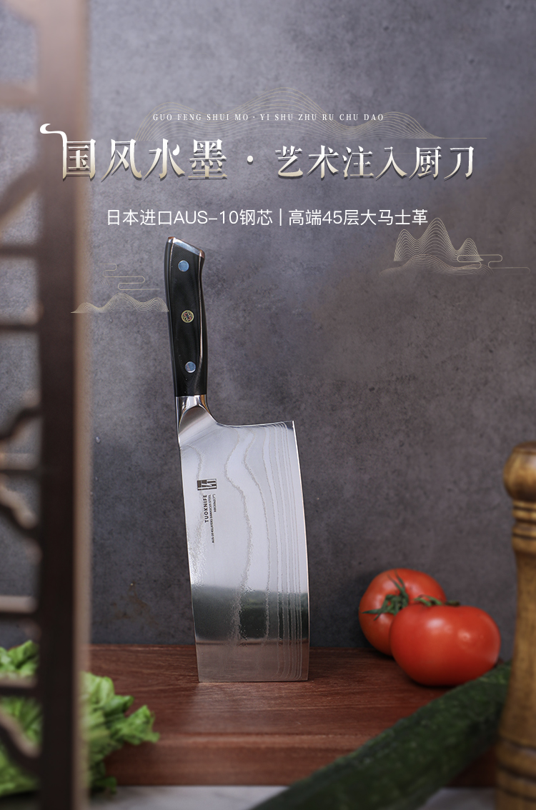 拓 颂系列菜刀日本进口大马士革钢厨刀中式切菜切肉刀花纹钢