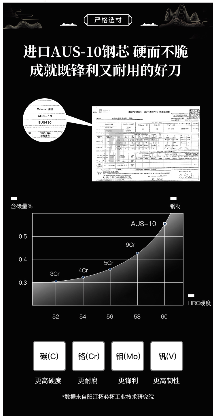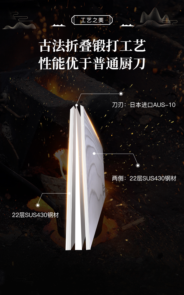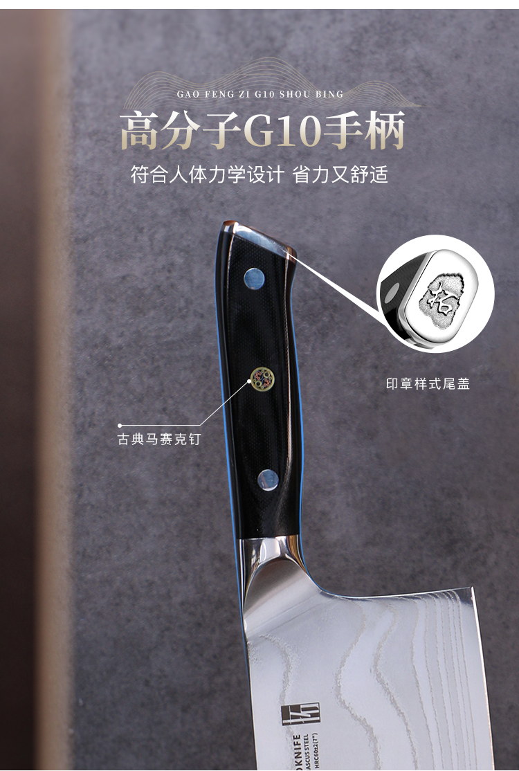 拓 颂系列菜刀日本进口大马士革钢厨刀中式切菜切肉刀花纹钢