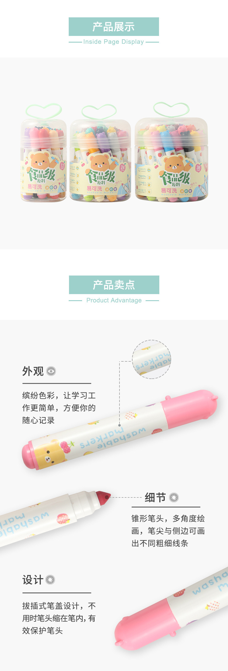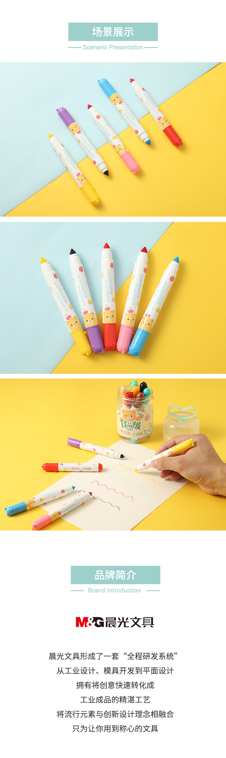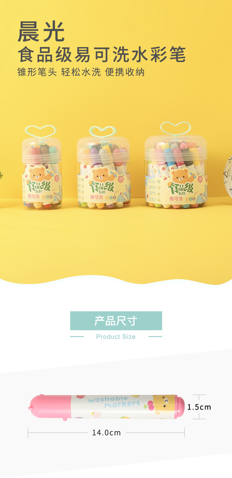 【易可洗水彩笔!12/24/36色】晨光ACP901Z5食品级原料水彩笔 易可洗 锥形单头彩笔 小学生幼儿园用