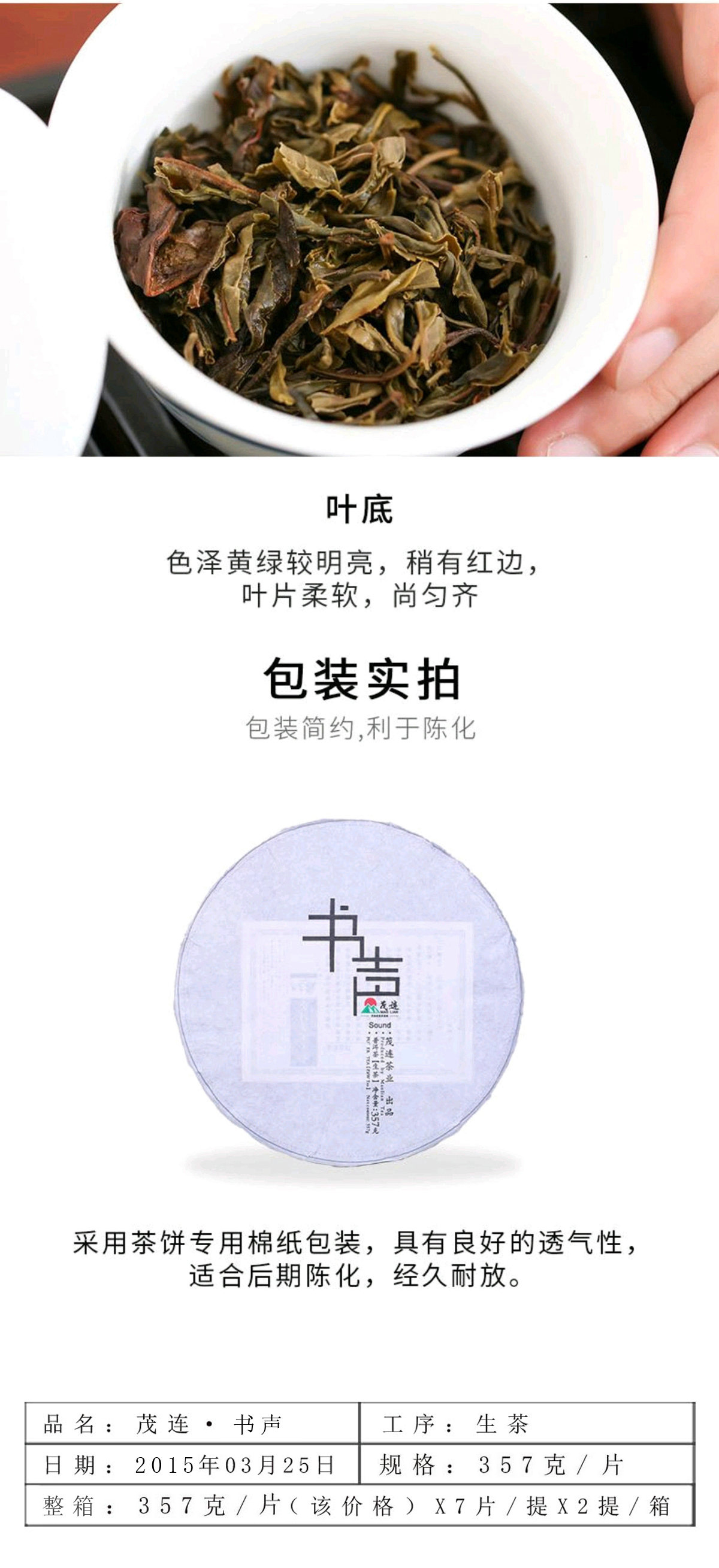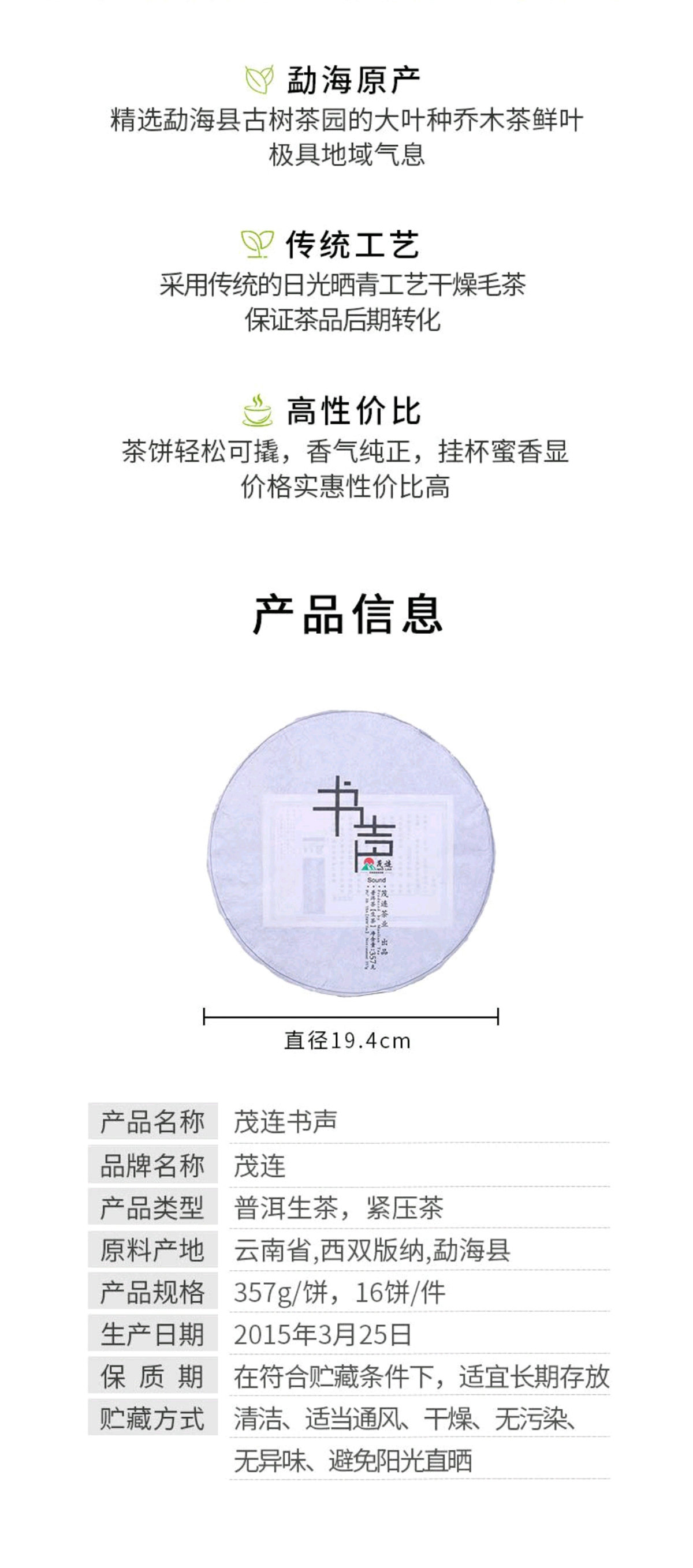 【纯净免洗茶】茂连 书声 荒山野生霸气甜茶 普洱生茶8611 357g/饼