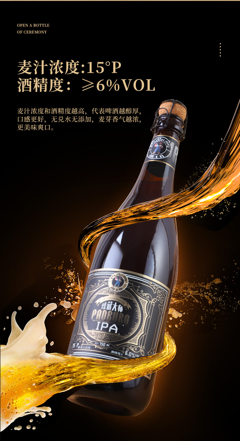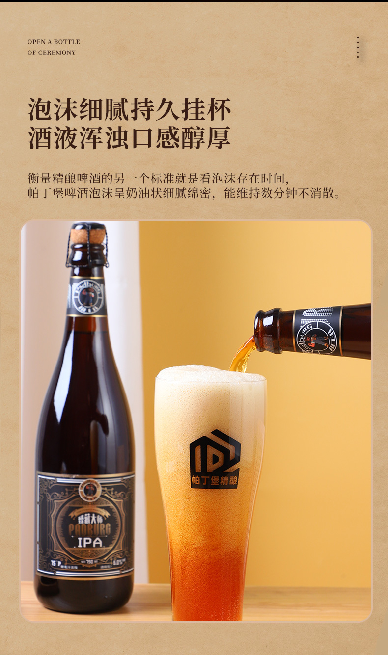帕丁堡精酿IPA德式白啤新品臻藏大师精酿啤酒15°P麦汁浓度 臻藏大师IPA 750mL*1瓶