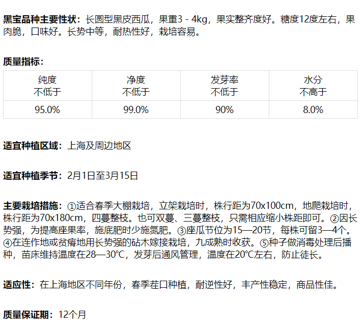 [专业种子] "黑宝"西瓜种子