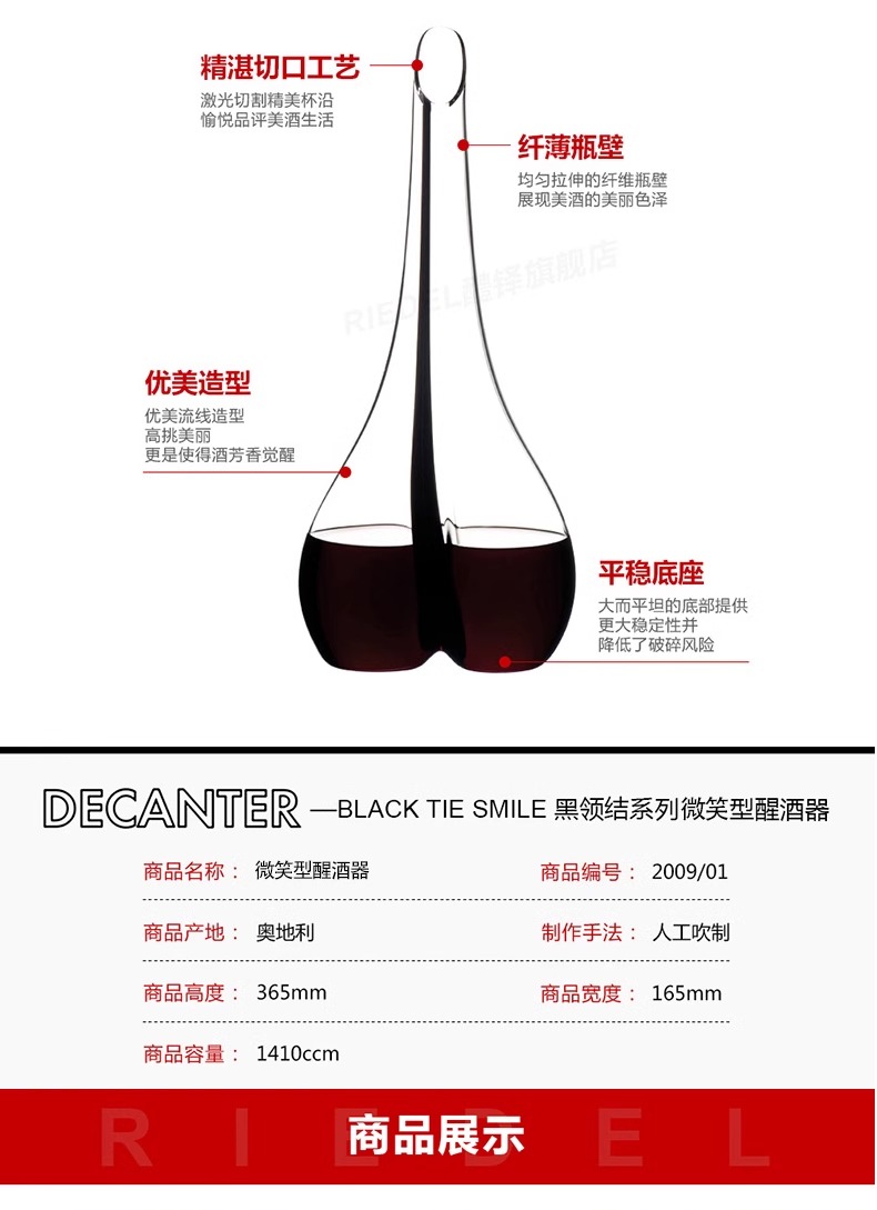 奥地利RIEDEL微笑型手工醒酒器 创意个性分酒器 原装进口 正品【不支持补差,非质量问题不退不换】S