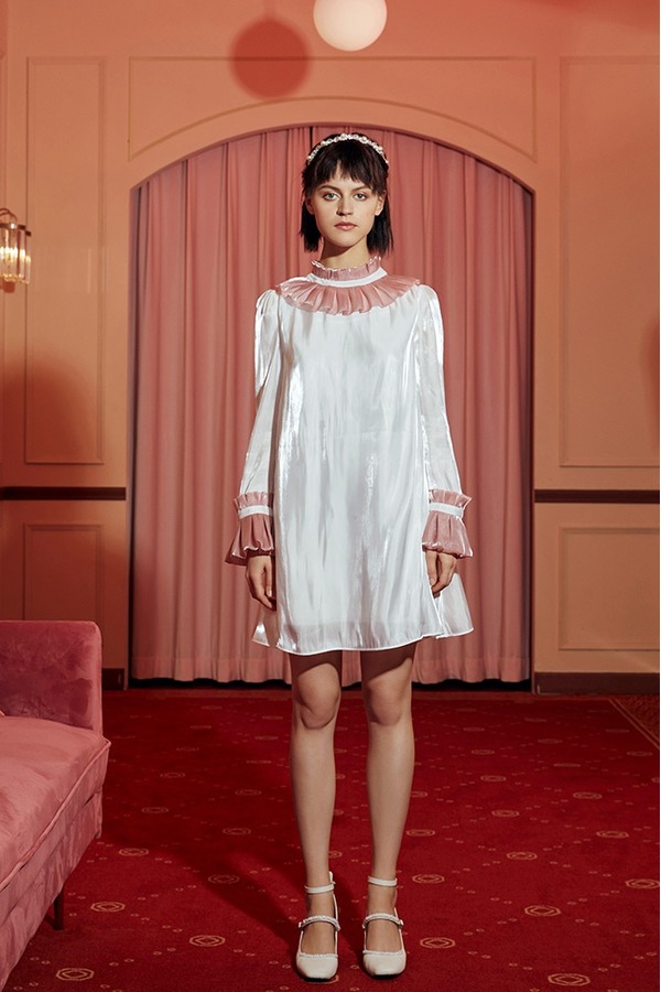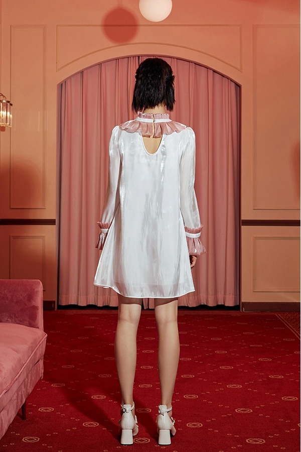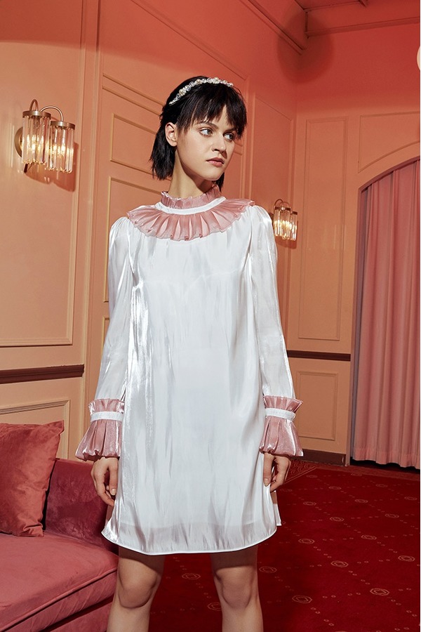 komello 亮丝大A摆撞色连衣裙 14573