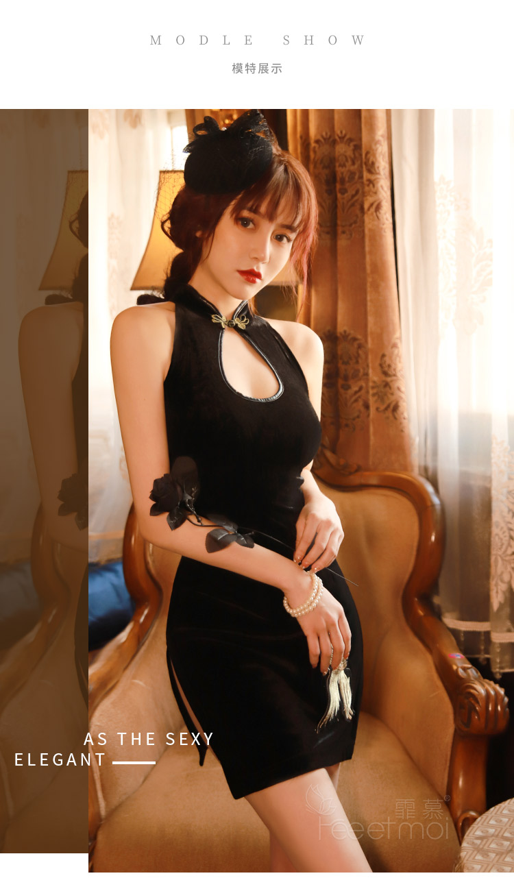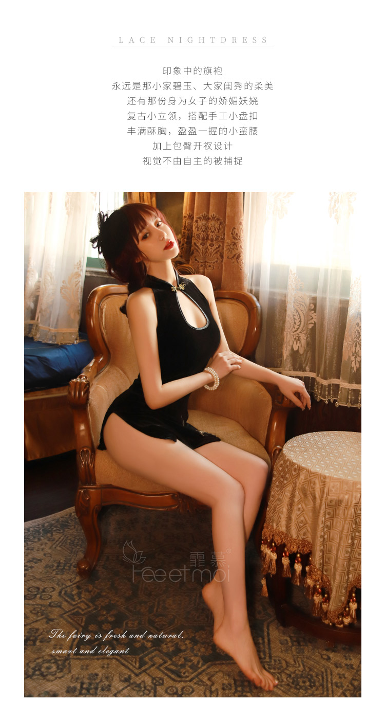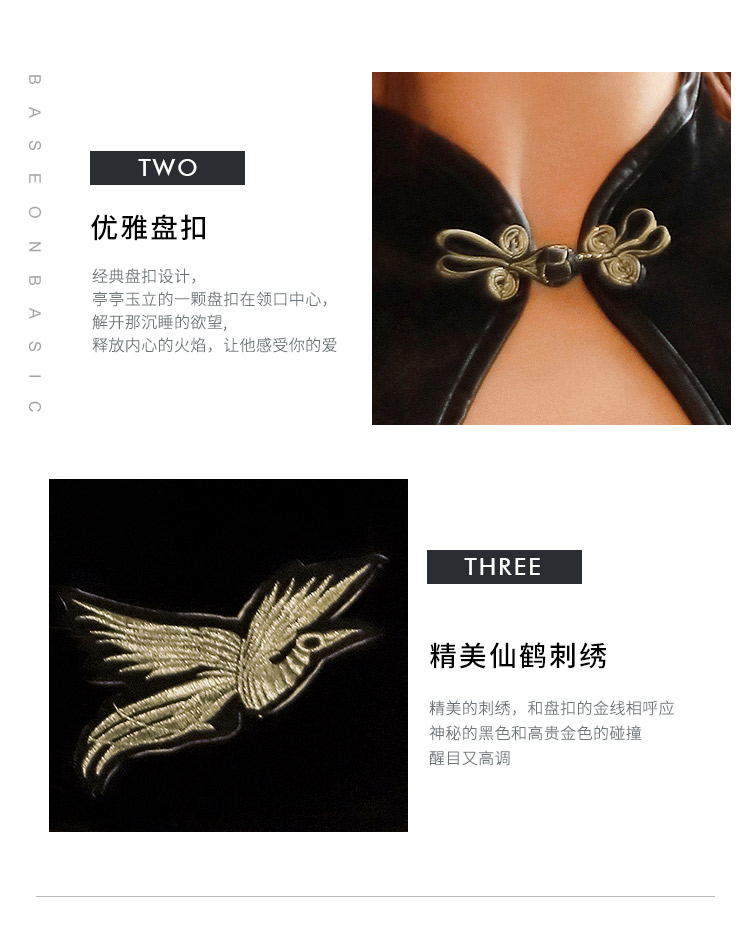 【轻裾随风】东方气质复古旗袍 侧边开叉 刺绣 套装 外贸 女式 情趣内衣7079