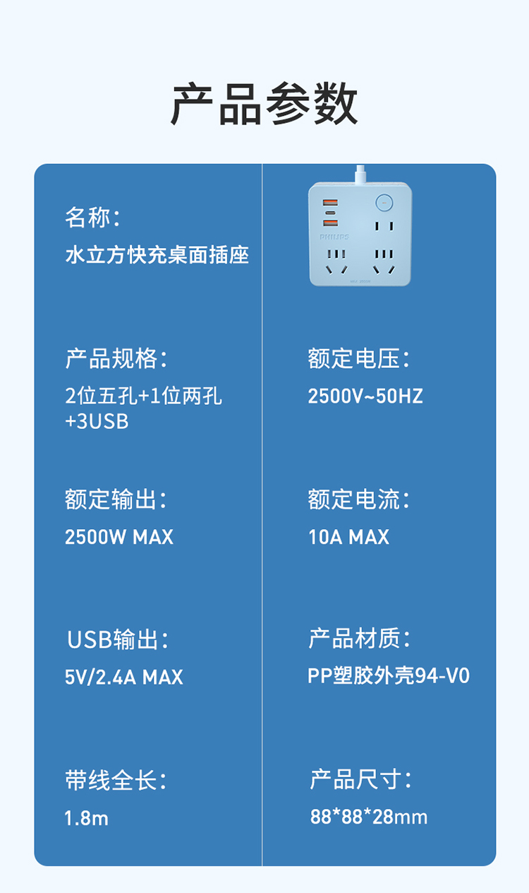 飞利浦水立方PD20W快充USB插座SPB8331U93