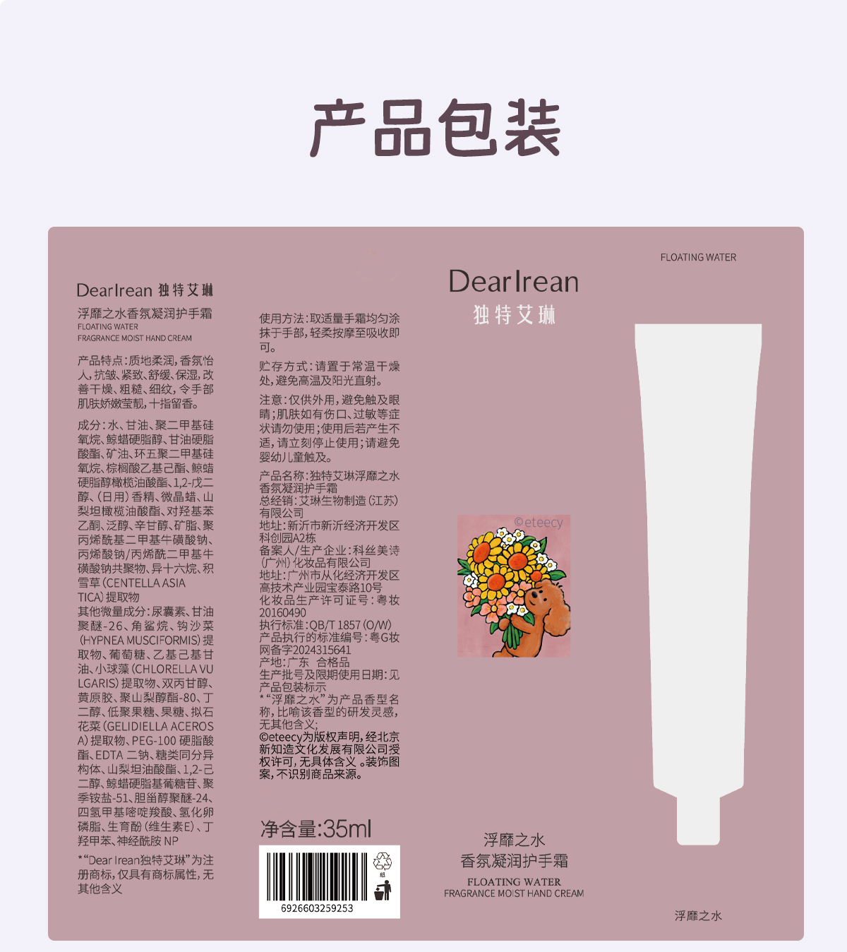 Dear lrean独特艾琳 香氛凝润护手霜35ml(Eteecy联名款)【YW】