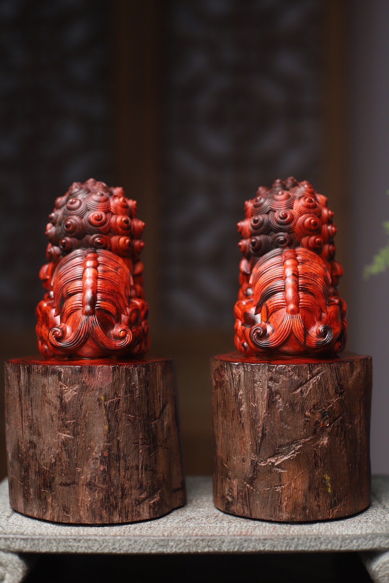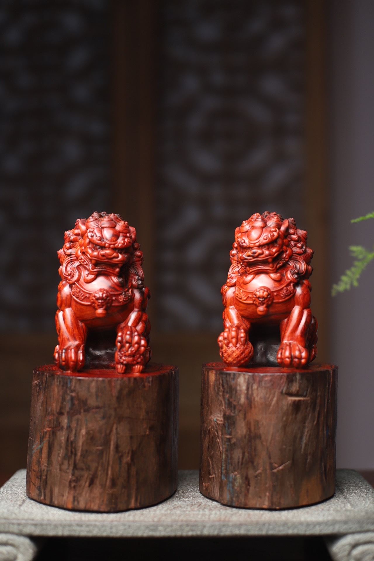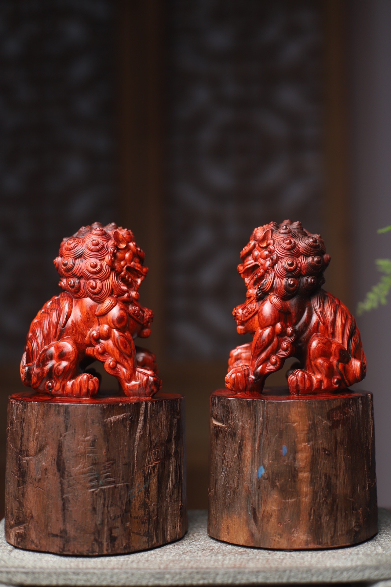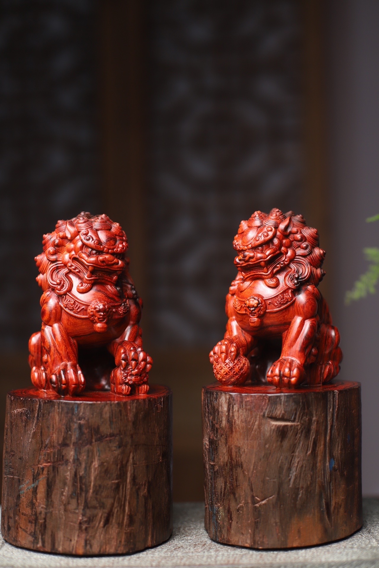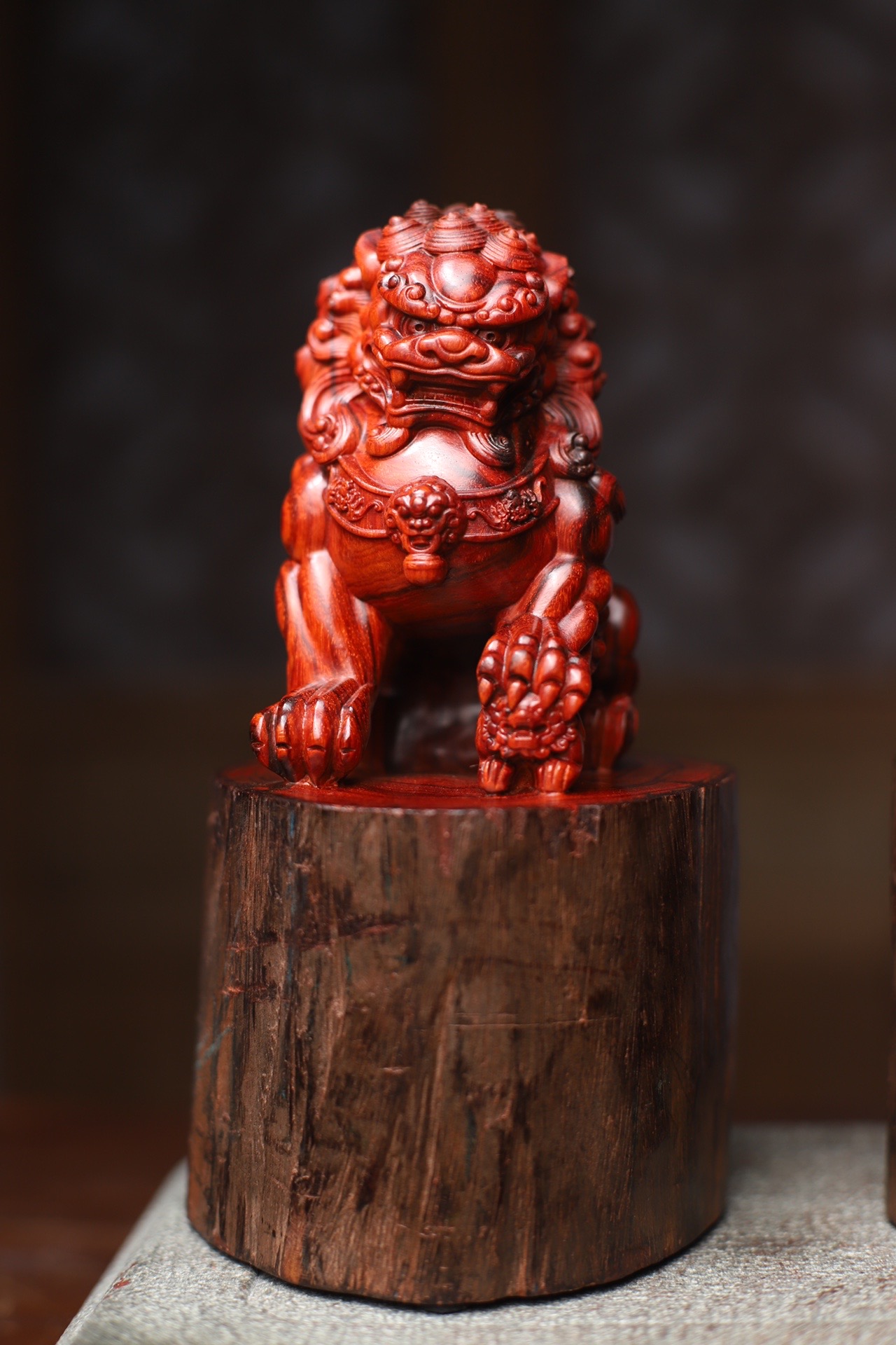 印度小叶紫檀 鸡血红拆房老料 实心整料雕刻 舞狮 镇宅辟邪招财