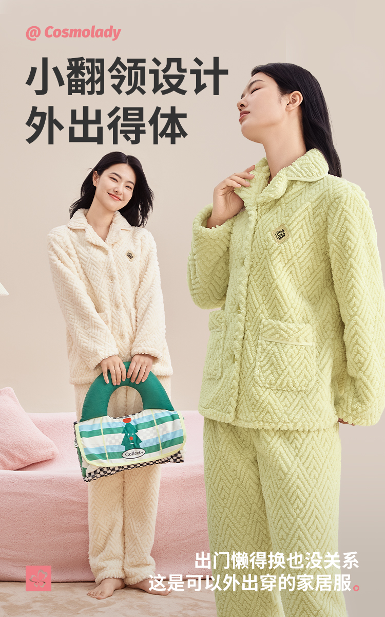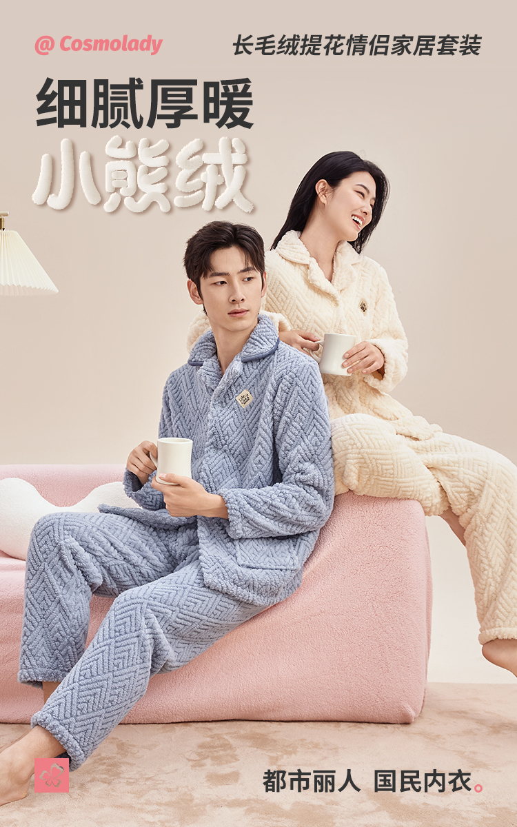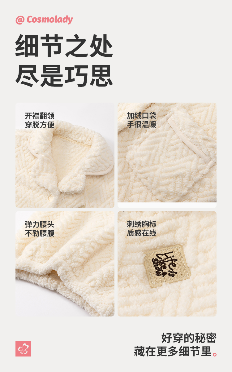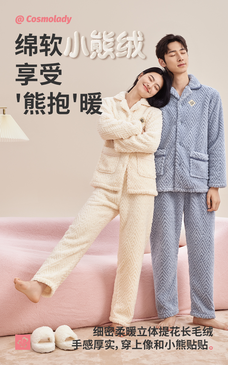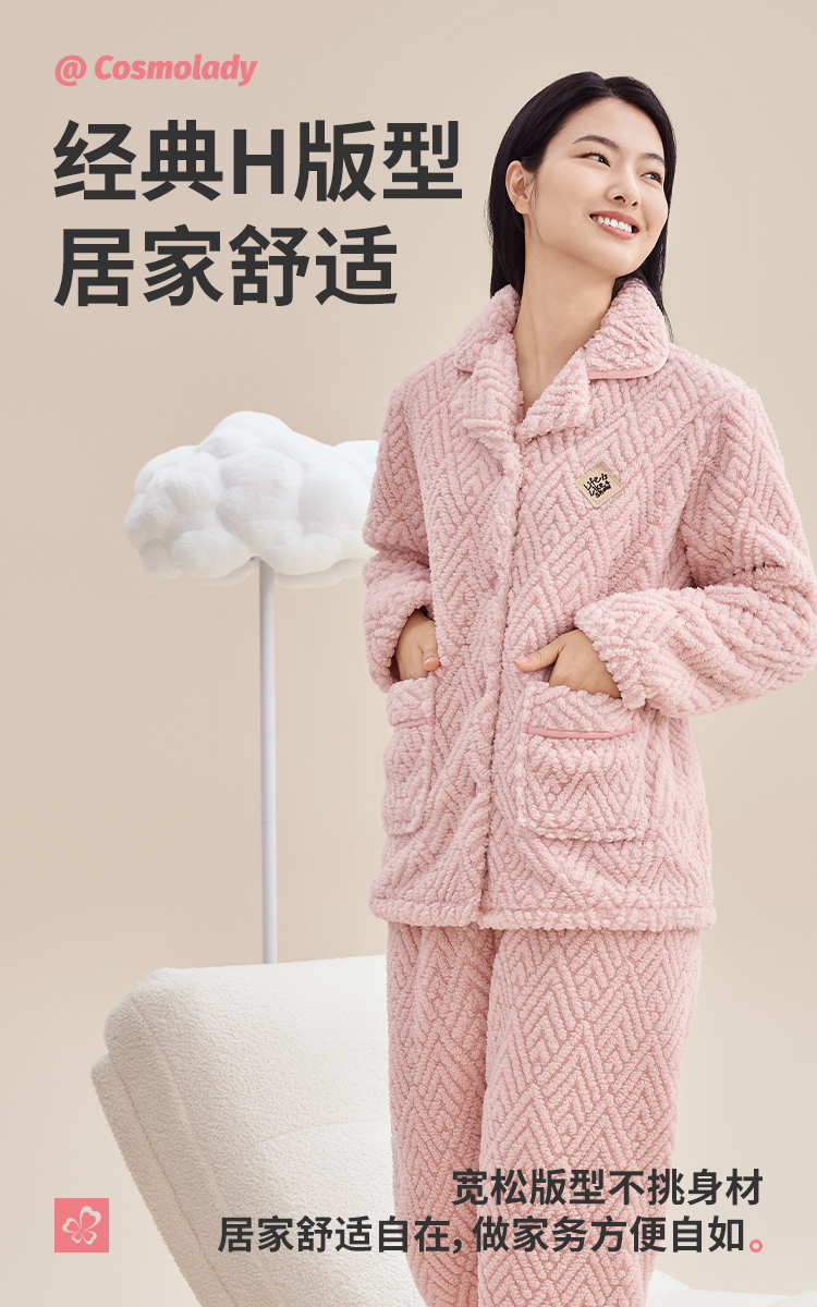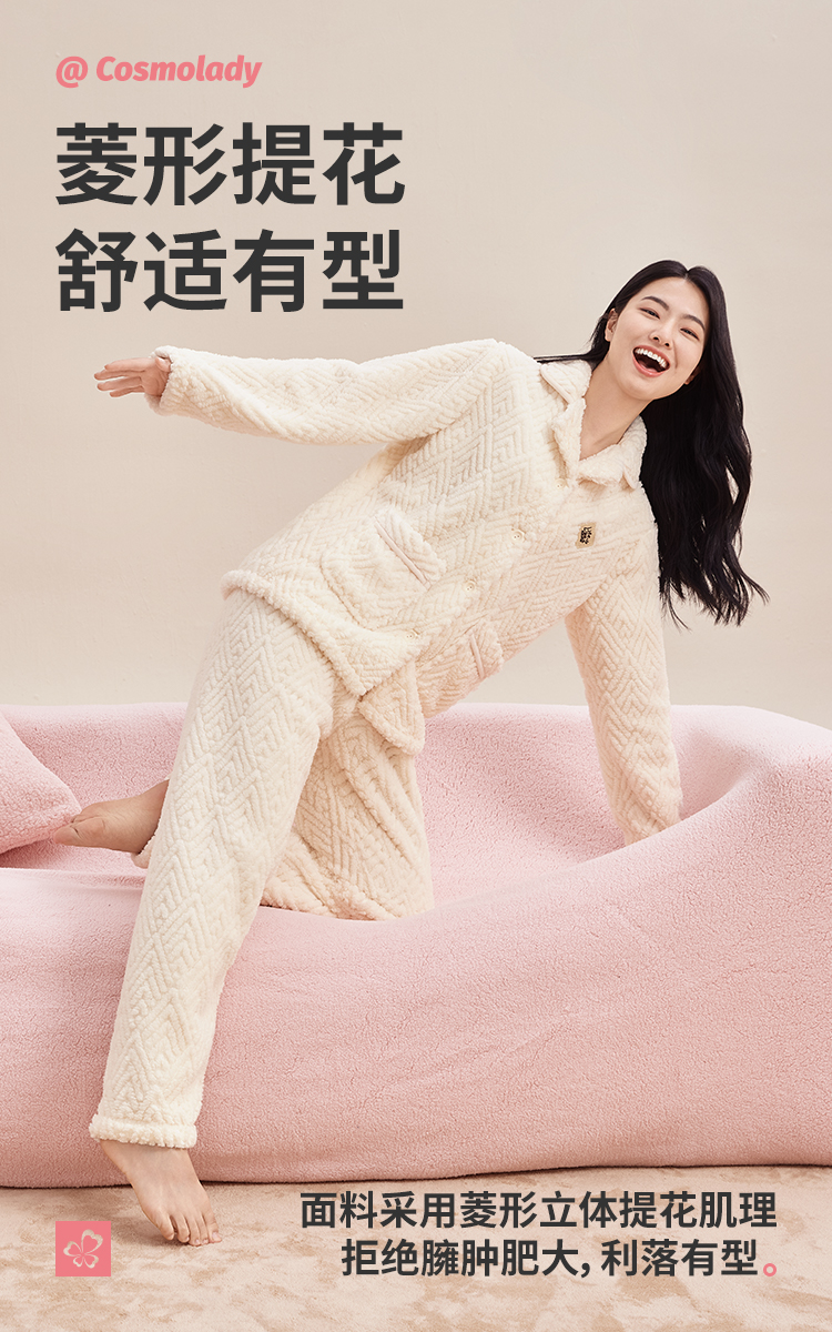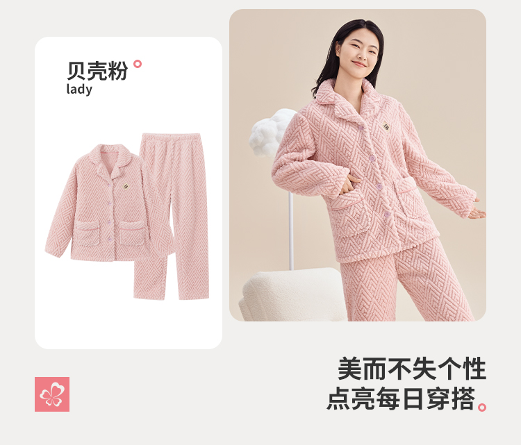 都市丽人秋冬睡衣长袖长裤长毛绒提花家居服2HT003