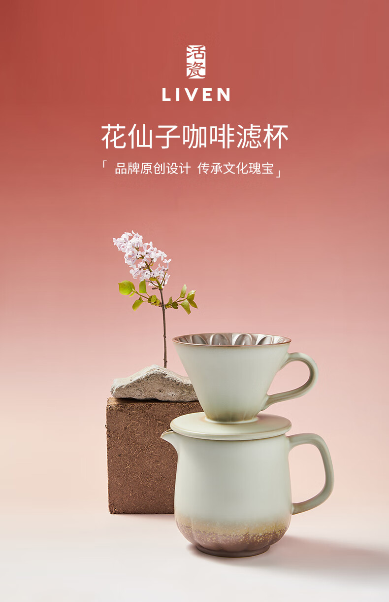 【清仓特惠4折,仅1件】乾唐轩活瓷杯花仙子咖啡滤杯水杯茶杯陶瓷杯子送礼手工定制 牙白+碧玺负离子