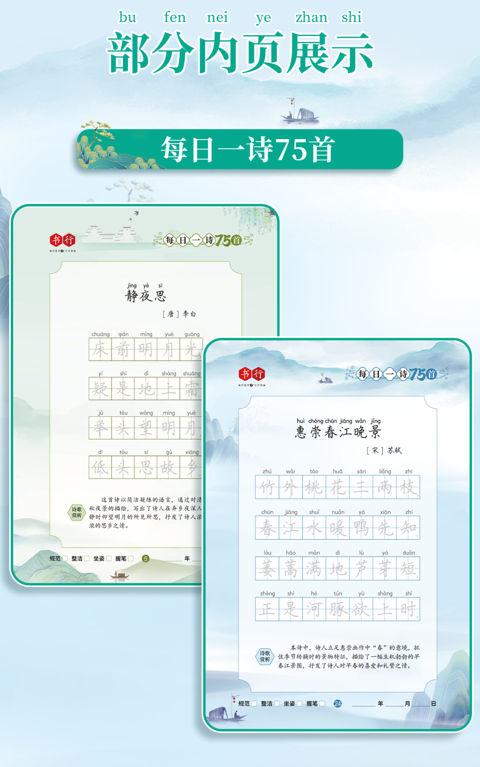 小学生每日一诗古诗词练字帖小学1-6年级课本同步临摹古诗楷书描红边学边写练字帖