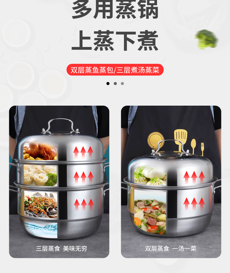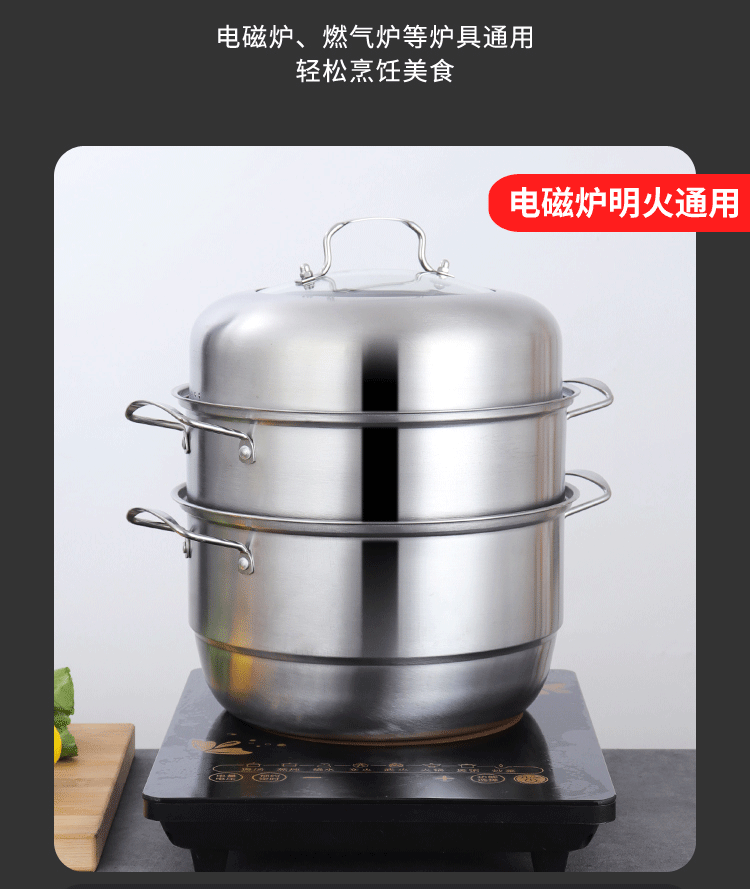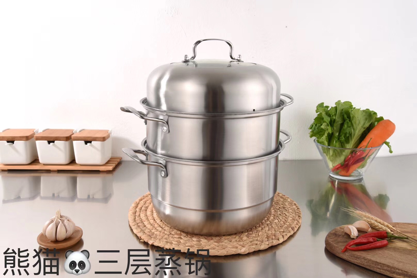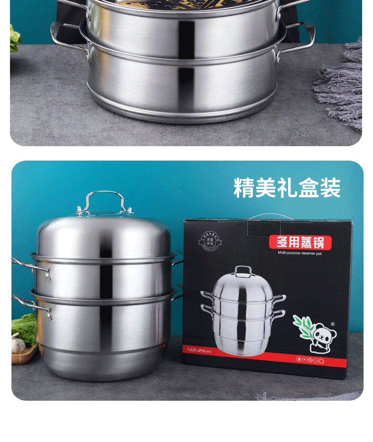 蒸锅304加厚不锈钢三层家用 双层汤锅28CM多层熊猫礼品锅厂家代发