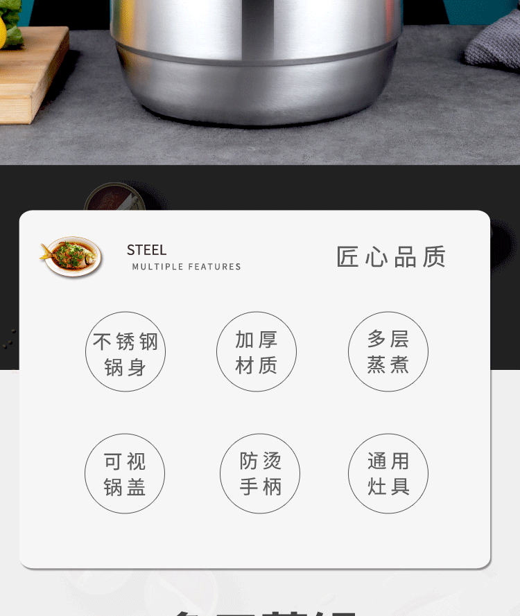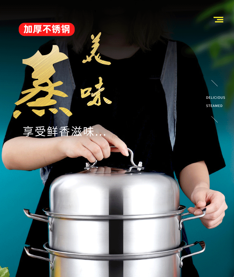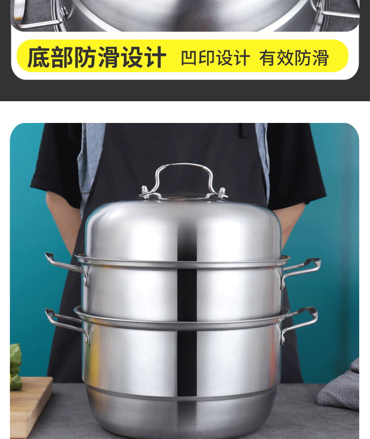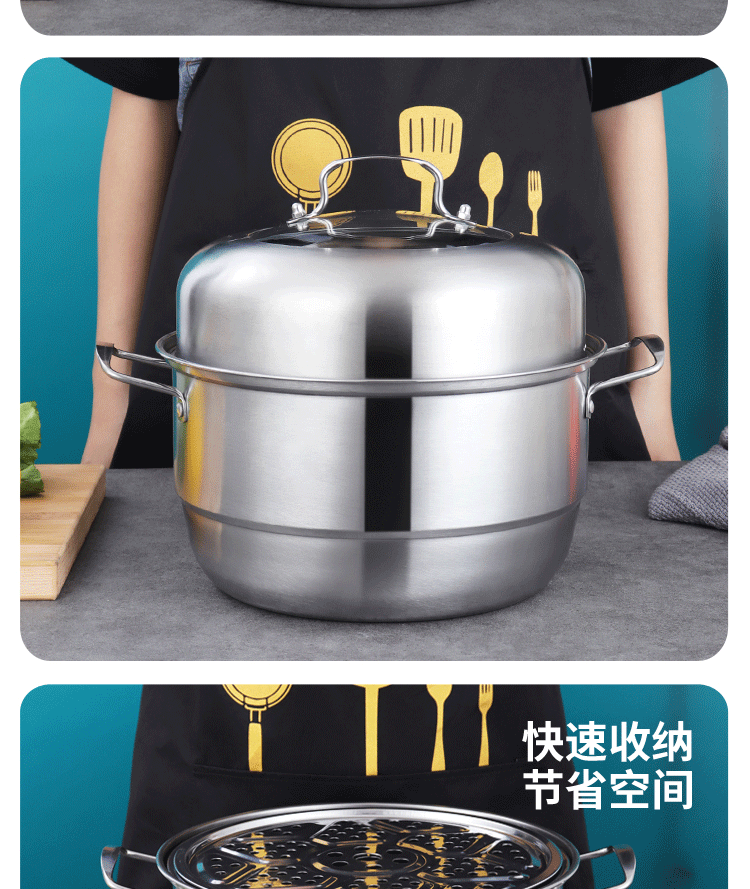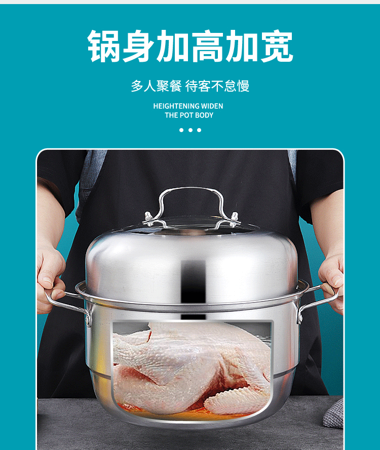 蒸锅304加厚不锈钢三层家用 双层汤锅28CM多层熊猫礼品锅厂家代发