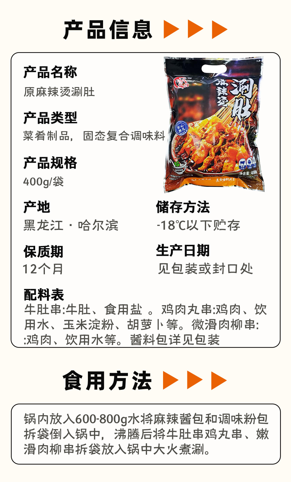 达民云厨麻辣烫涮肚 400g/袋 16袋/件
