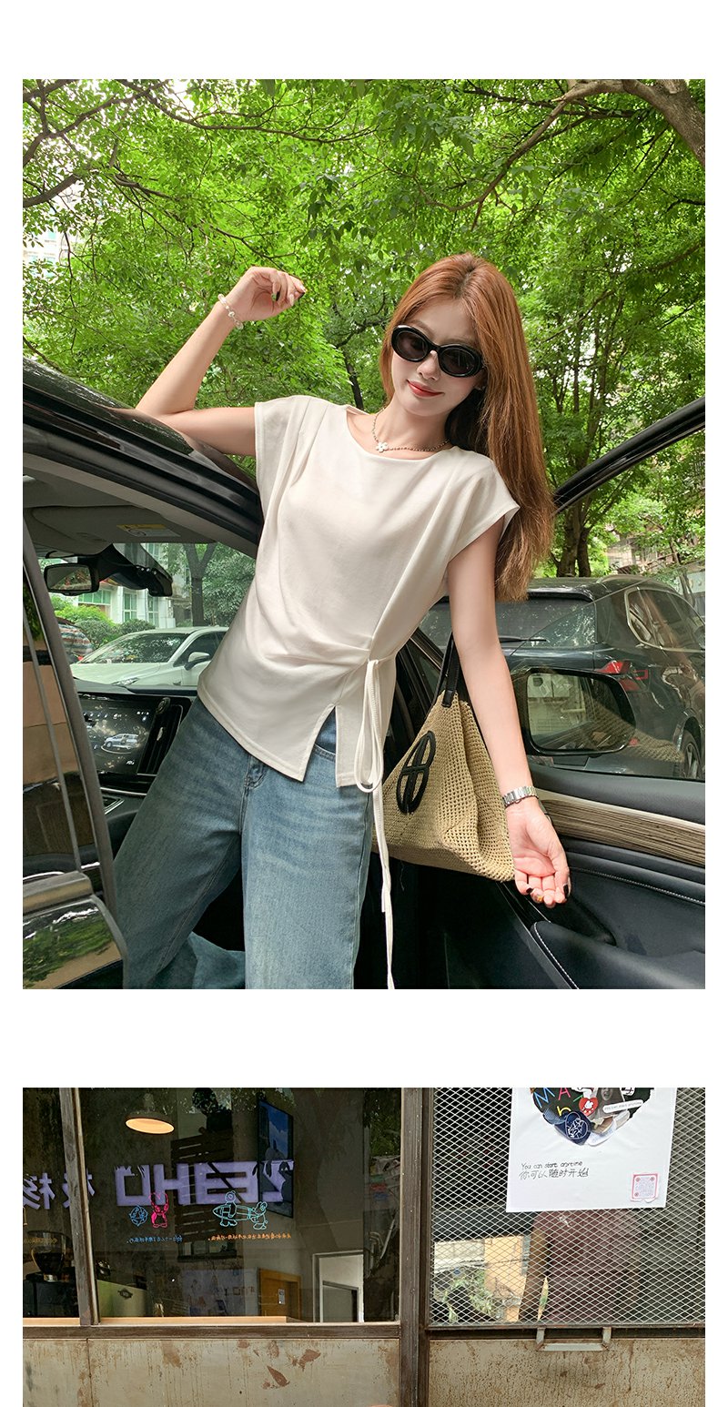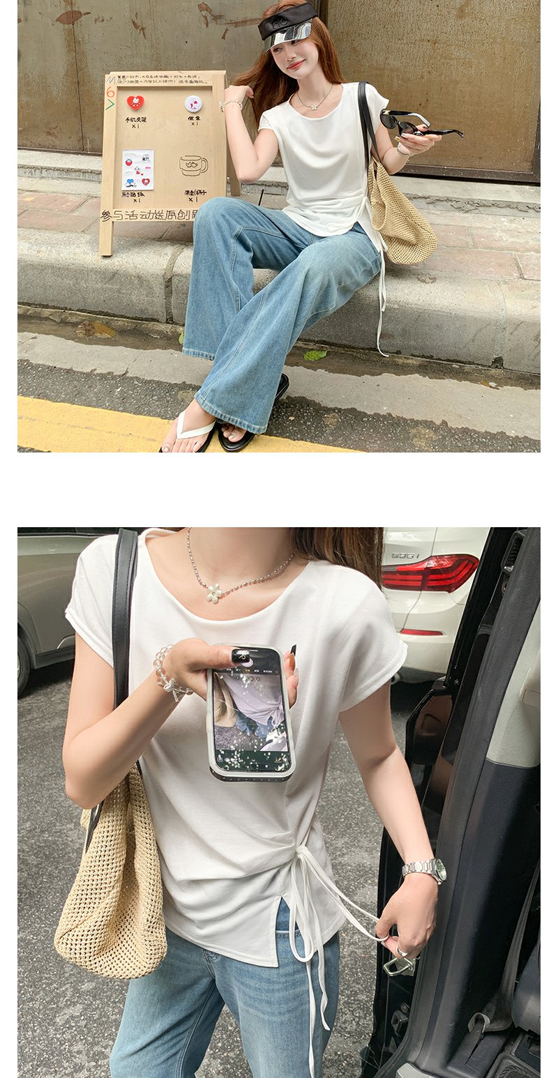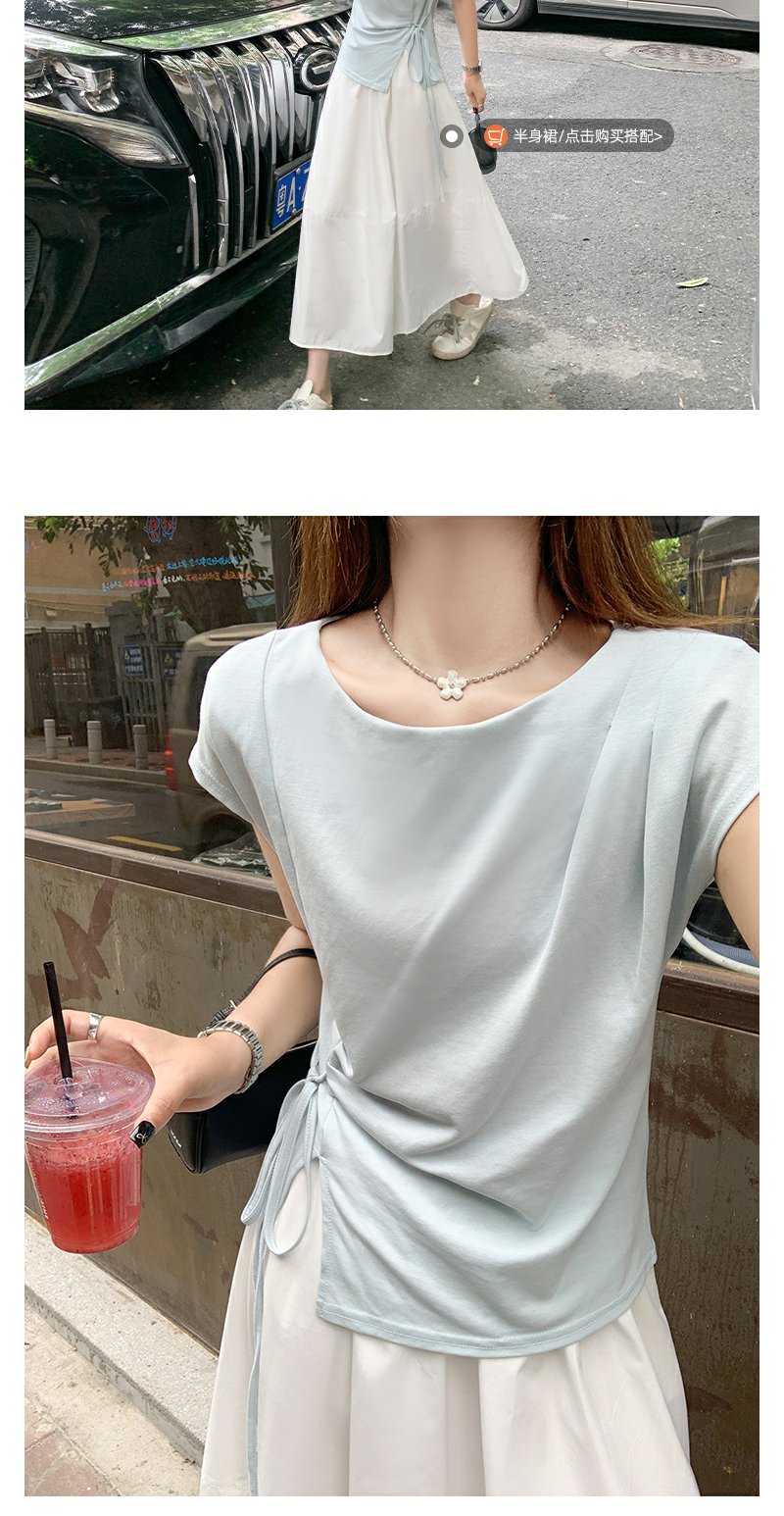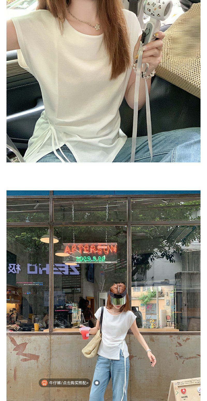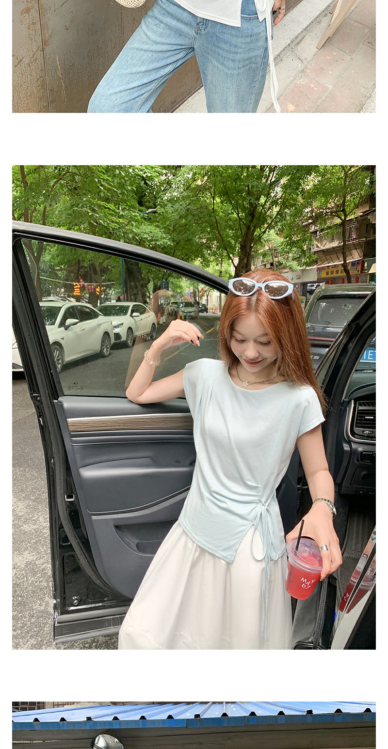 <曾小咸推荐>侧开叉绑带设计感收腰短袖T恤女