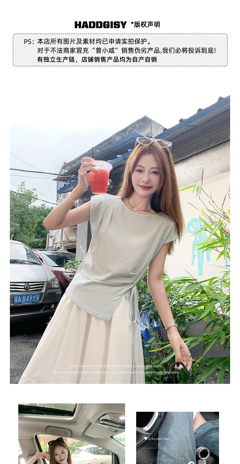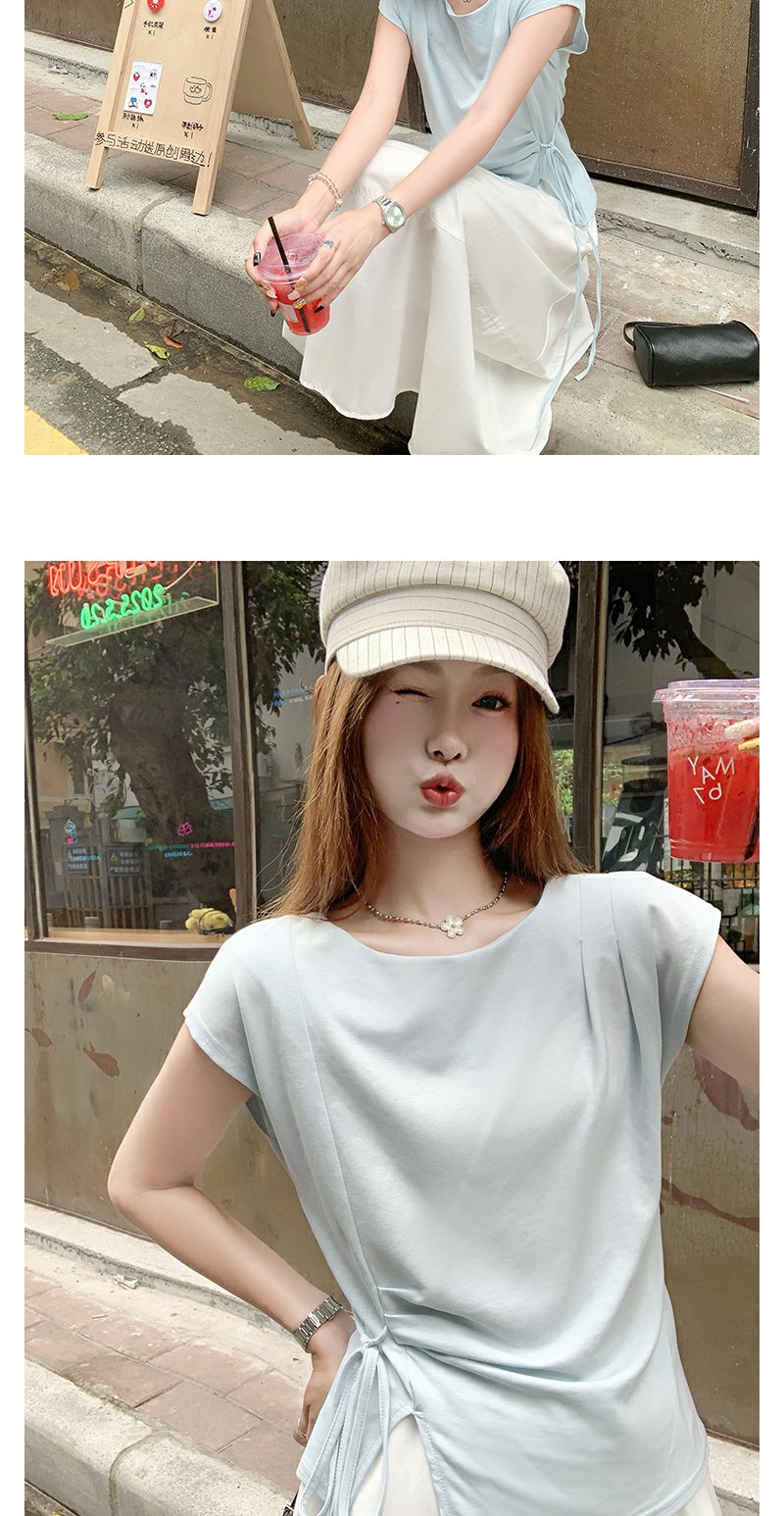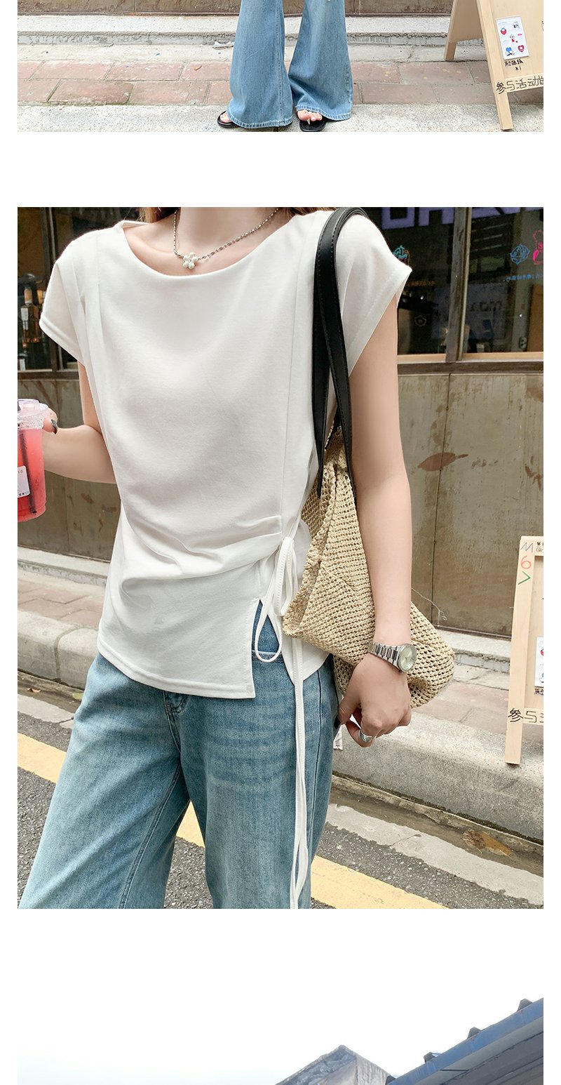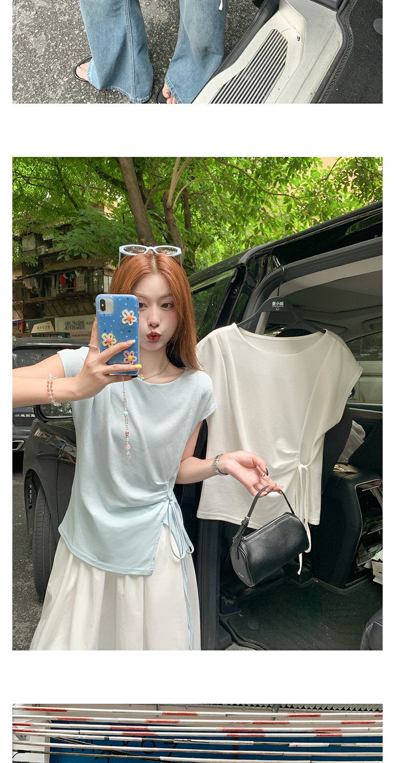 <曾小咸推荐>侧开叉绑带设计感收腰短袖T恤女