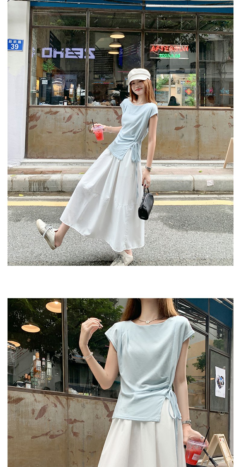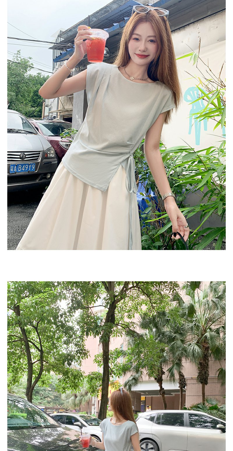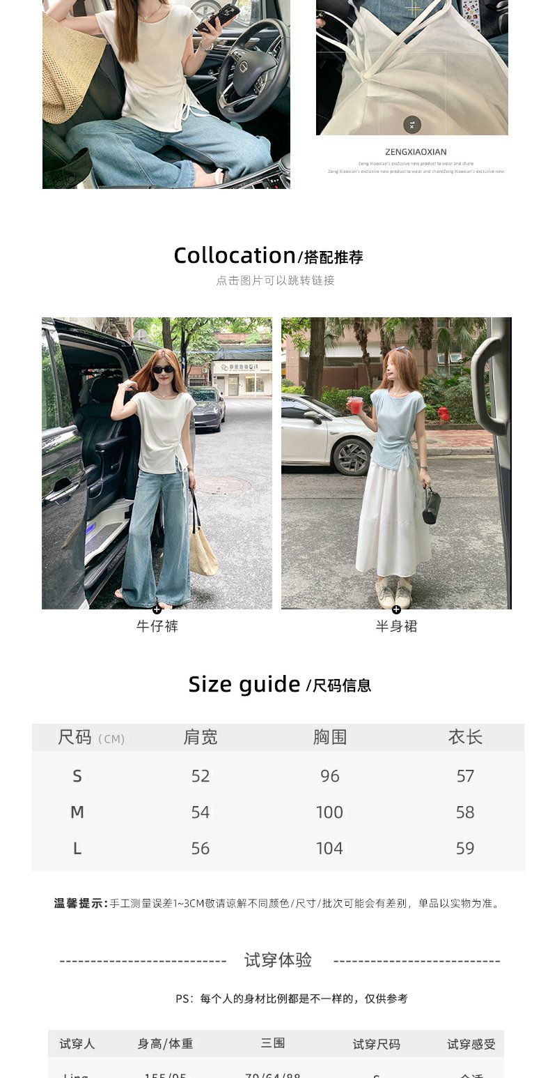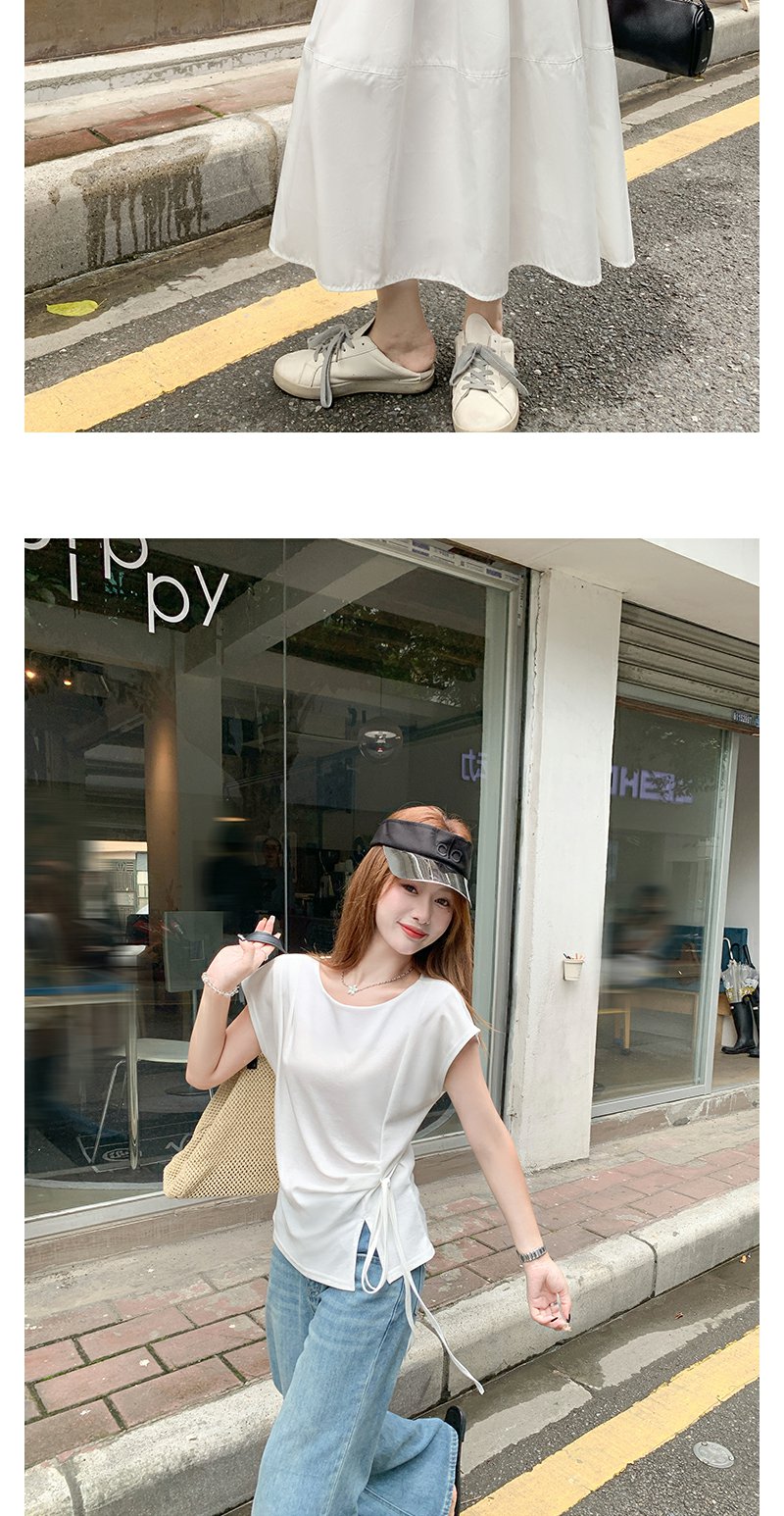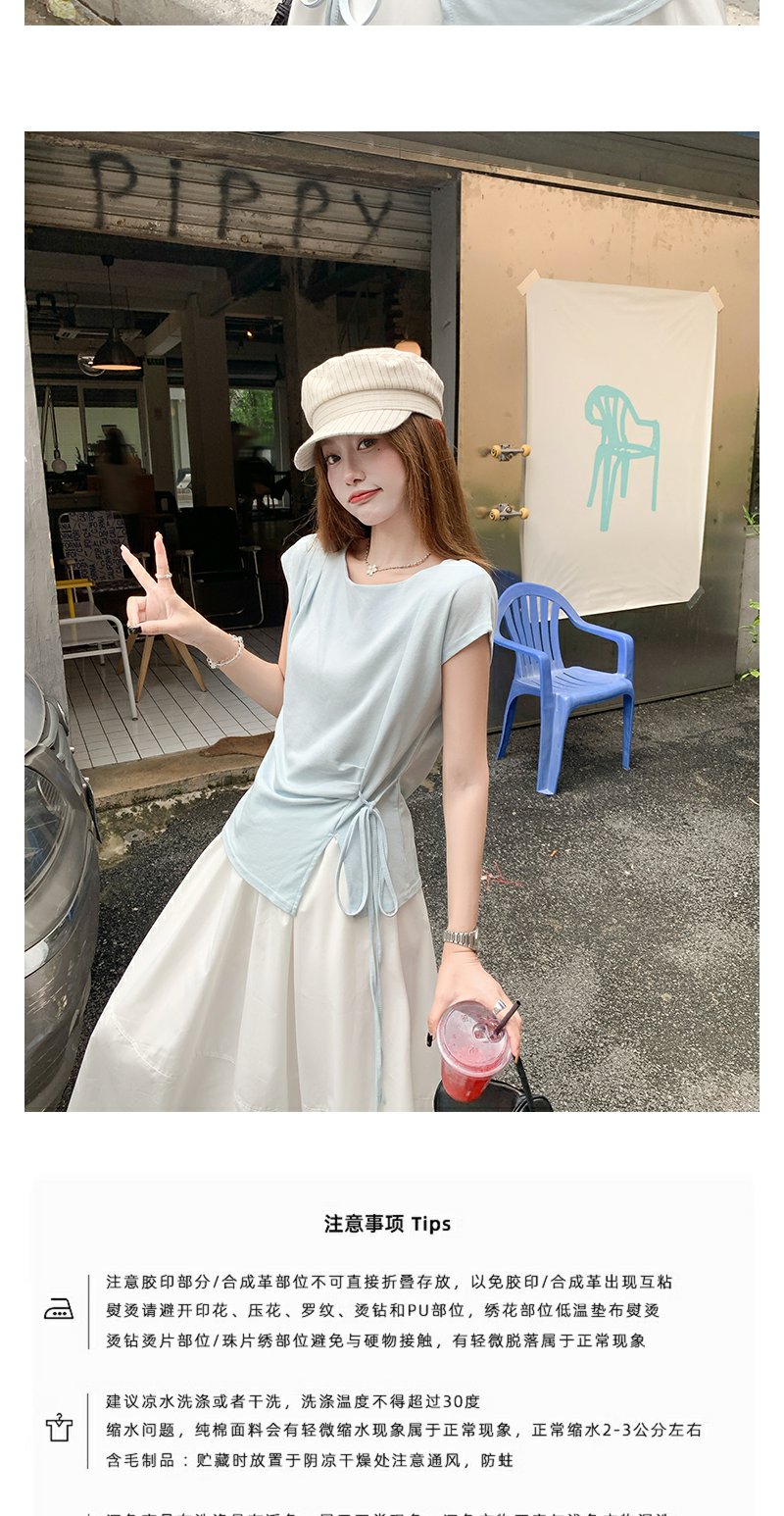 <曾小咸推荐>侧开叉绑带设计感收腰短袖T恤女