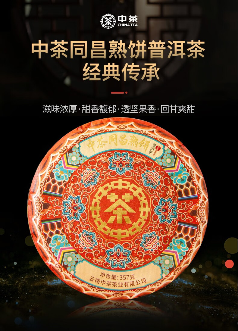 中粮-中茶2023年同昌熟饼普洱茶熟茶/云南七子饼茶357克/饼/云南干仓直发