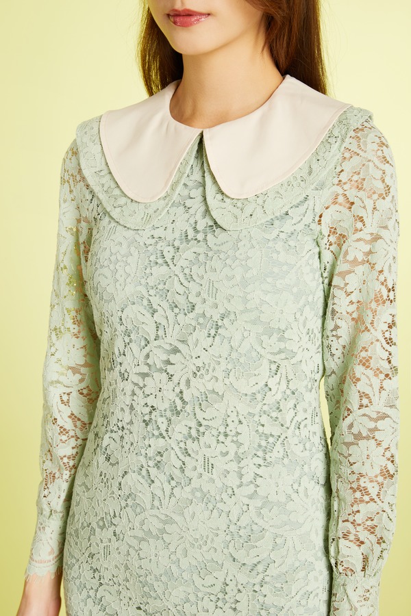 amadella 双层撞色蕾丝领修身连衣裙 11279