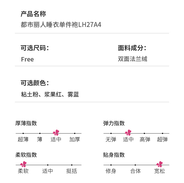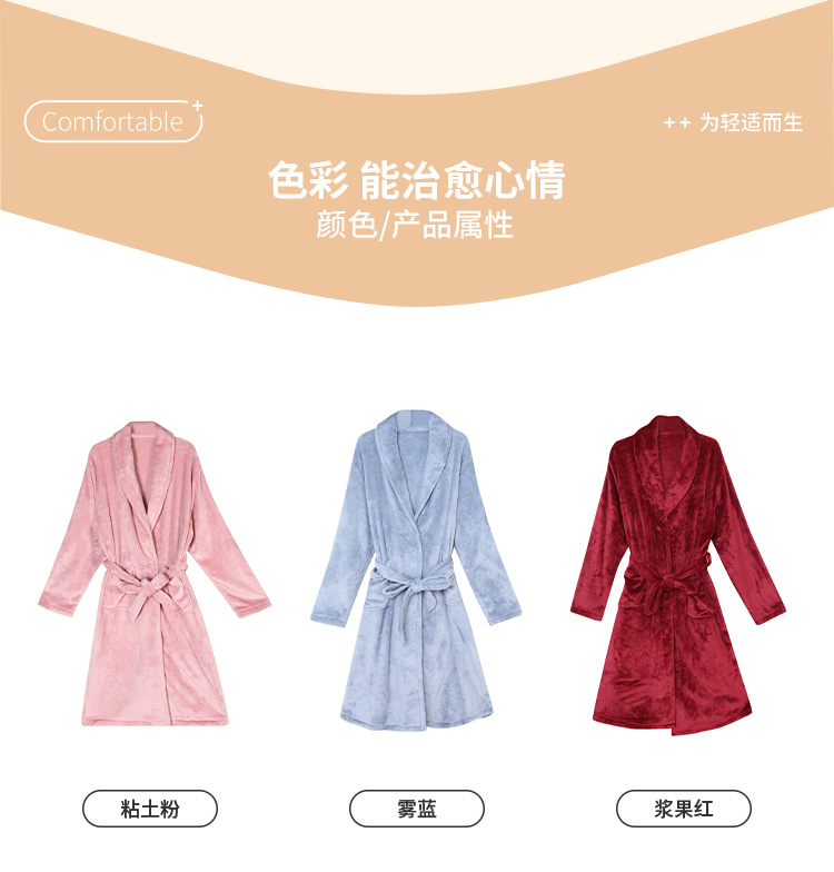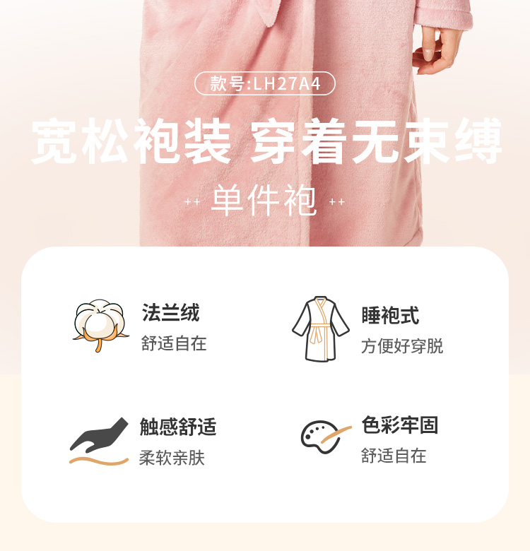都市丽人轻松浴室女士法兰绒单件袍双面法兰绒厚家居服单件袍睡衣LH27A4