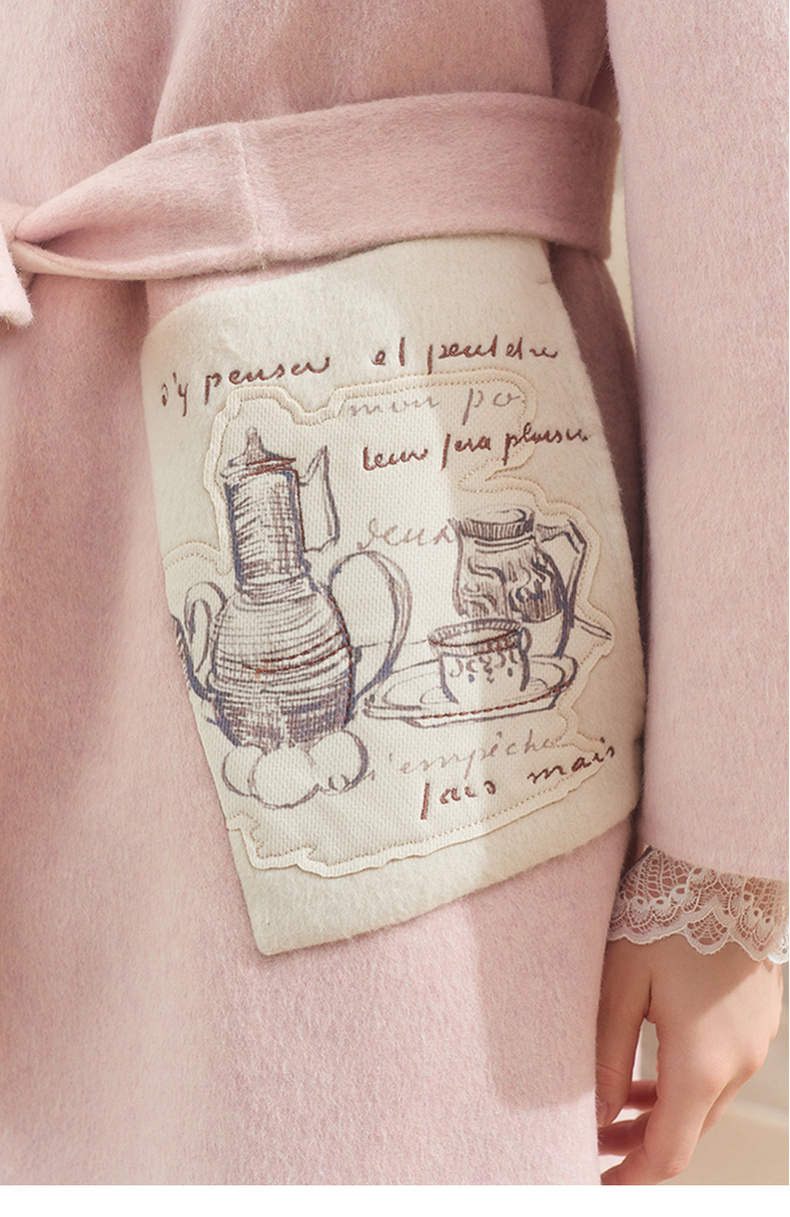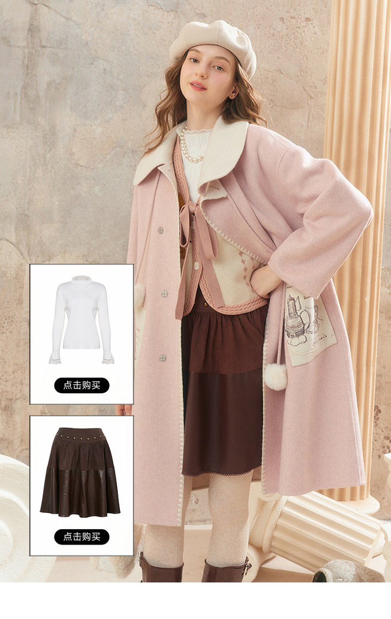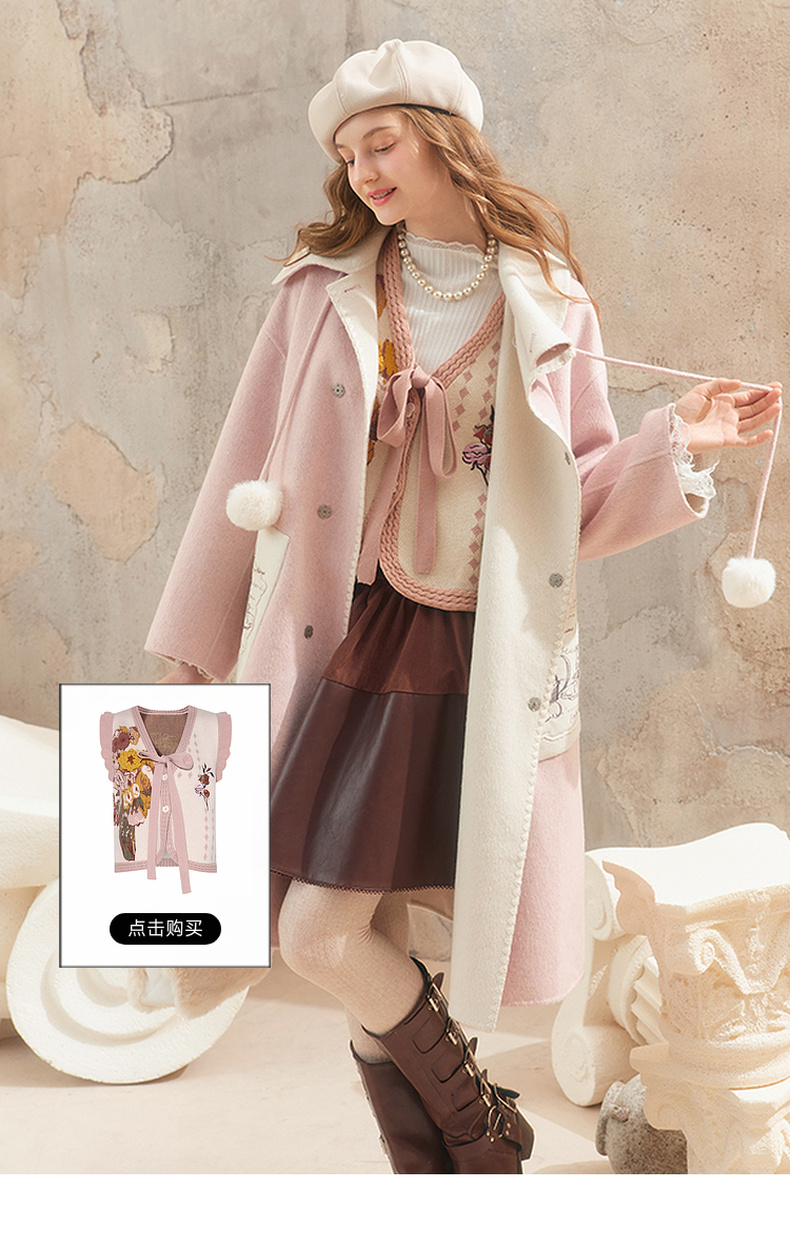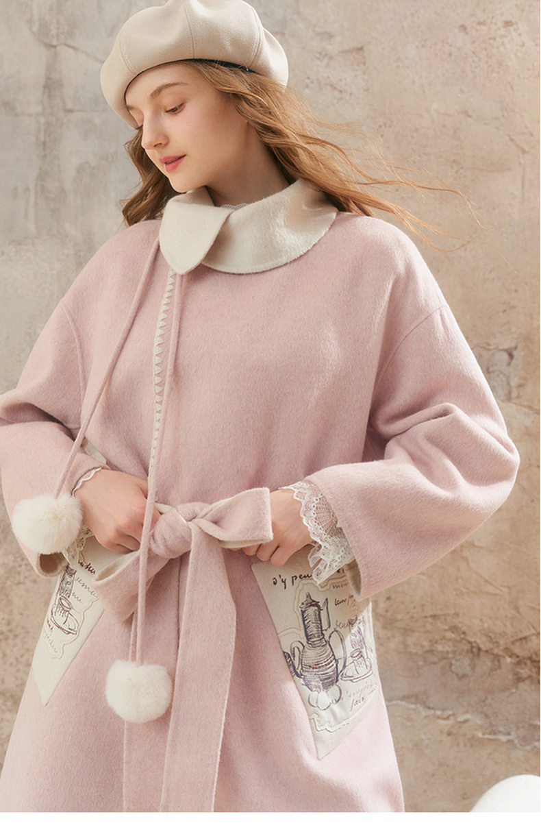 【暖冬内购】两三事梵高文艺甜梦絮语2025秋冬新款贴布绣绑带毛球双面呢外套女