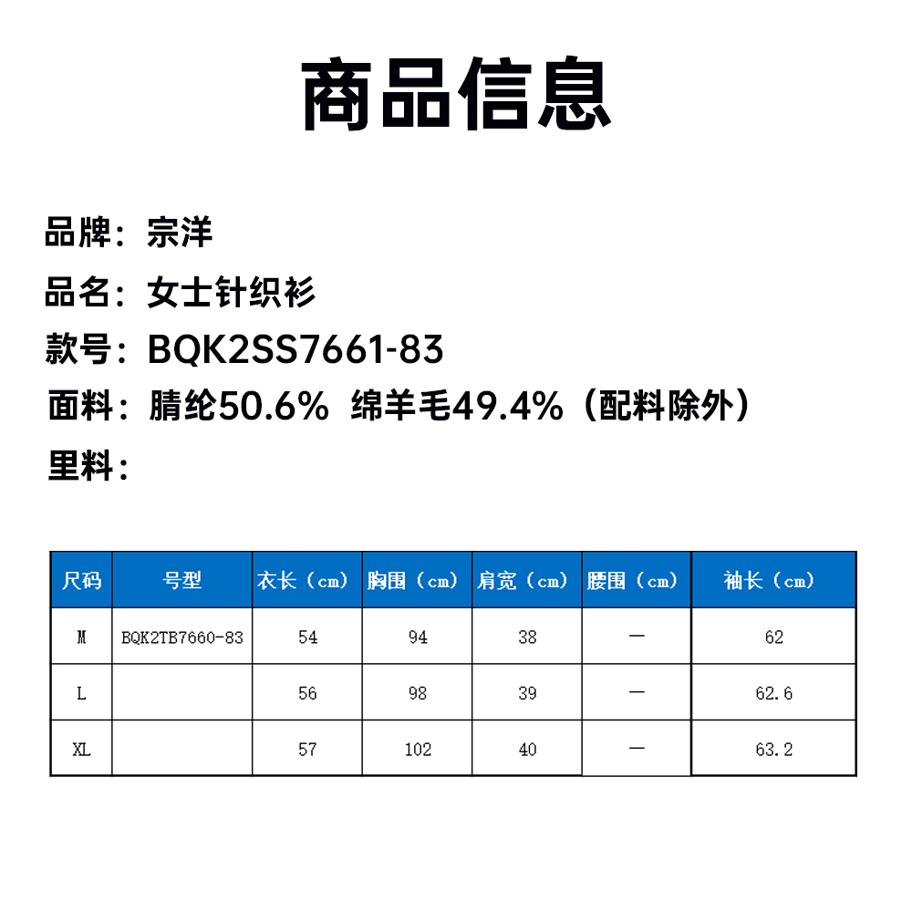 宗洋女士针织衫BQK2TB7660-83