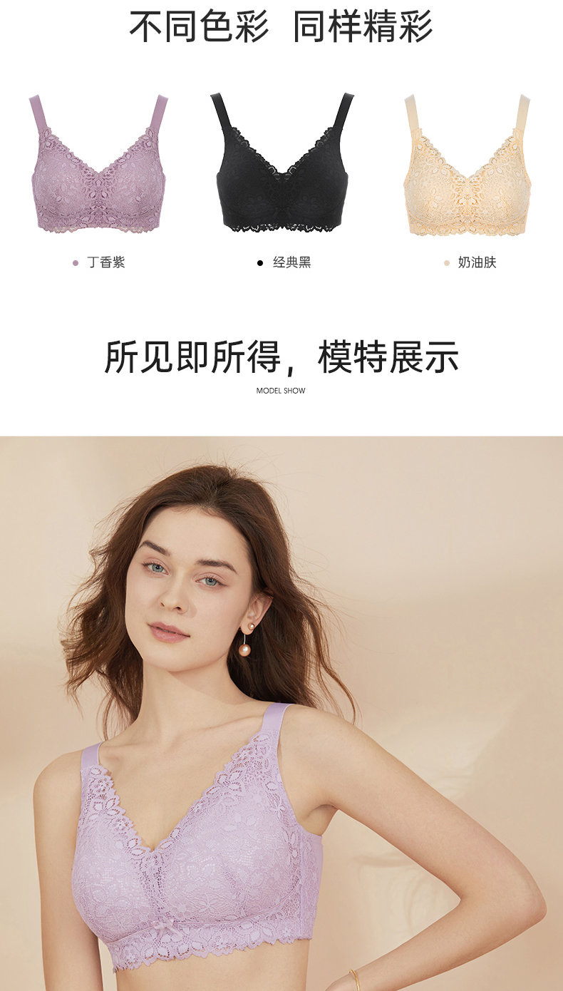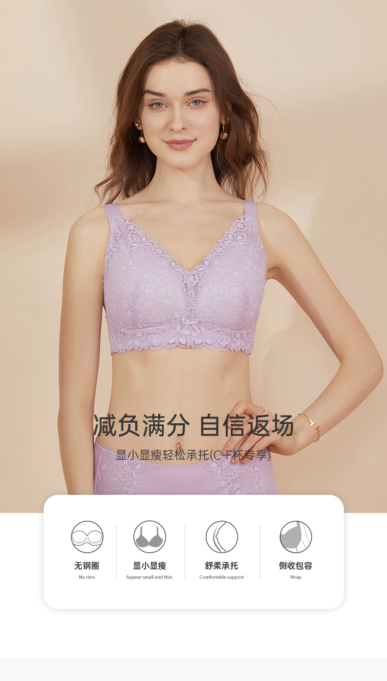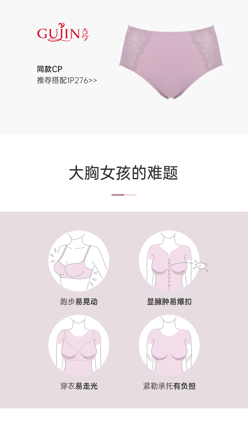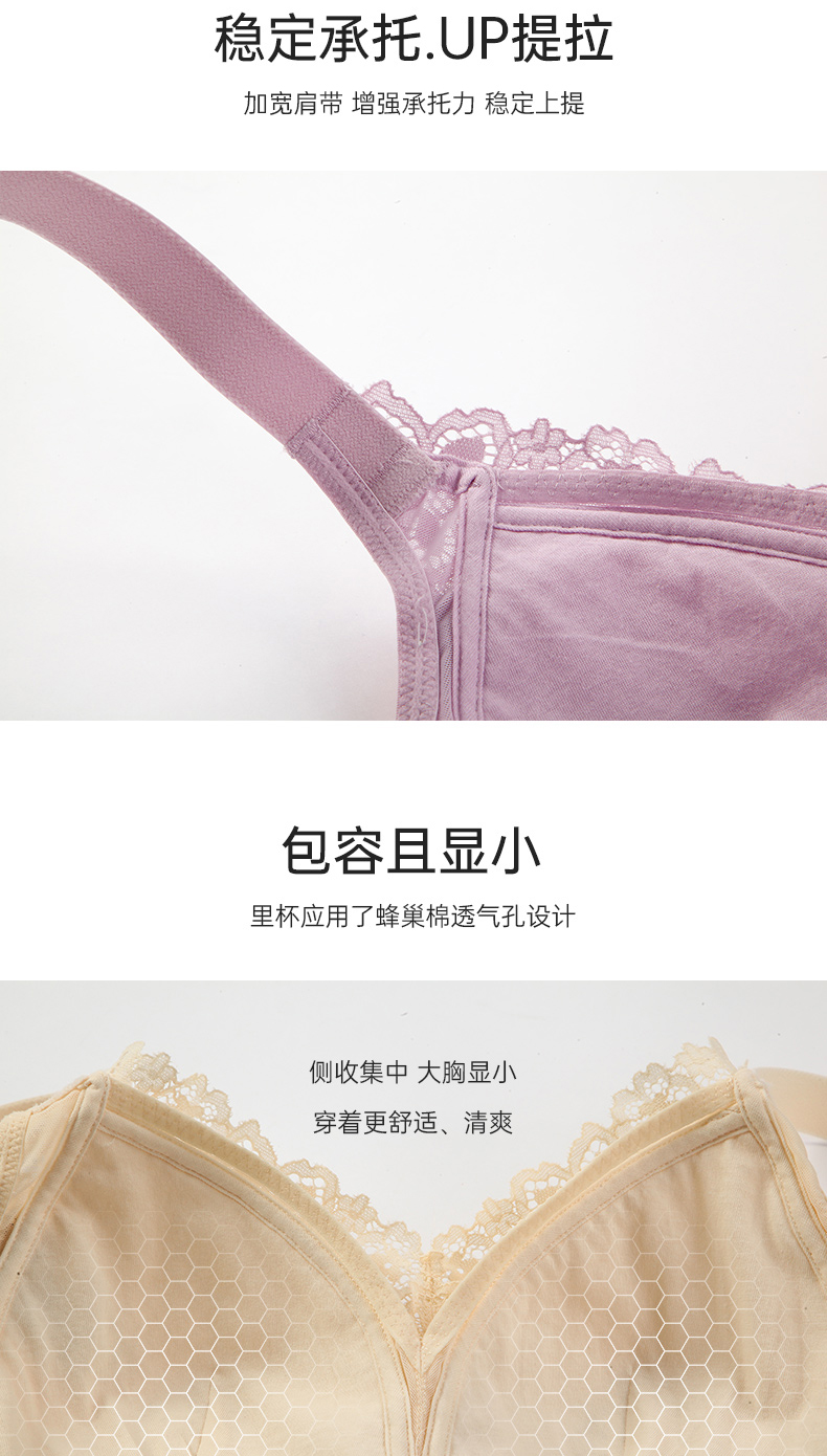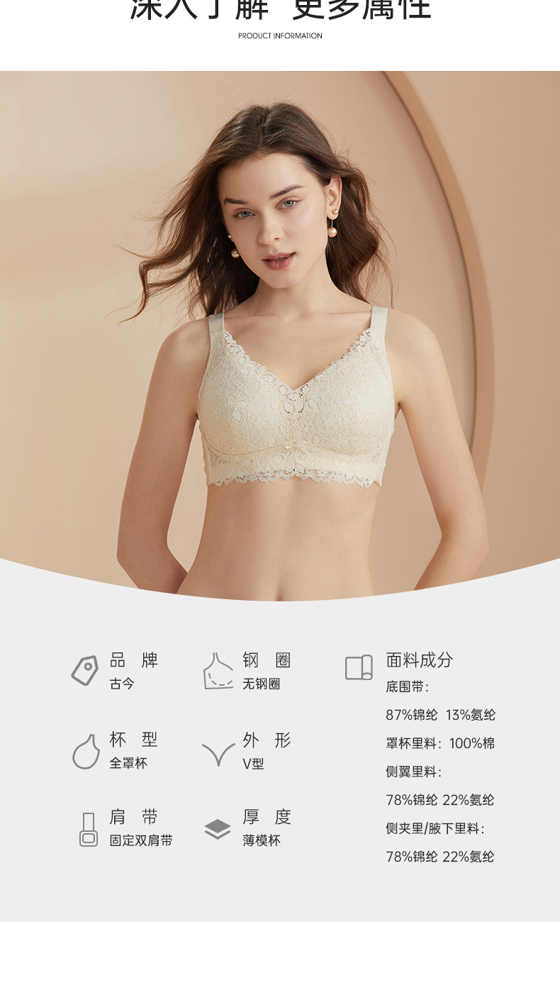 古今舒适蕾丝C-F杯薄款双肩带大胸显小显瘦文胸罩内衣女0p276