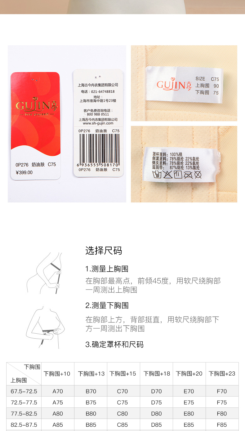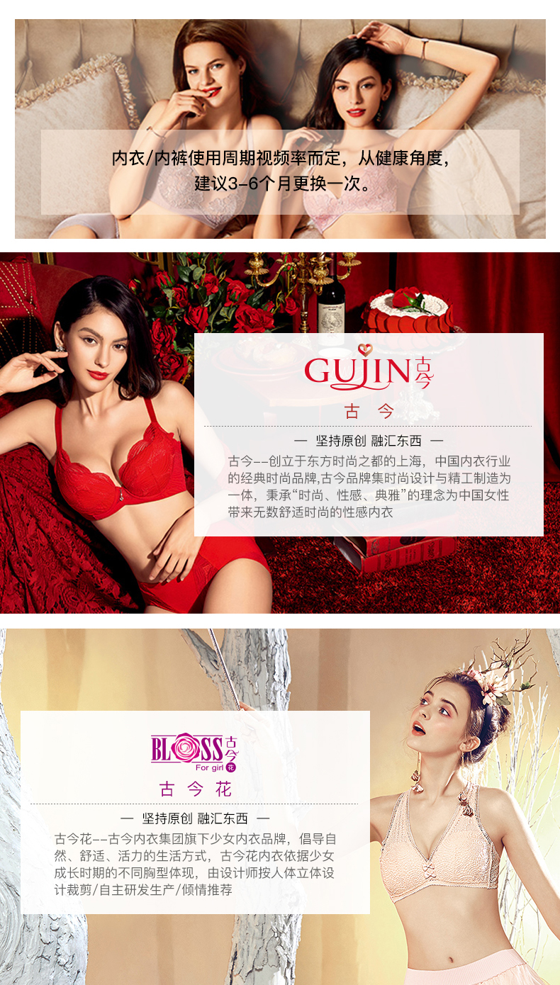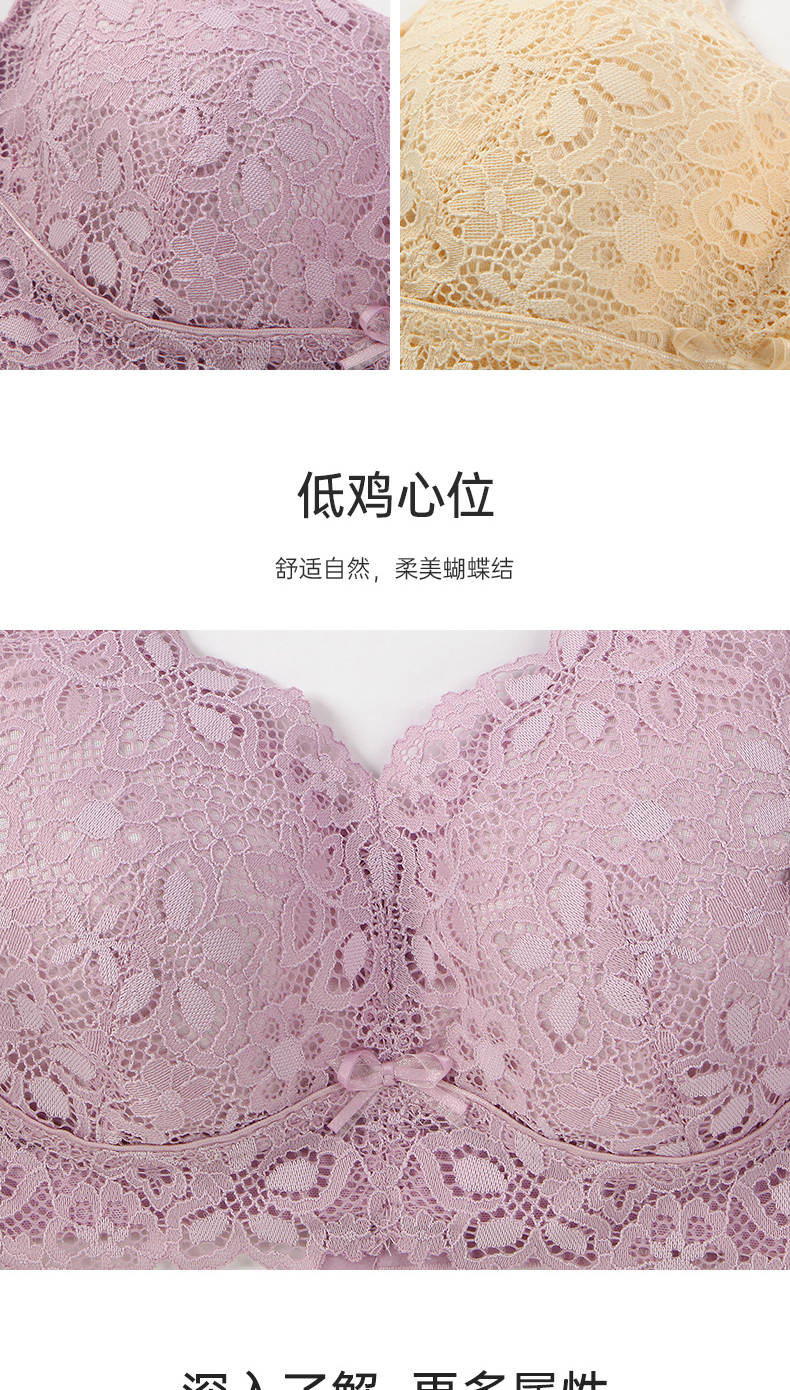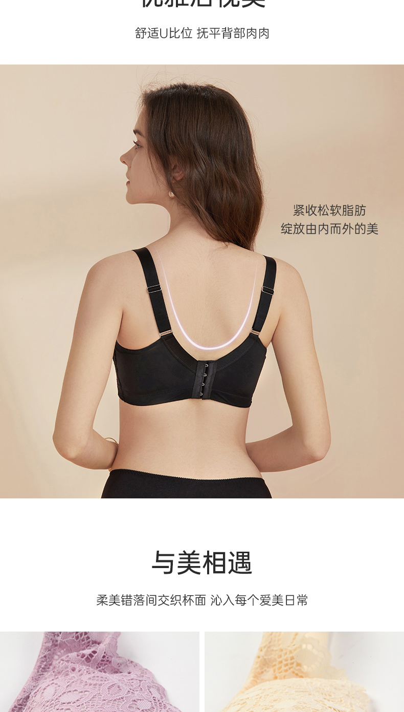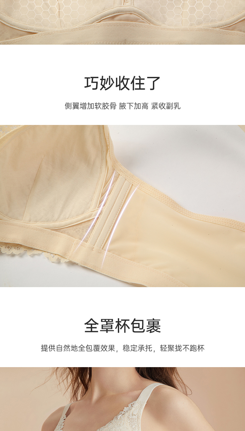 古今舒适蕾丝C-F杯薄款双肩带大胸显小显瘦文胸罩内衣女0p276