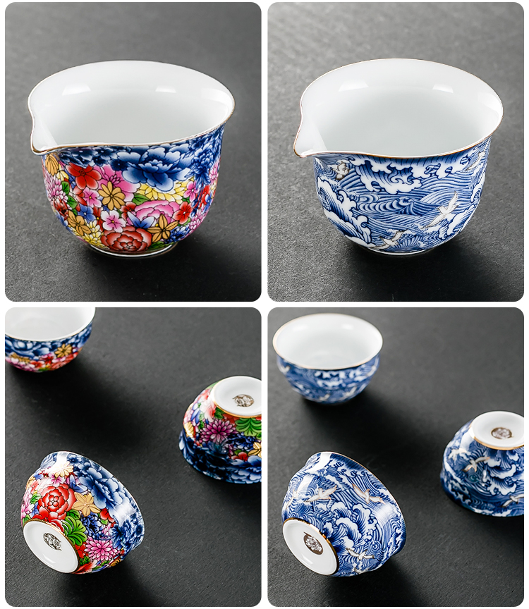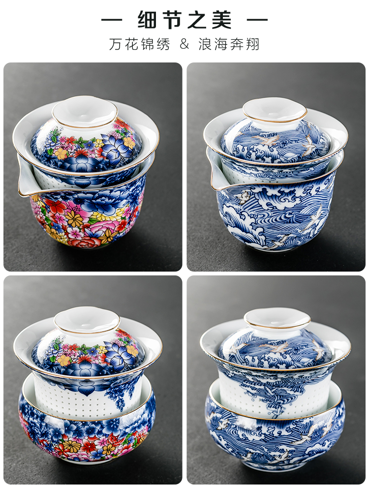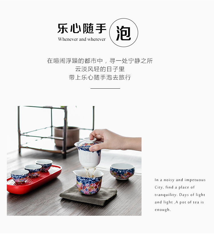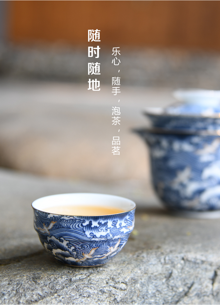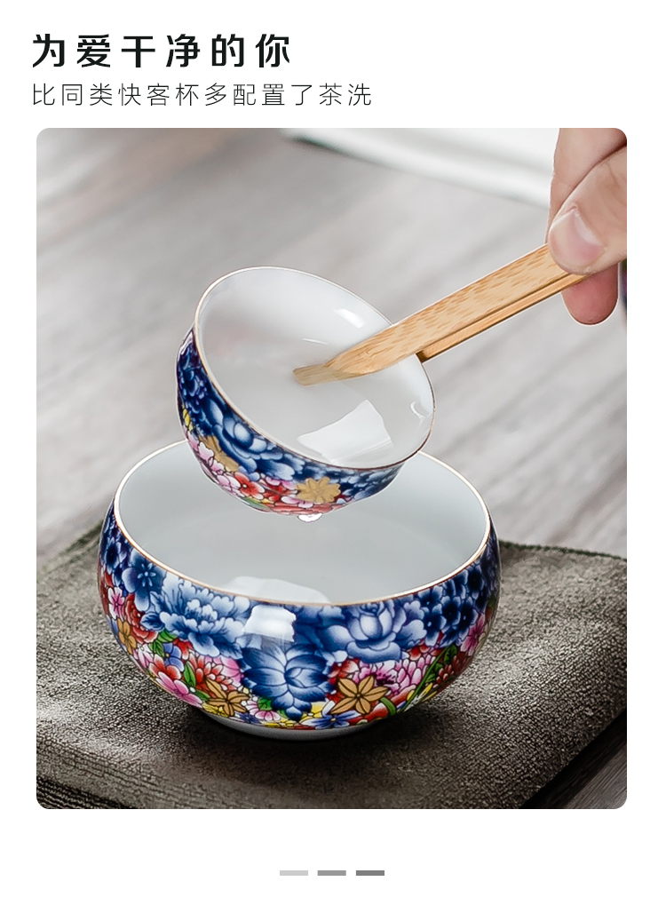 【样品特惠6.5折,仅2套,无原包装,无货退款】成艺青花瓷快客杯一壶三杯旅行功夫茶具便携包随身单人迷你泡茶壶锦上天花乐心随手泡【不支持补差,非质量问题不退不换】S