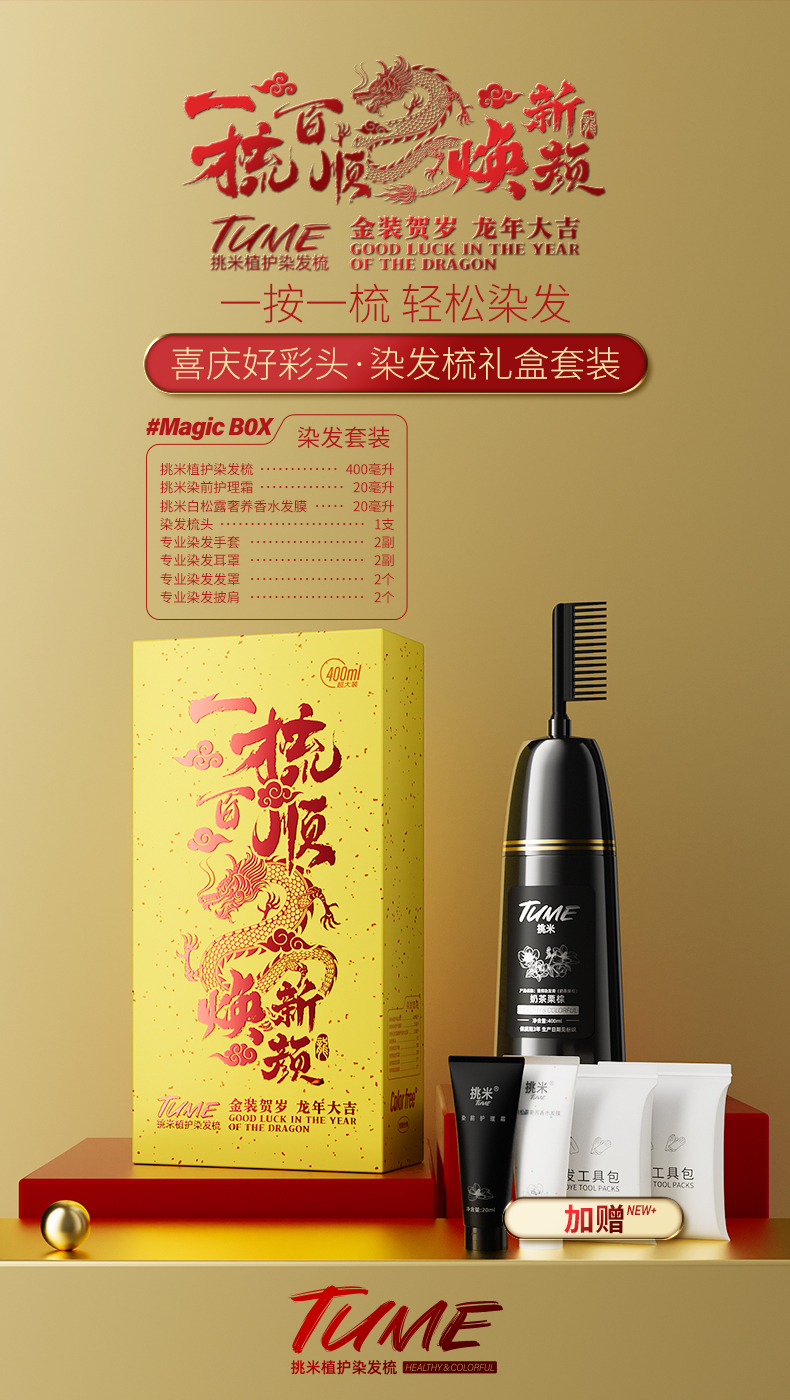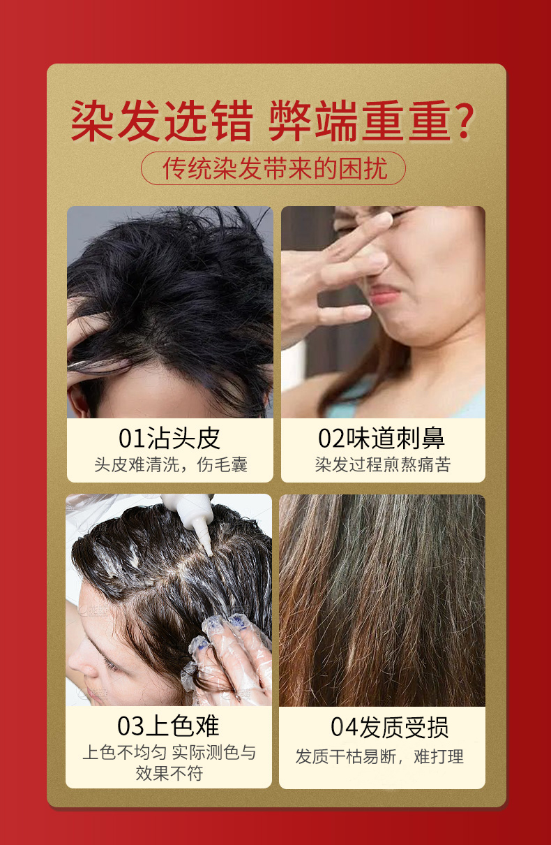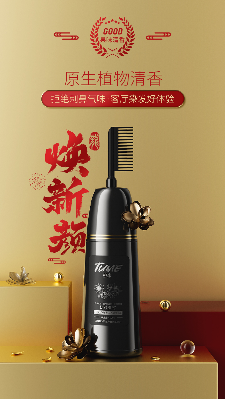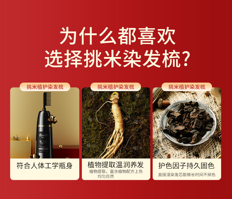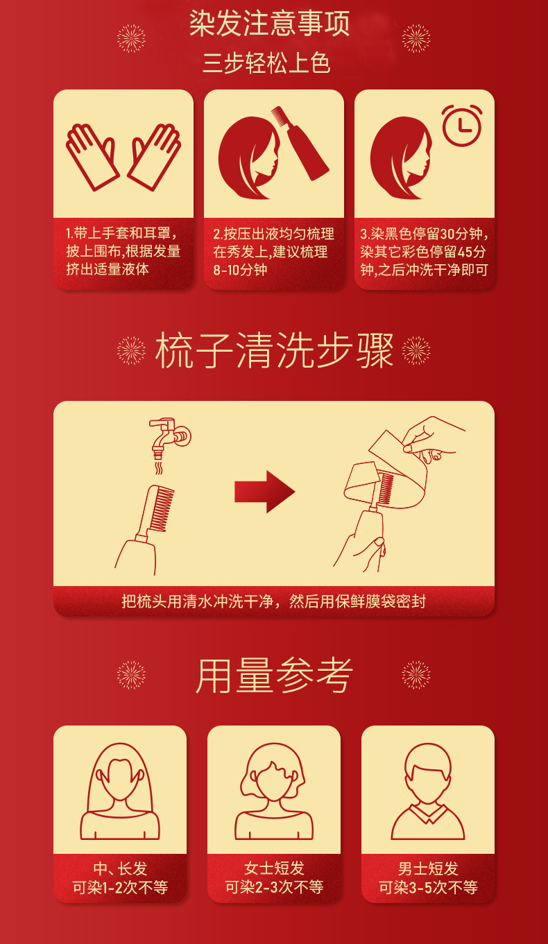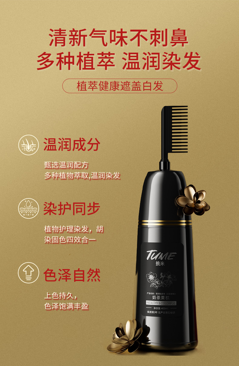【jojo】果香染发梳挑米染发膏含植物含何首乌草本精华简单使用