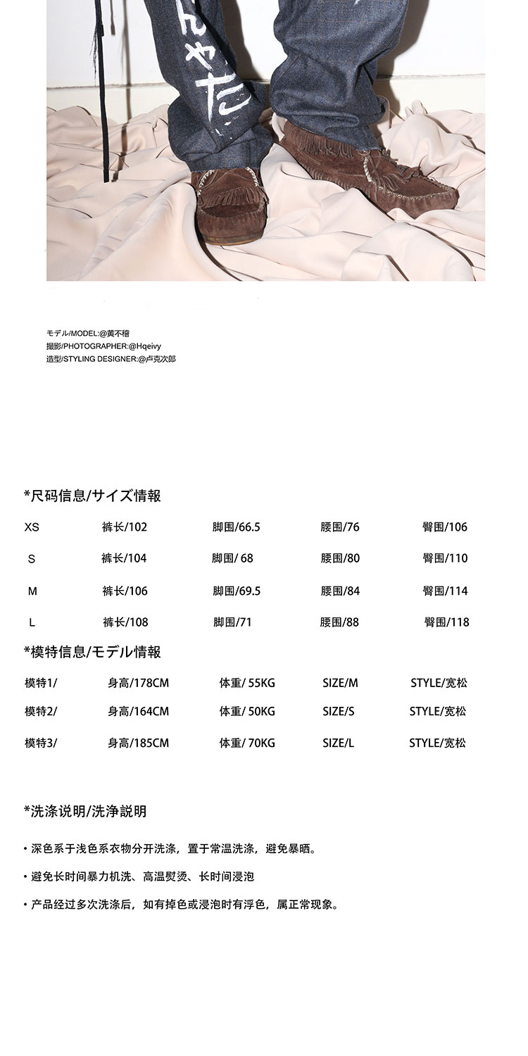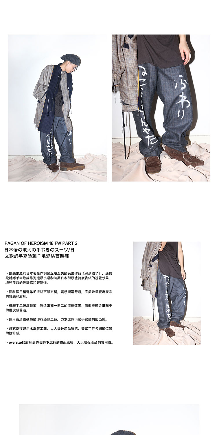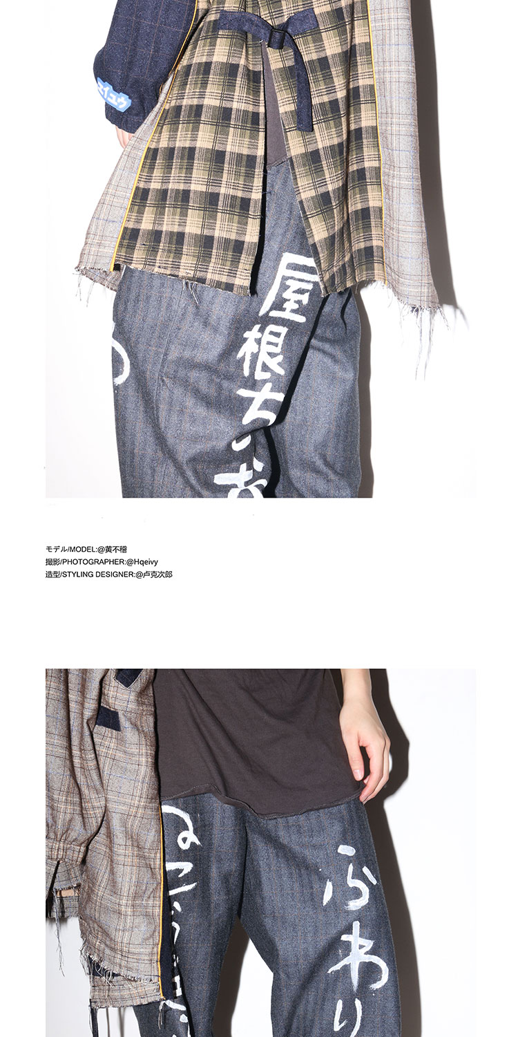 POH 日文歌詞手寫塗鴉破壞羊毛混紡格纹西裝褲潮流原宿风直筒裤潮