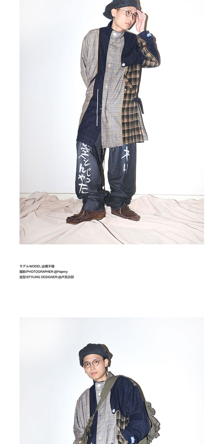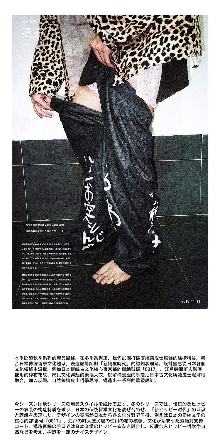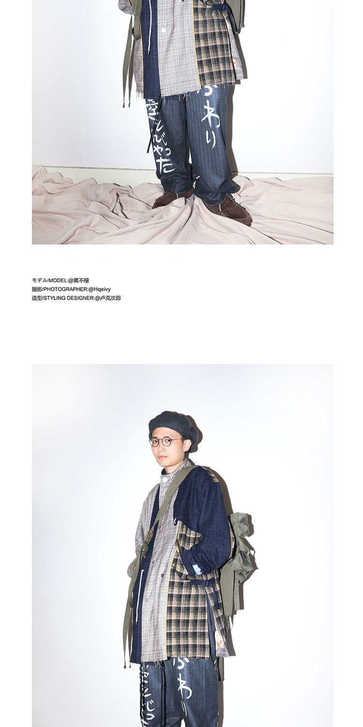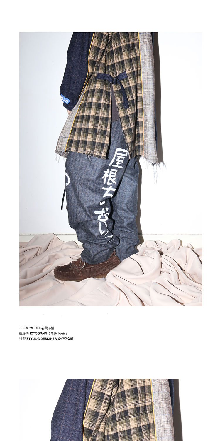 POH 日文歌詞手寫塗鴉破壞羊毛混紡格纹西裝褲潮流原宿风直筒裤潮