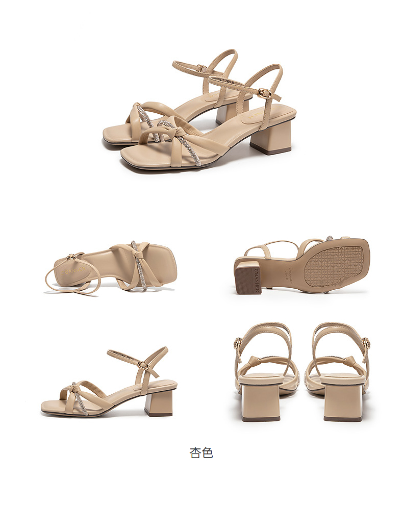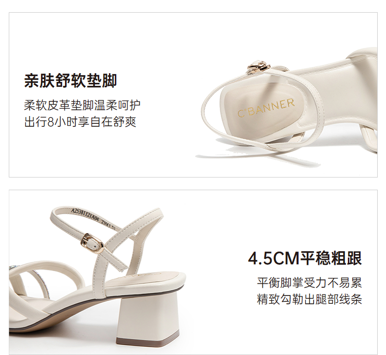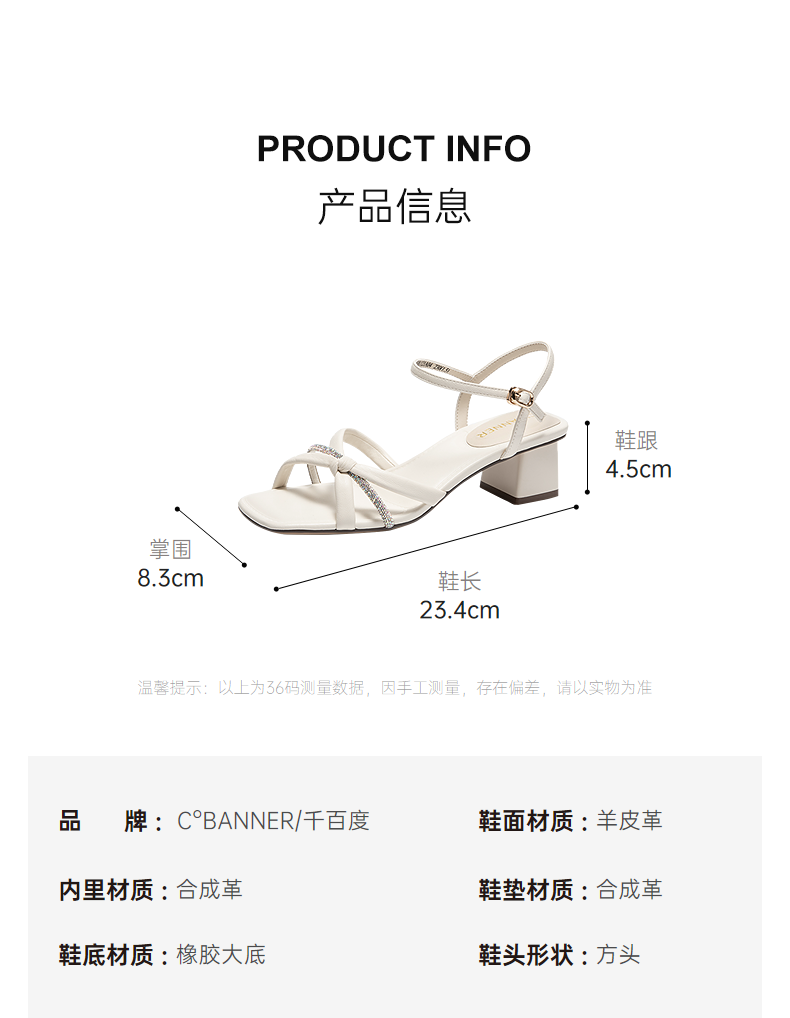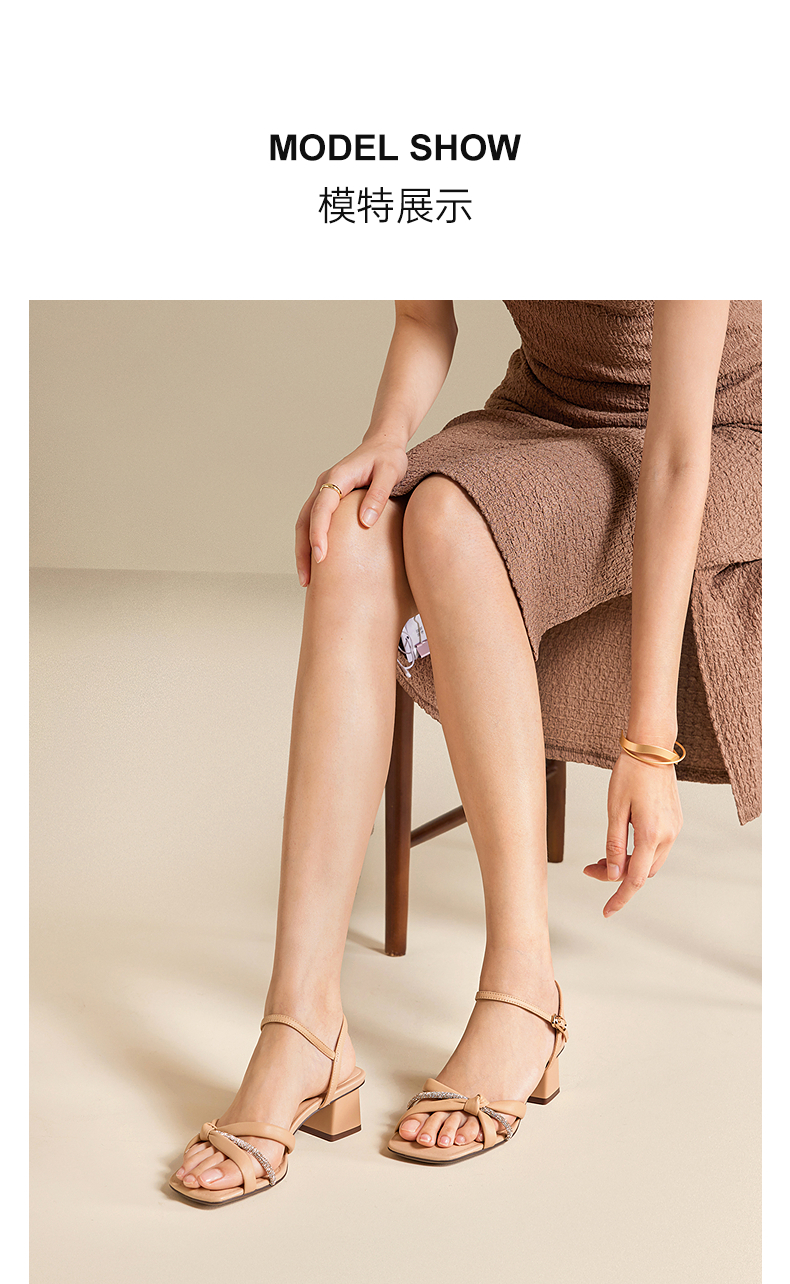 千百度粗高跟羊皮时装凉鞋女一字带露趾配裙子凉鞋A25381121
