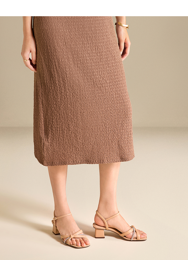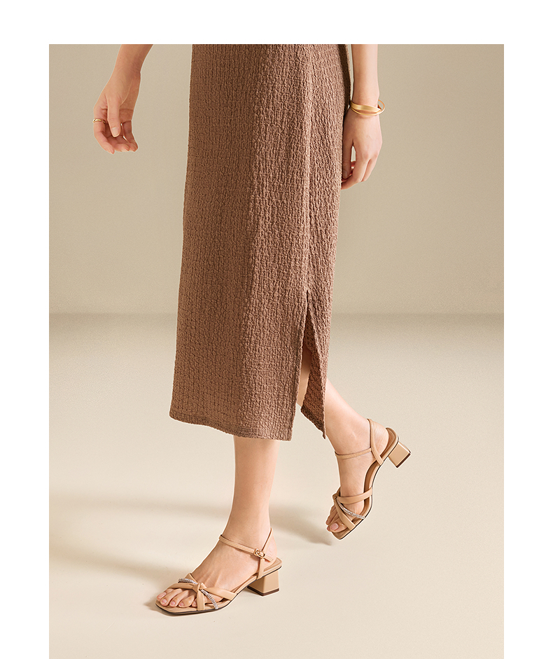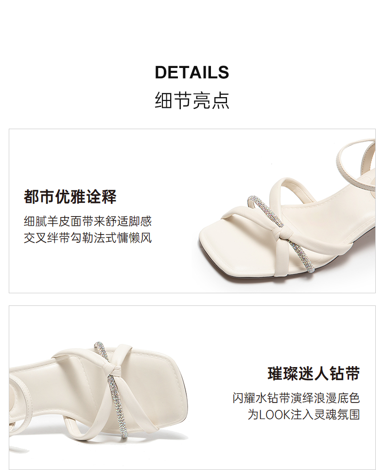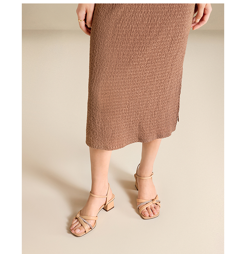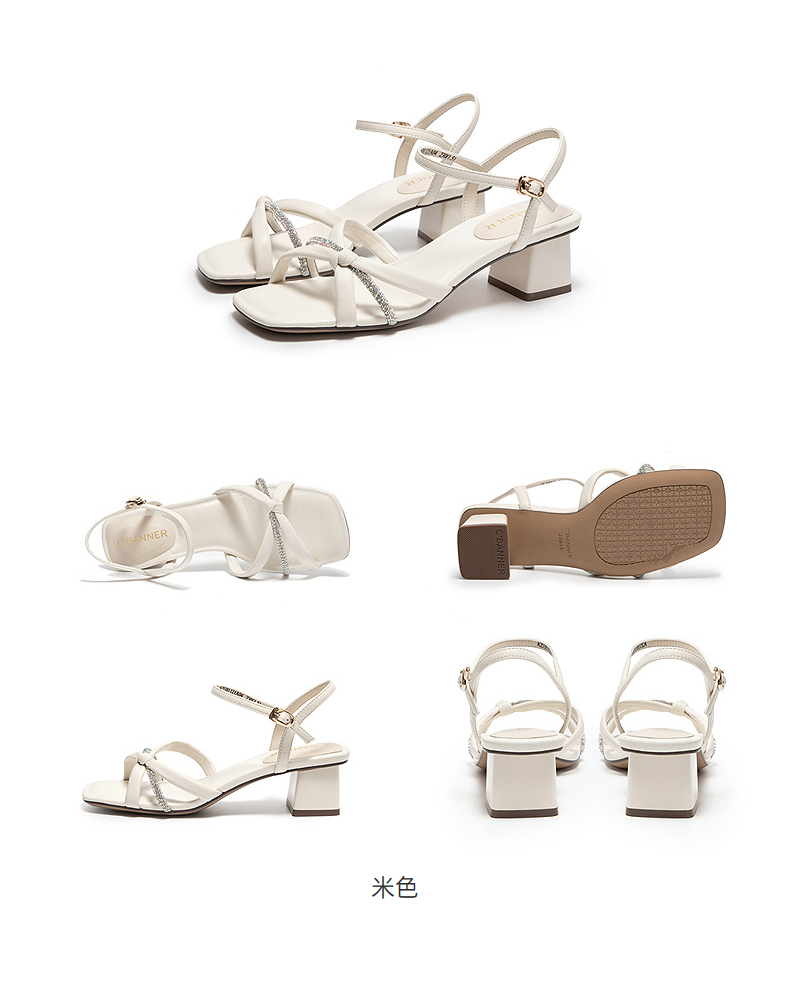 千百度粗高跟羊皮时装凉鞋女一字带露趾配裙子凉鞋A25381121