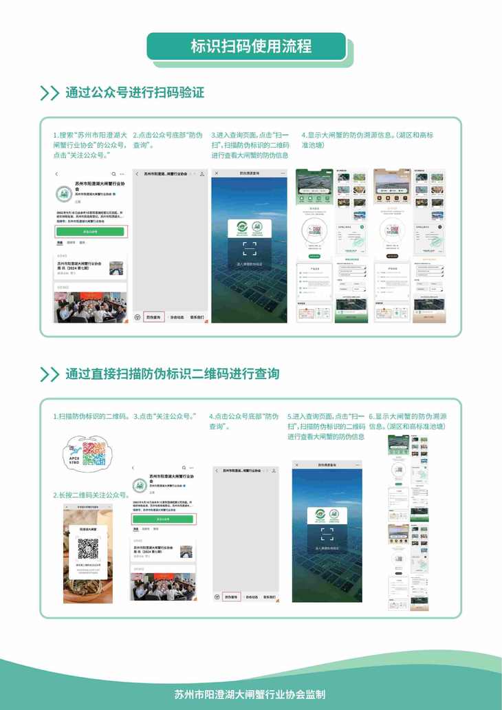 2025年新版阳澄湖大闸蟹防伪标识(蟹扣、防伪标贴)。新一代防伪标识在延续“一蟹一扣”的机制上,增加“一箱一贴”的双重防伪。湖区围网养殖为“蟹壳红”,高标准养殖为“蟹壳青”,标签正面为镭射材料,反面二维码根据逻辑变色显示。打开微信扫描防伪标识二维码可查看防伪信息,系统自动核验标识一致性后,进入防伪溯源详情信息页面,从而构建起从养殖到餐桌的全程可追溯体系,为消费者提供更可靠的真品保障。
