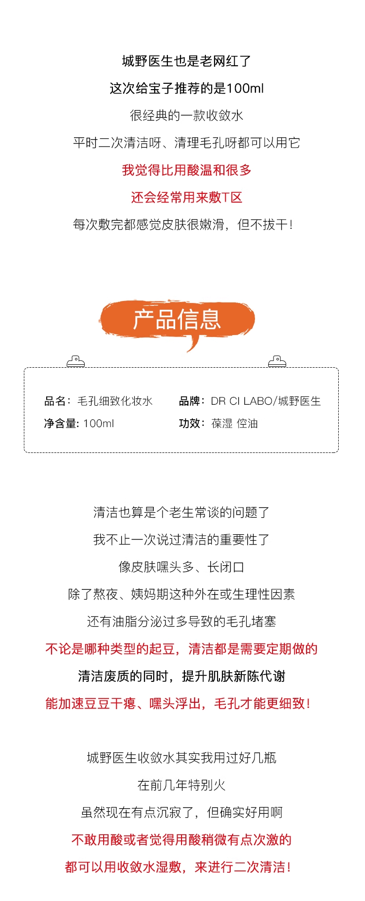 【清仓好价】城野医生毛孔细致化妆水100ml*2瓶(效期至25.12)