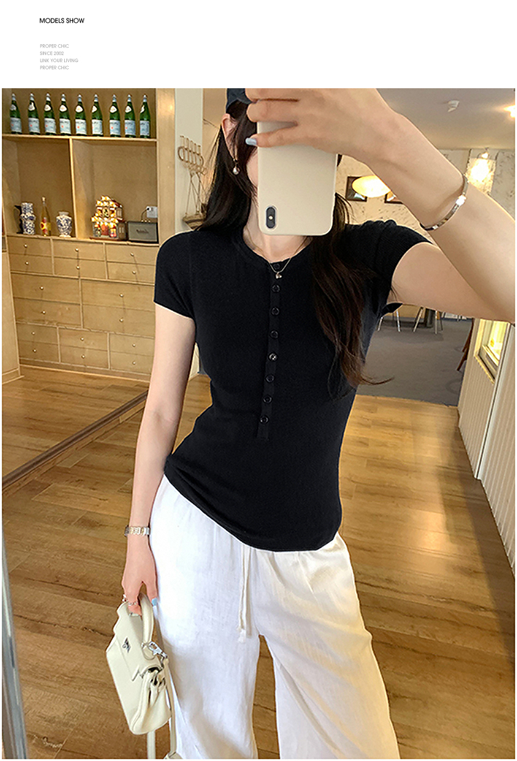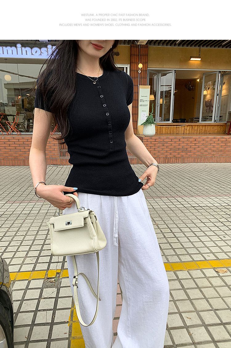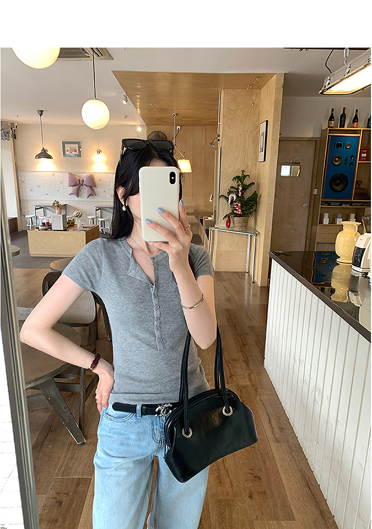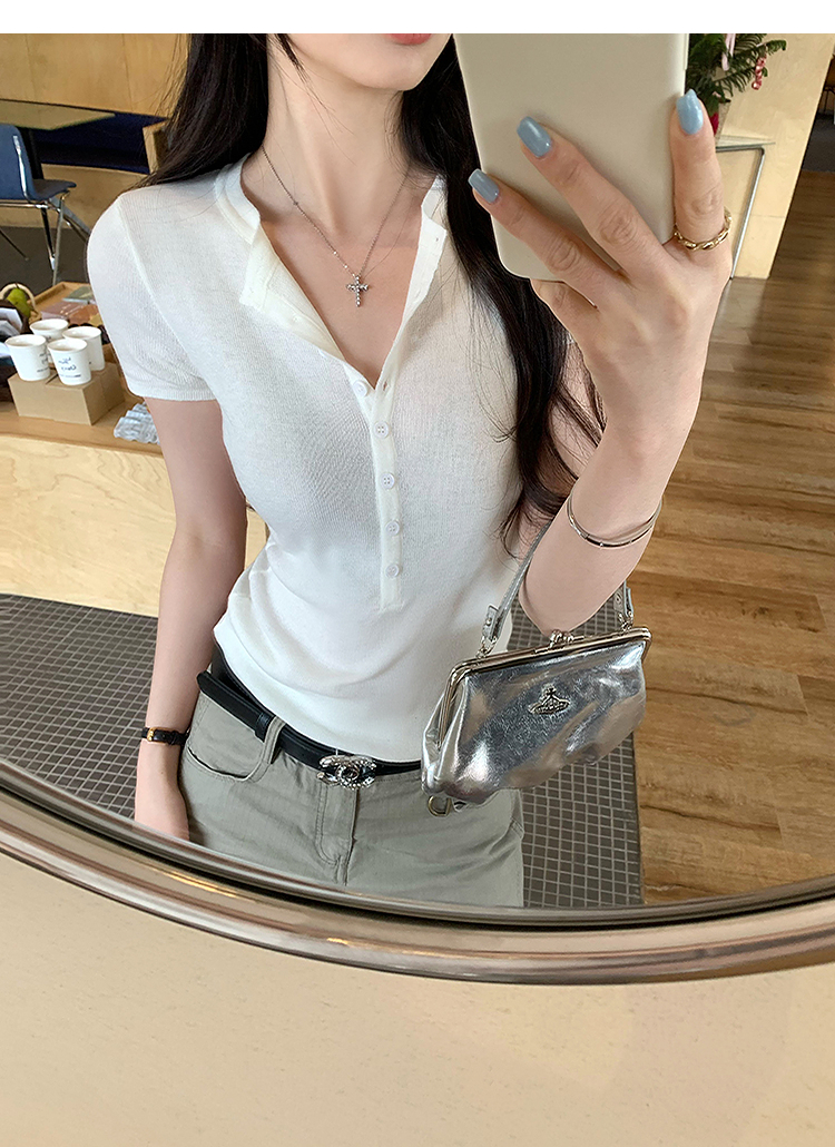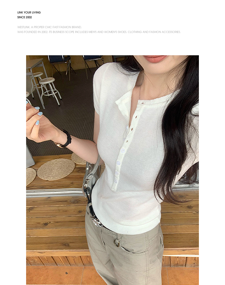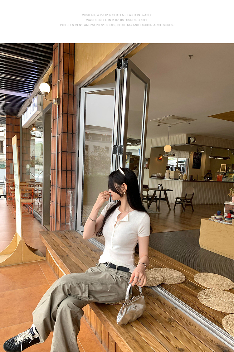 西遇亨特领纯色短袖T恤女2026年夏季新款极简风气质收腰修身上衣SS060235
