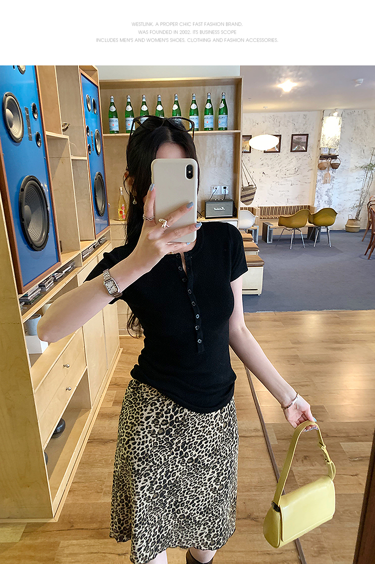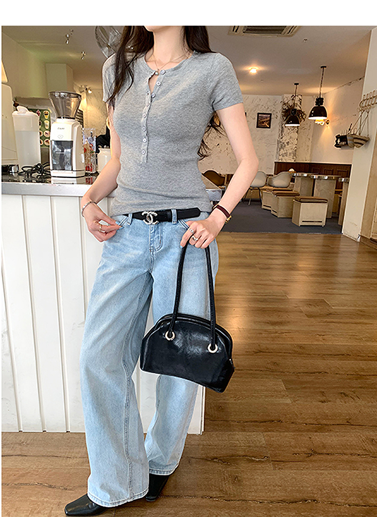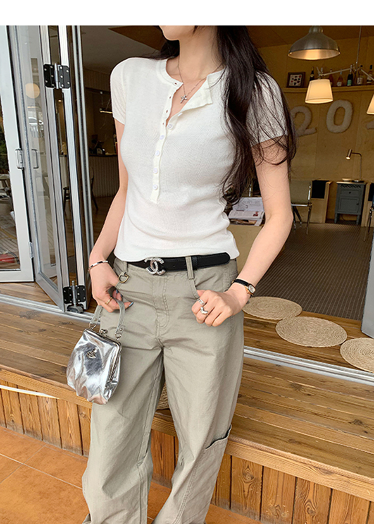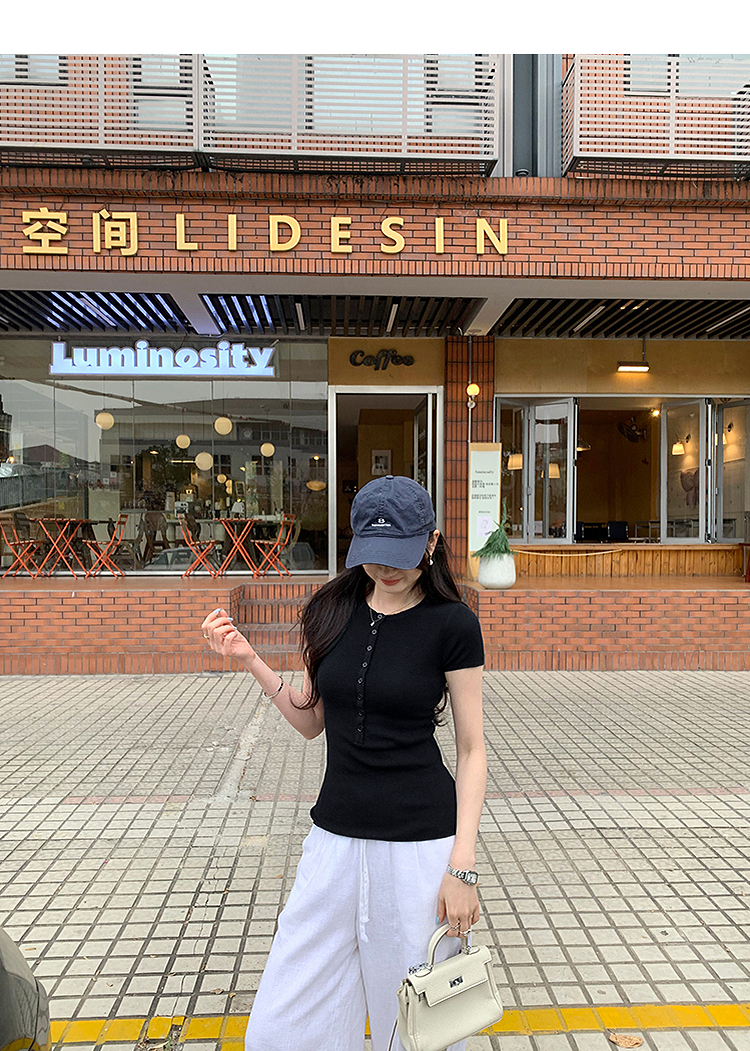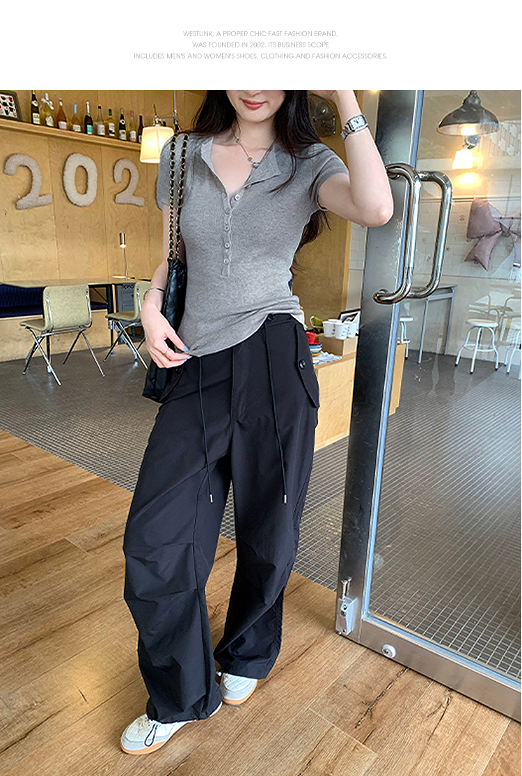 西遇亨特领纯色短袖T恤女2026年夏季新款极简风气质收腰修身上衣SS060235