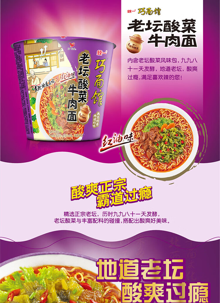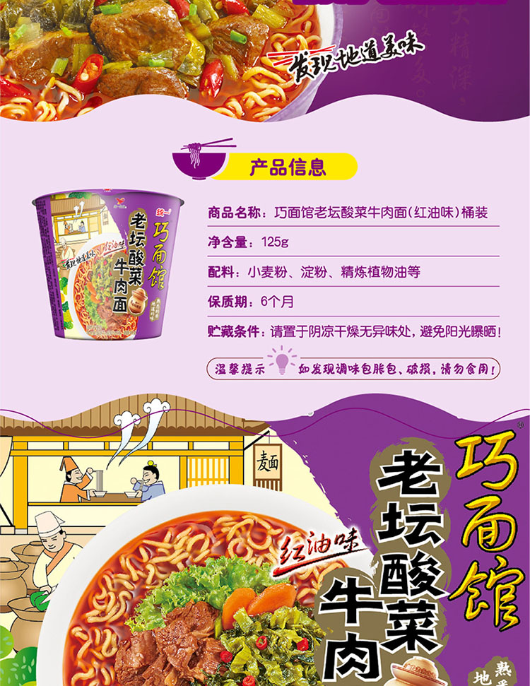 统一饮料 巧面馆老坛酸菜牛肉面 125g