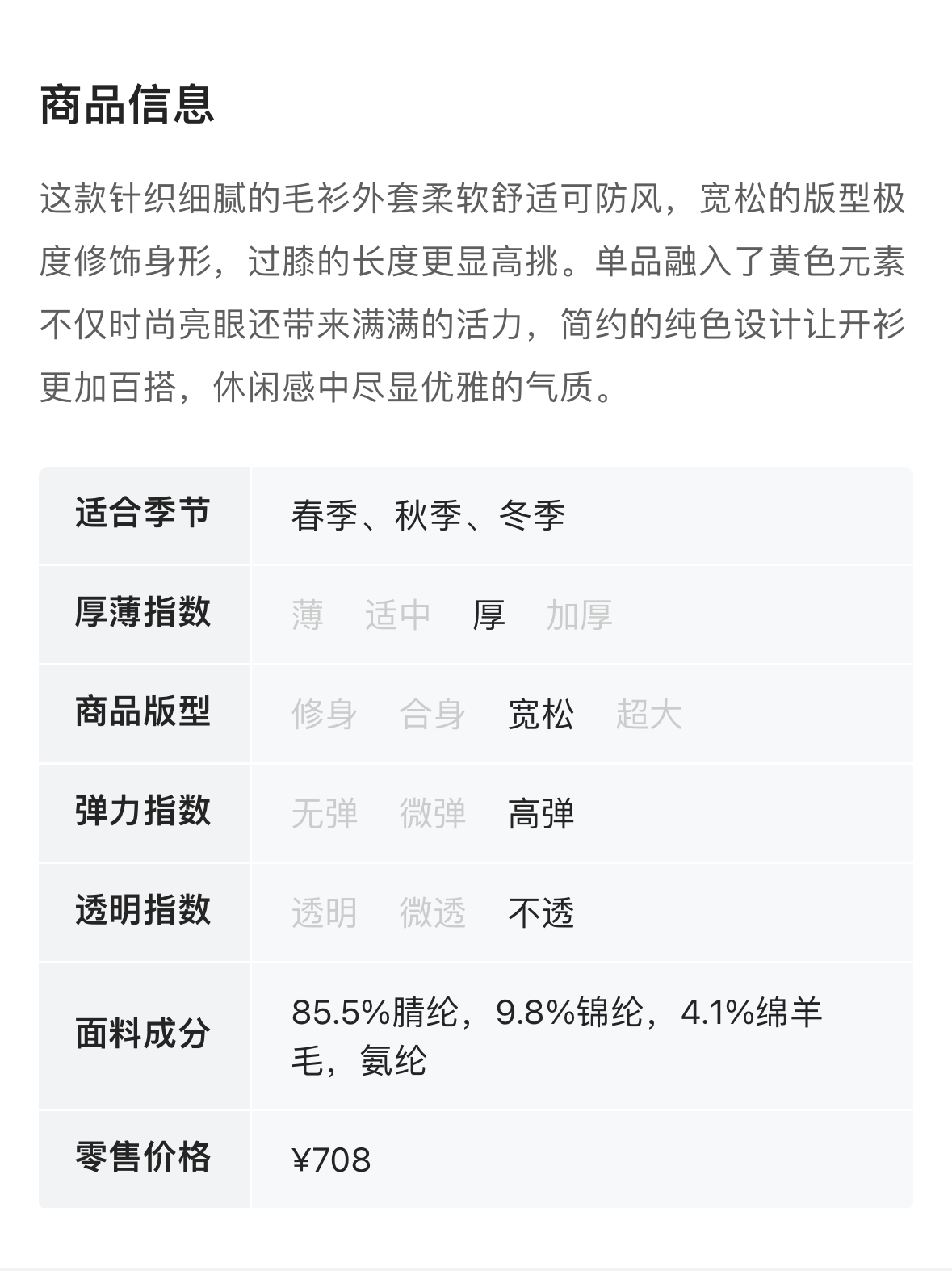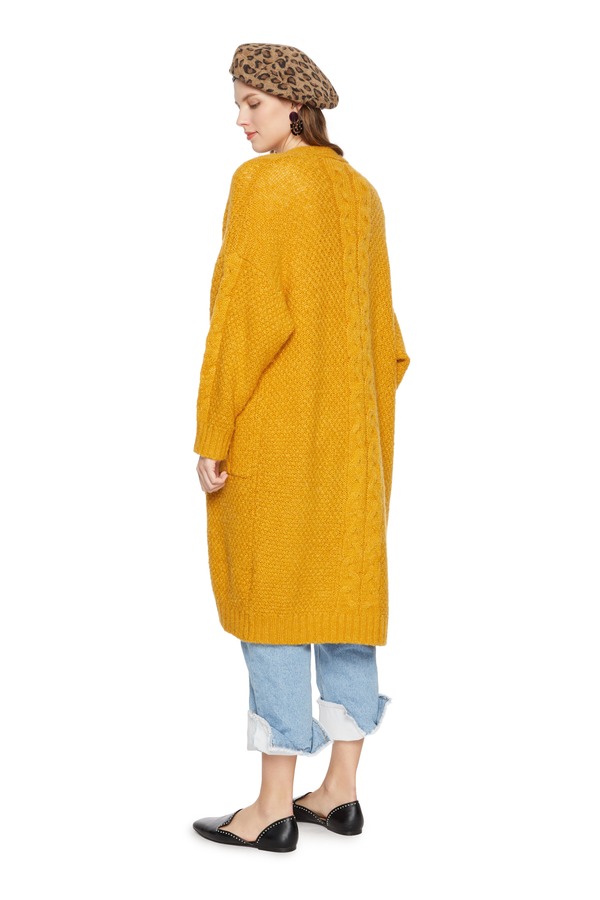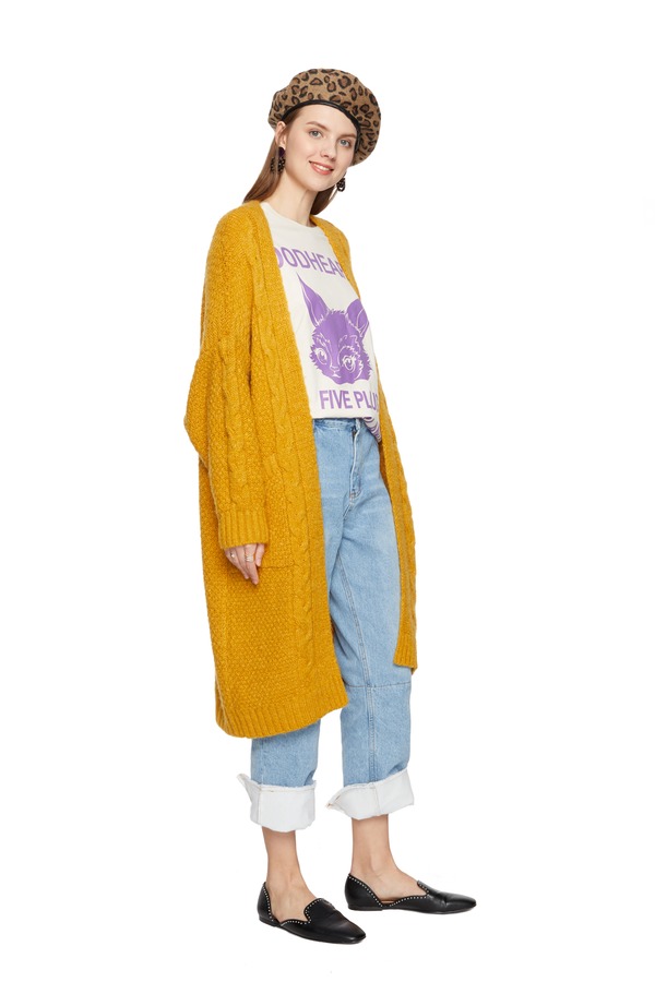 OSA欧莎 简约黄色毛衫长外套 5131