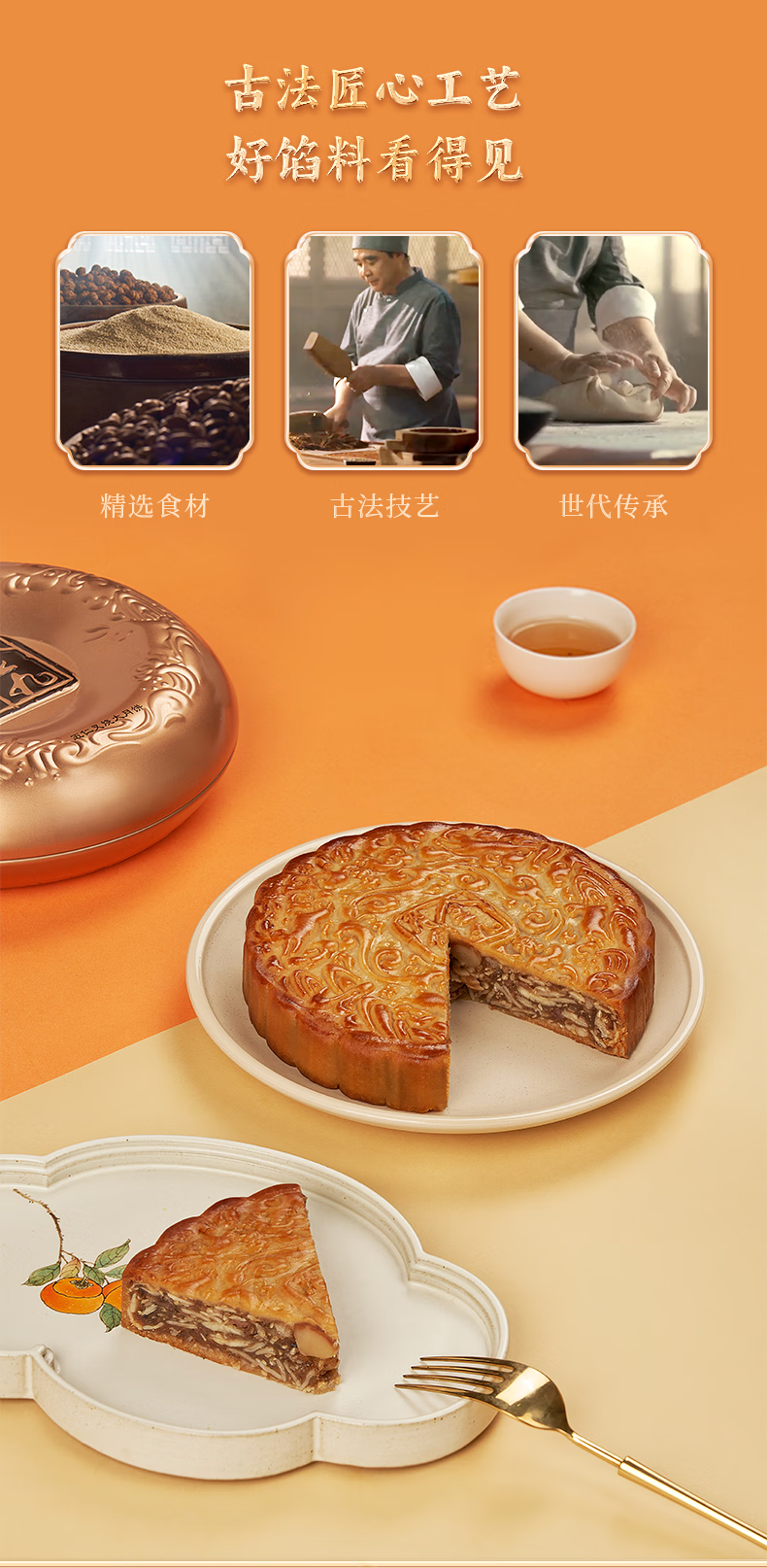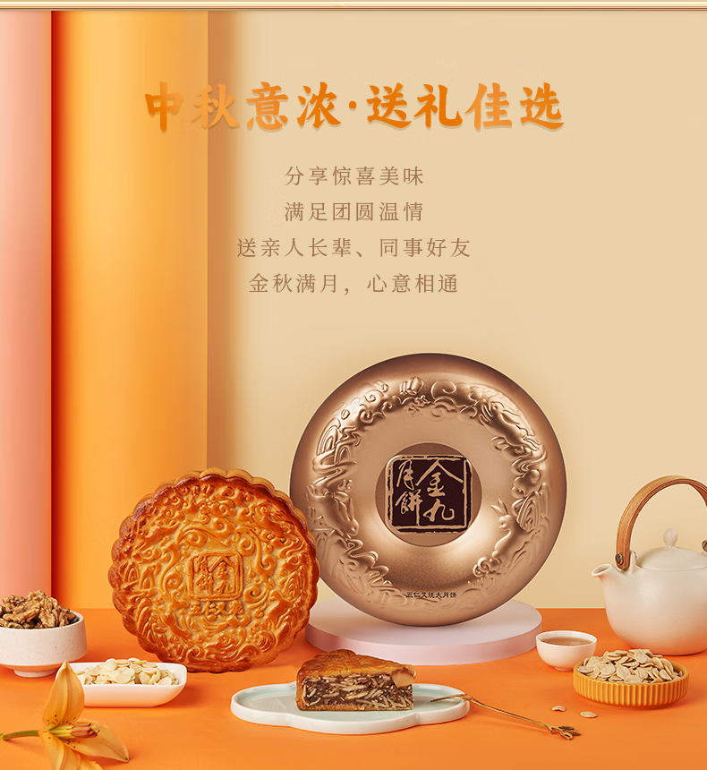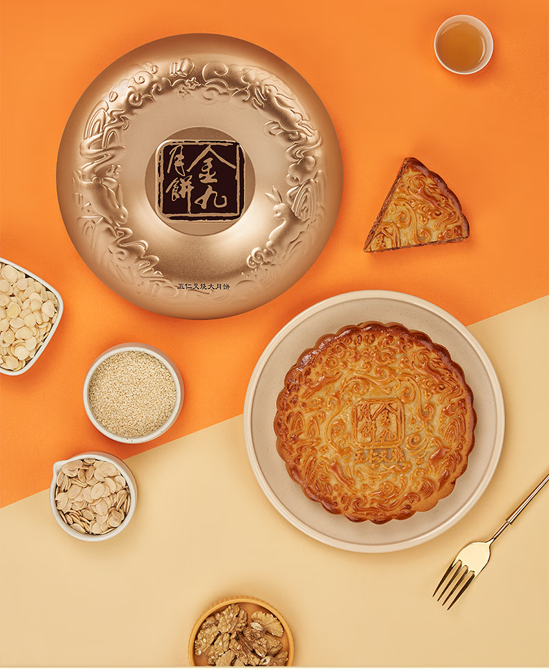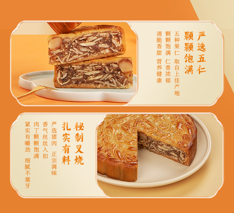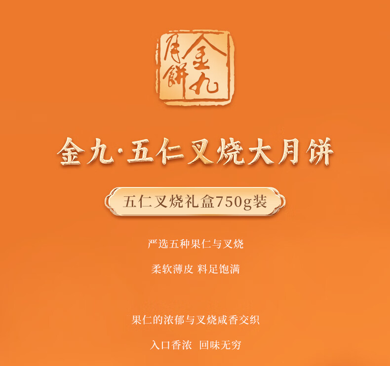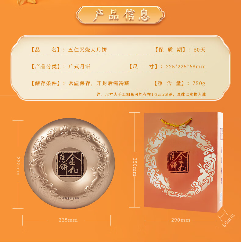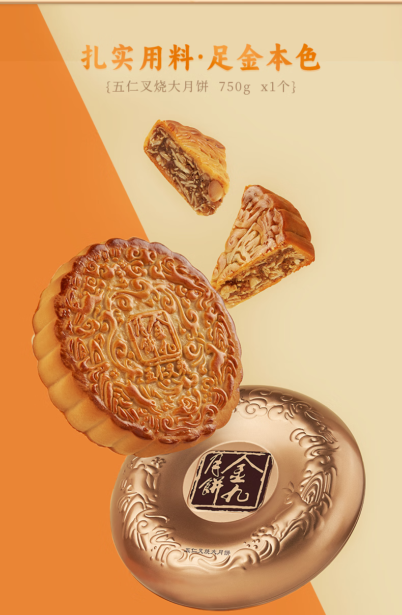 金九月饼礼盒装 五仁叉烧大饼 湛江吴川中秋月饼企业团购送礼750g/盒
